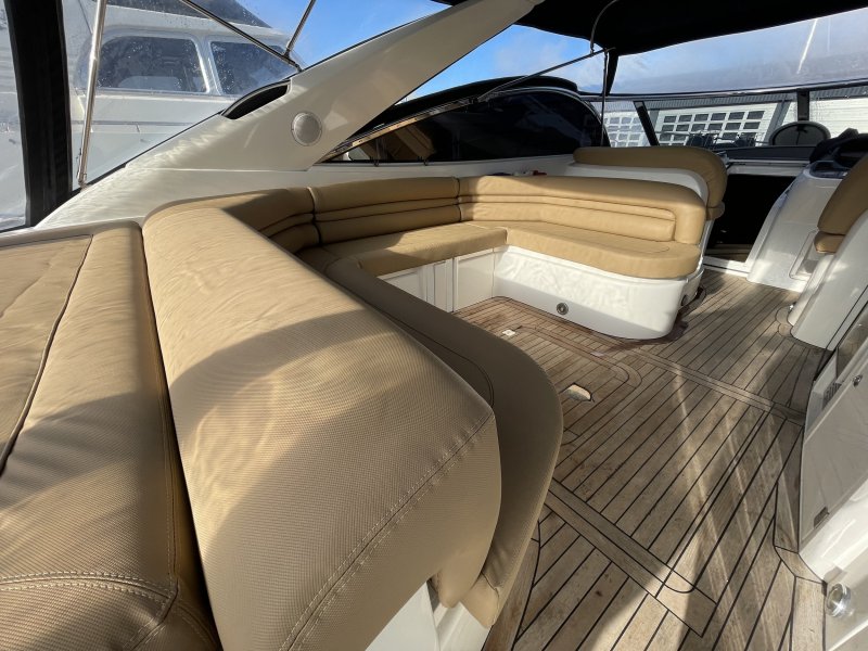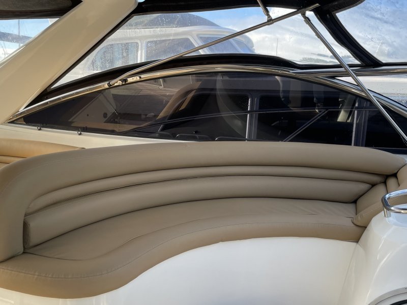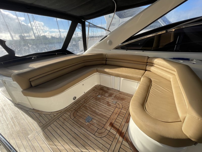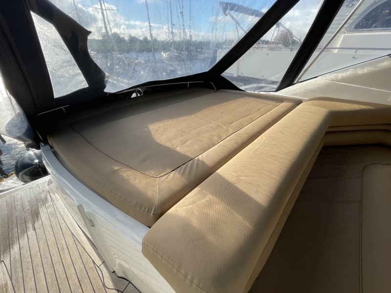 Die Sunseeker Camarque 50 ist sportlich gezeichnet und hat einen schönen Wohnraum über und unter Deck. Diese Sunseeker hat in den letzten Jahren viele Erneuerungen erfahren. Jedes Jahr wurden die Motoren mit neuem Öl und Filtern ausgestattet. Im Jahr 2024 wurde die Yacht mit einem neuen Antifouling versehen. Außerdem wurde die Innenausstattung kürzlich erneuert, einschließlich neuer Teppiche im Salon und in den Schlafzimmern. Die Yacht wird jeden Winter in einem beheizten Winterlager untergebracht.