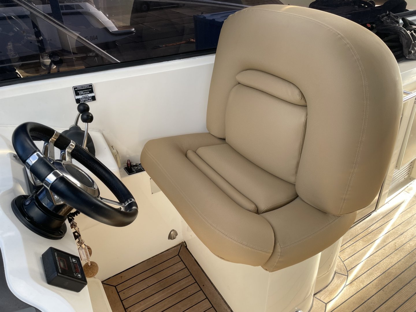 Teakholz im offenen Cockpit und auf der Badeplattform