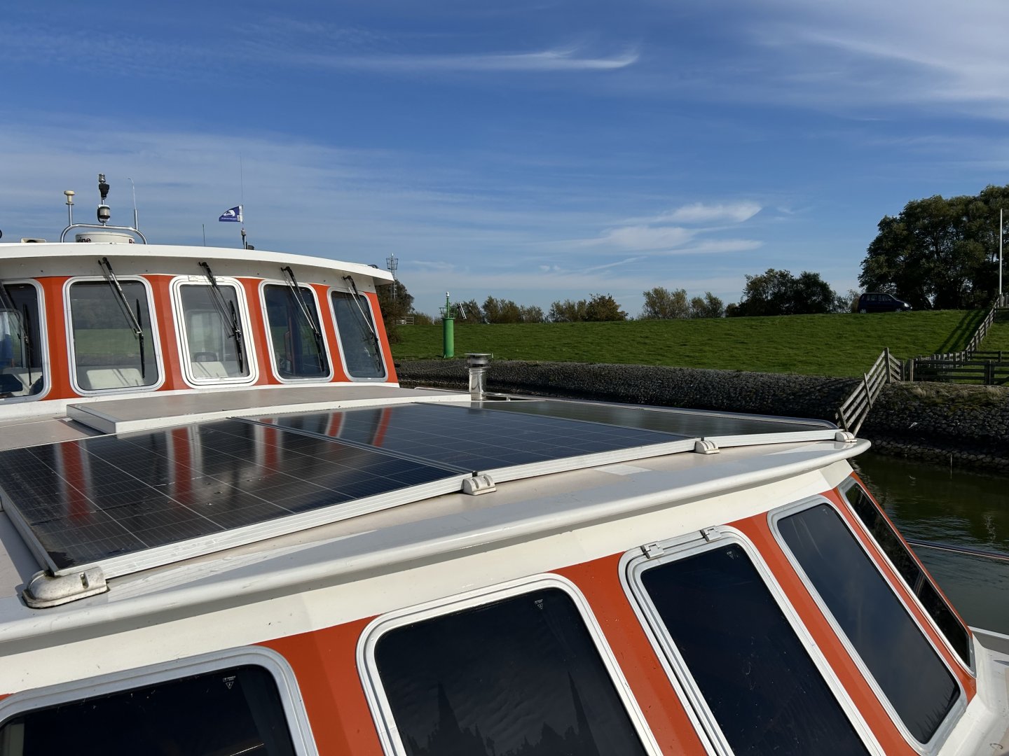 Ausgestattet mit, unter anderem: Bugstrahlruder, Heckstrahlruder, Ankerwinde, Doppelpoller, Sonnenkollektoren, Steuerhaus mit 4 Türen zum Öffnen, Suchscheinwerfer, vollständige Navigation mit Radar, Plotter, AIS, Thermopane, Kabola Zentralheizung + Palettenheizung.
