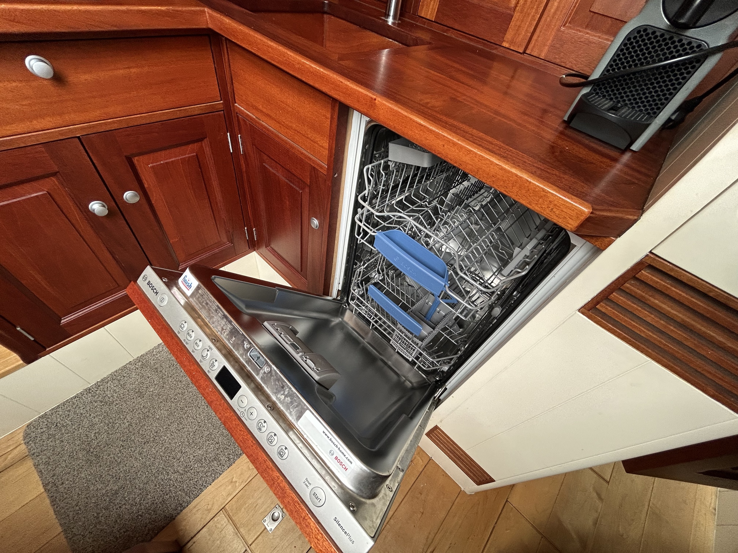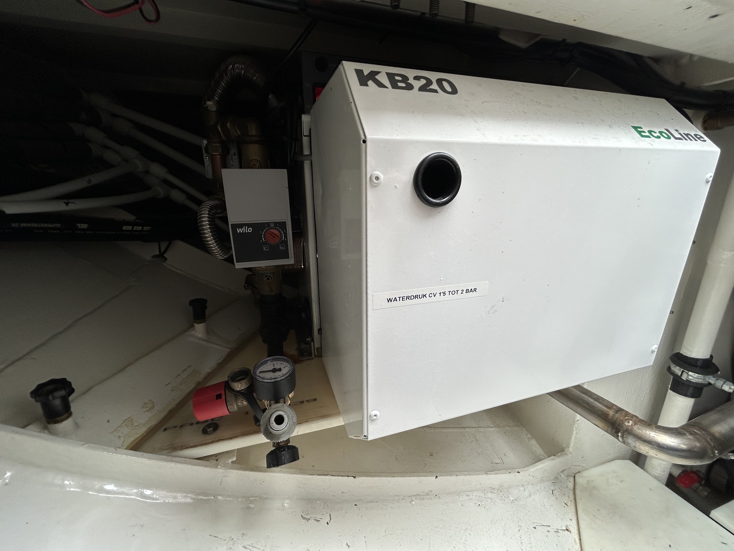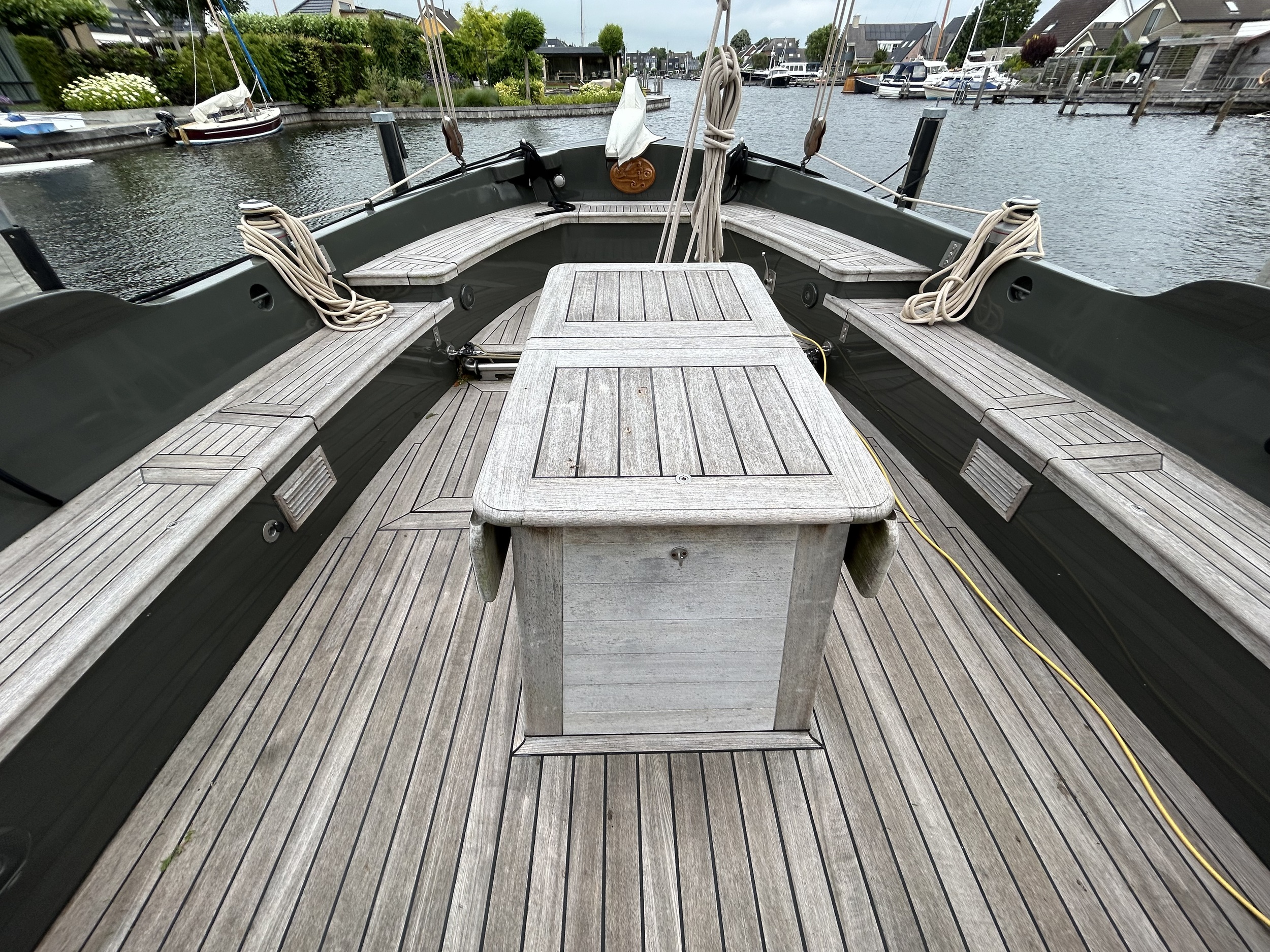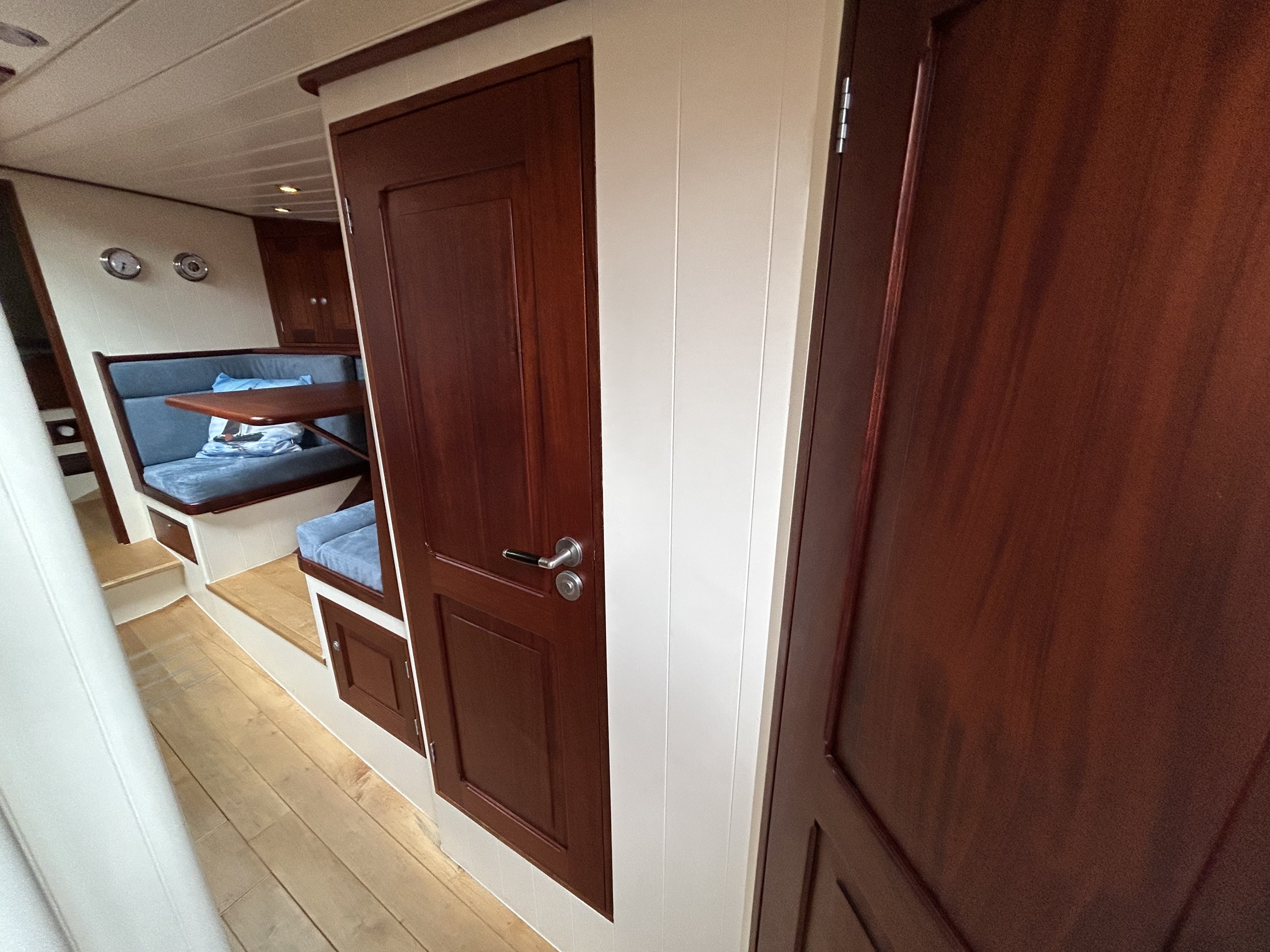 Prachtig betimmerd interieur met veel doordachte details. Het schip is geschikt voor ieder seizoen vanwege de isolatie en centrale verwarming.