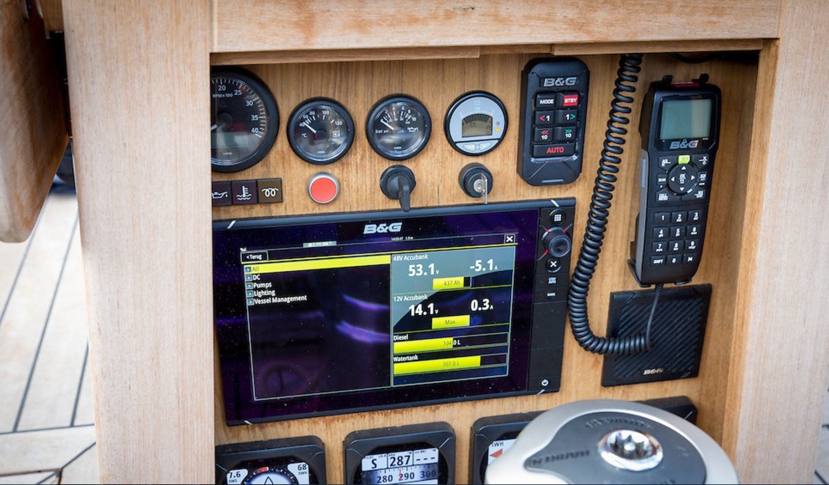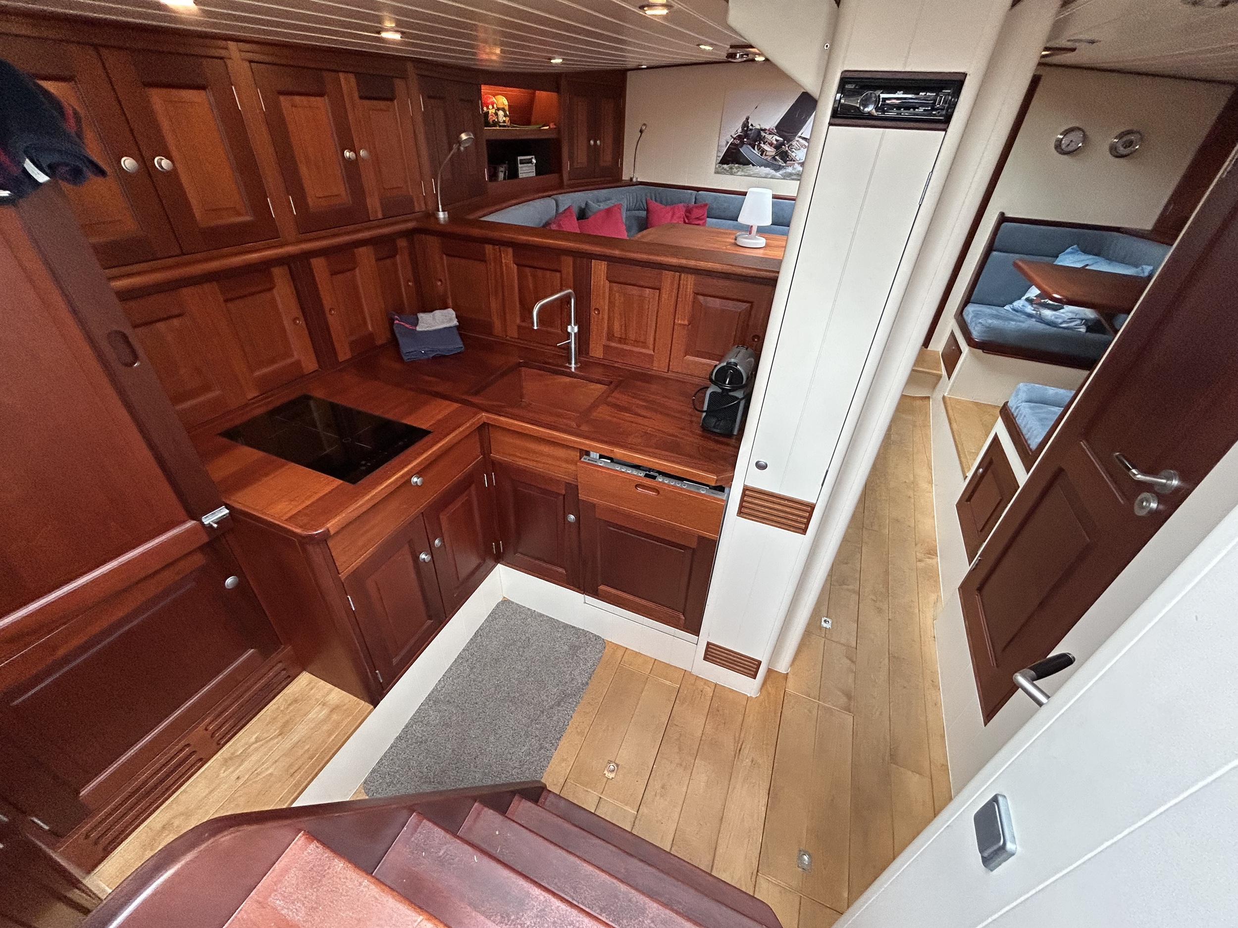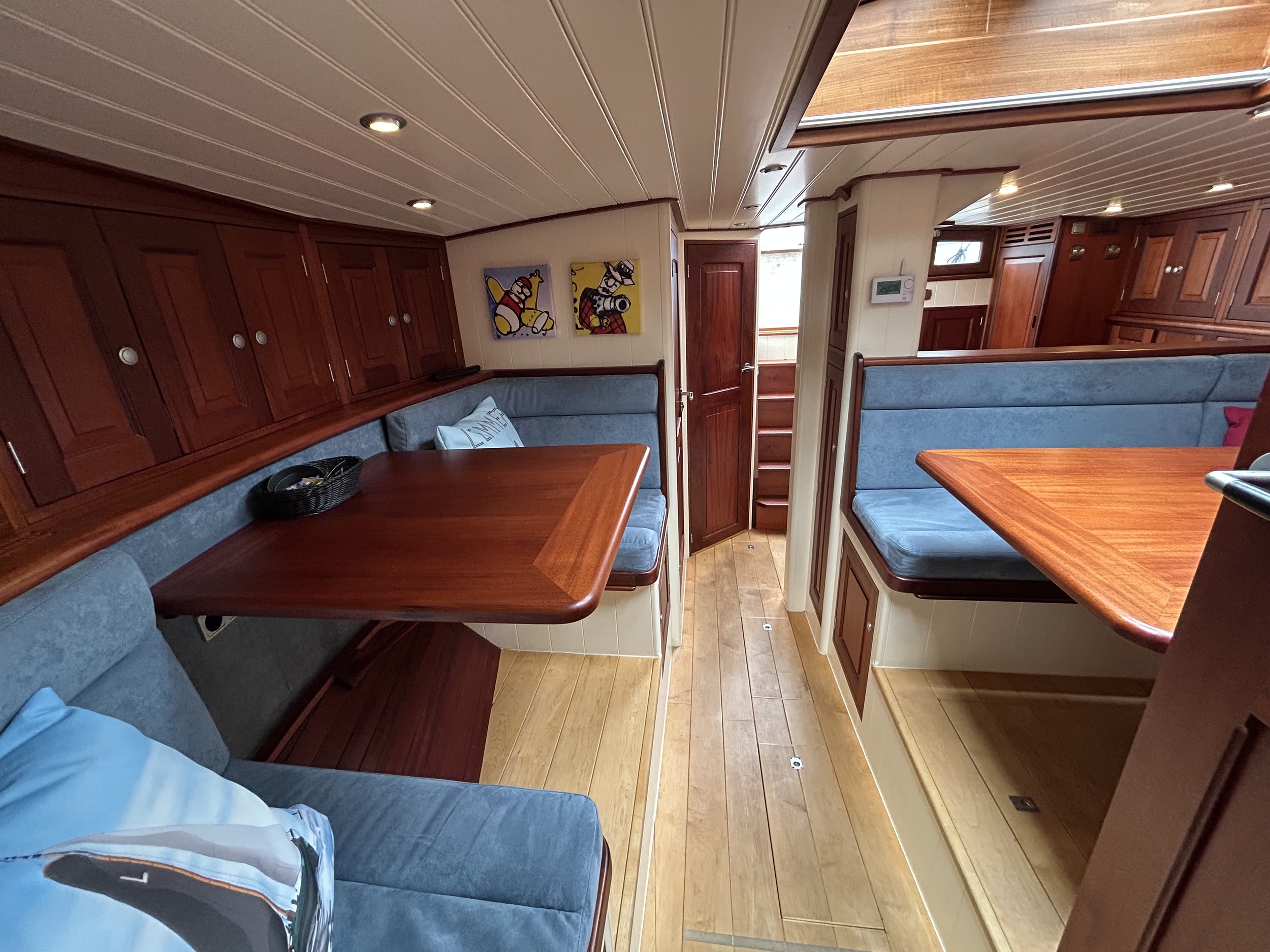 Het schip is nagenoeg single handed te zeilen: elektrische schootlieren voor fok, kluiver en grootzeil. Hydraulische zwaardlieren en stuurautomaat.