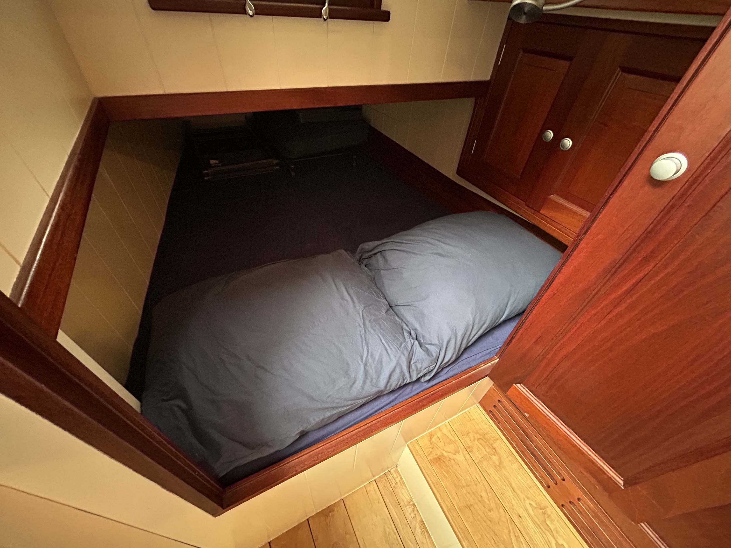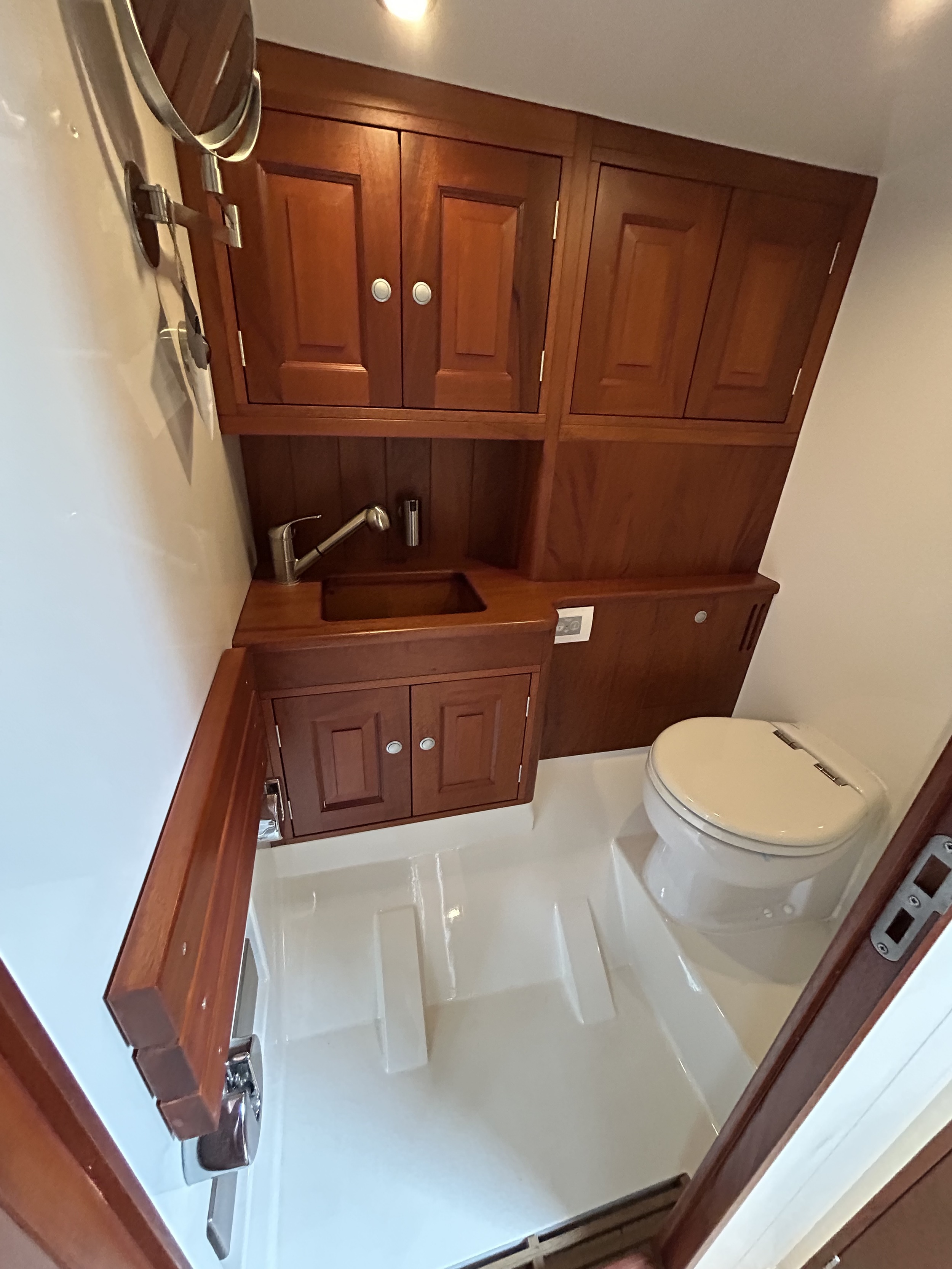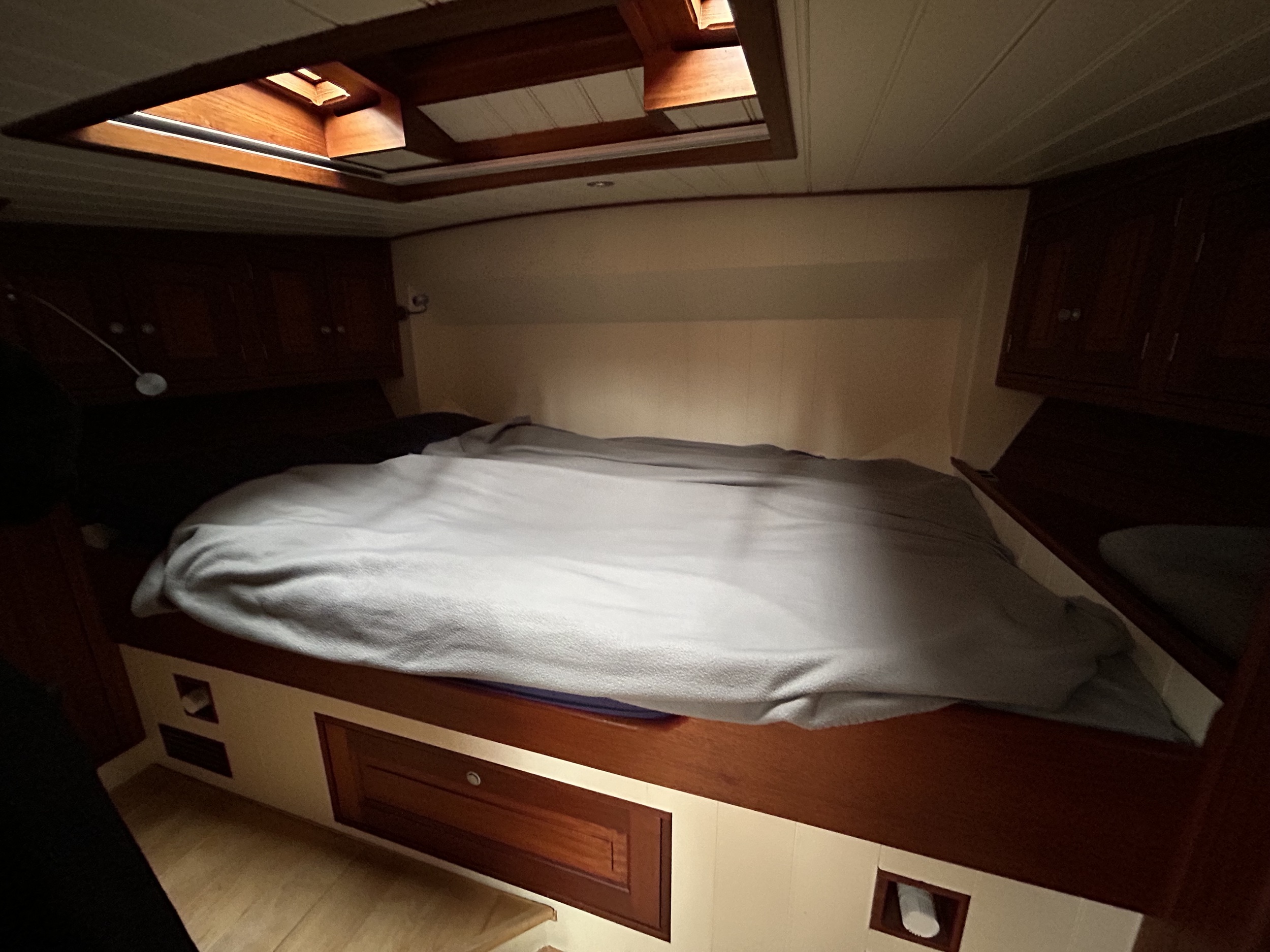 Het schip is nagenoeg single handed te zeilen: elektrische schootlieren voor fok, kluiver en grootzeil. Hydraulische zwaardlieren en stuurautomaat.