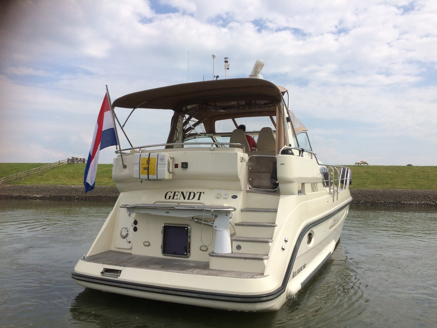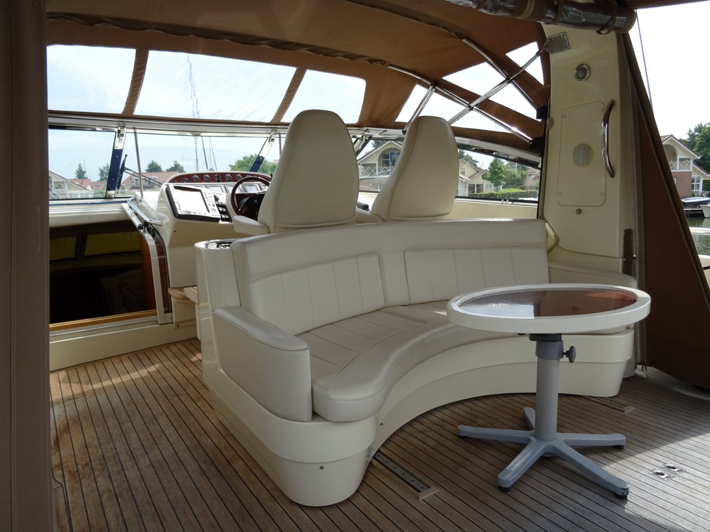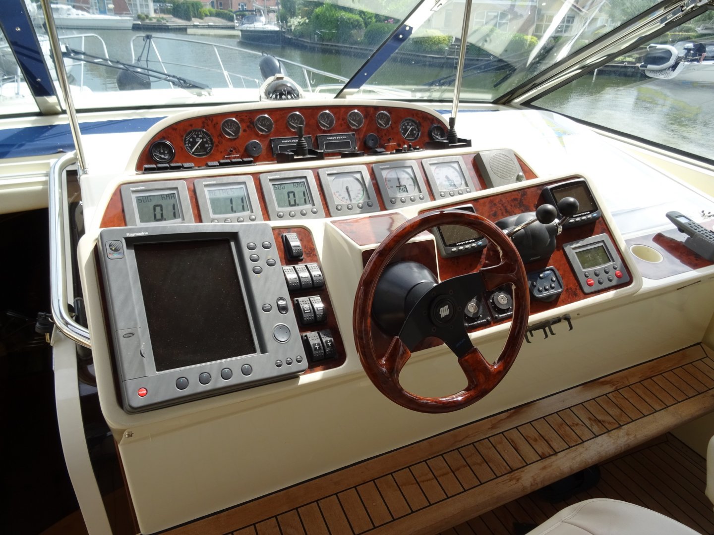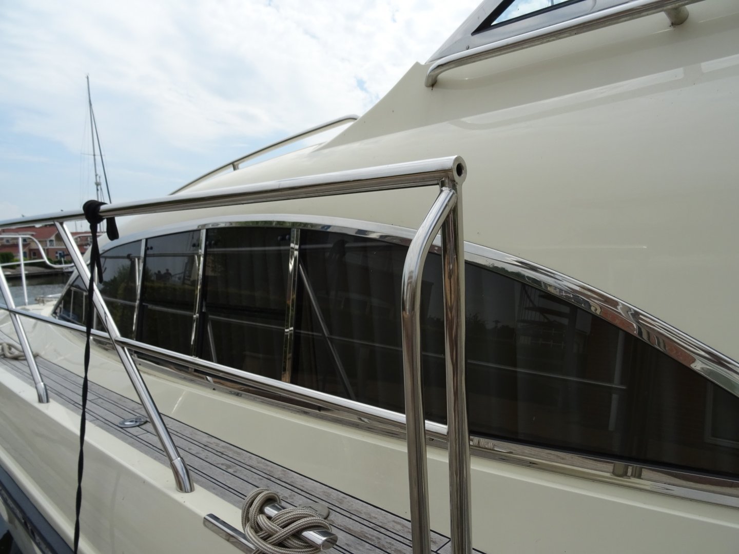 Zeer goed onderhouden en uitermate compleet uitgerust met onder andere; Volledig teakdek, compleet rvs pakket met luxe railing, zijtrappen, slijtstrips, extra klampen, rvs raamframes gepolijst, rvs anker op boegrol, hydraulisch klapbare radarbeugel, raamventilators, raamsproeiers, easy mounting cabrio tent, Cooney gangway, luxe lederen bekleding met dubbele stuurstoel op verstelbare bank, volledige navigatie, buitenspeakers, reddingsvlot, RMC Hydronautica remote controle 2014, 3 hutten met eigen toilet en douche, 12 Kw Fischer Panda, keramische kookplaat met afzuigkap, graniet aanrechtblad, Bosch combi oven, 30000 BTU airco, extra koelkast, rvs radiators in natte cellen, wasmachine/droger, nieuwe cabriotent 2014, volledige nieuw gestoffeerd inclusief matrassen en gordijnen 2014, nieuwe boiler 2016. Inruil camper of sloep bespreekbaar.