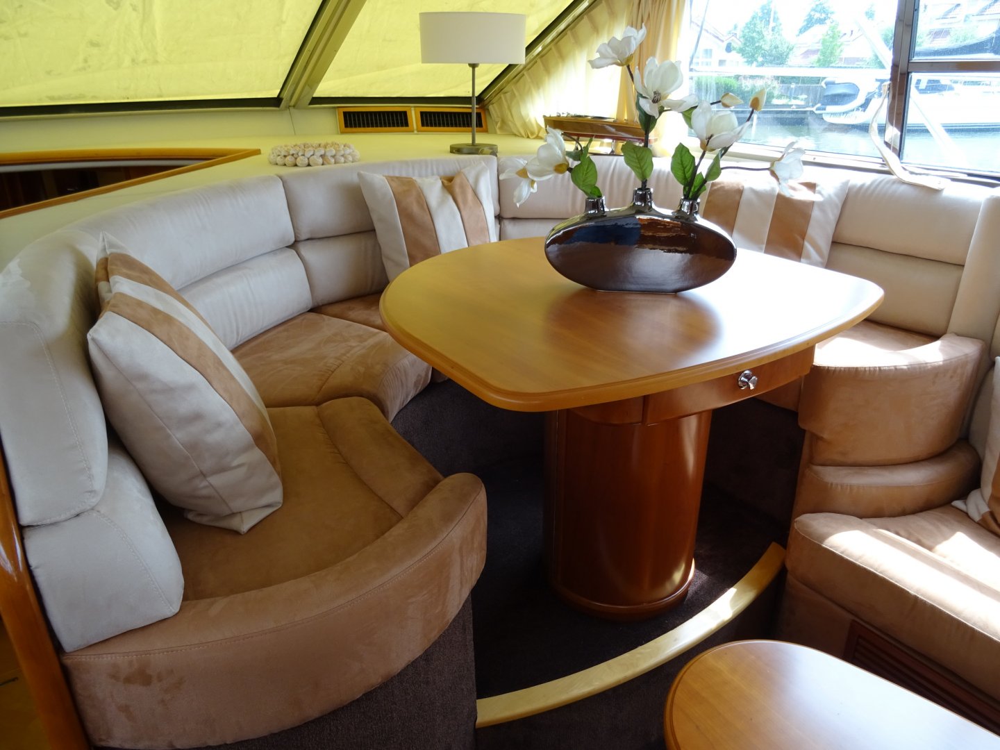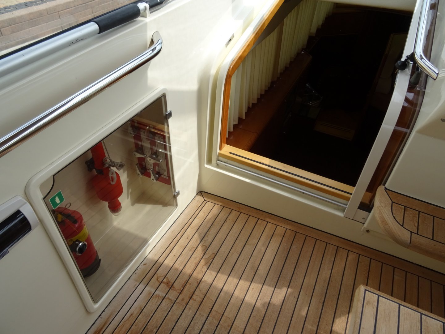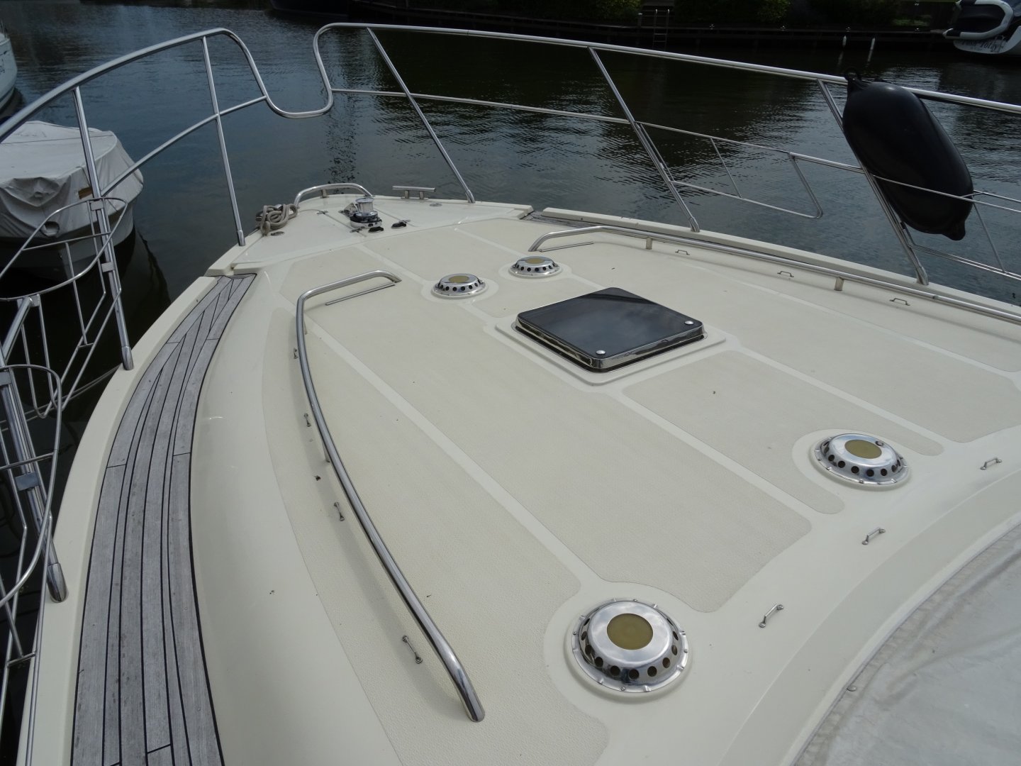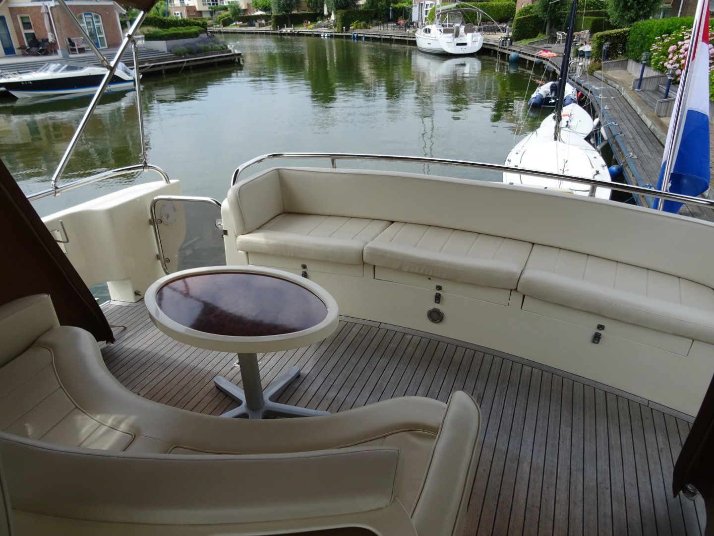 Zeer goed onderhouden en uitermate compleet uitgerust met onder andere; Volledig teakdek, compleet rvs pakket met luxe railing, zijtrappen, slijtstrips, extra klampen, rvs raamframes gepolijst, rvs anker op boegrol, hydraulisch klapbare radarbeugel, raamventilators, raamsproeiers, easy mounting cabrio tent, Cooney gangway, luxe lederen bekleding met dubbele stuurstoel op verstelbare bank, volledige navigatie, buitenspeakers, reddingsvlot, RMC Hydronautica remote controle 2014, 3 hutten met eigen toilet en douche, 12 Kw Fischer Panda, keramische kookplaat met afzuigkap, graniet aanrechtblad, Bosch combi oven, 30000 BTU airco, extra koelkast, rvs radiators in natte cellen, wasmachine/droger, nieuwe cabriotent 2014, volledige nieuw gestoffeerd inclusief matrassen en gordijnen 2014, nieuwe boiler 2016. Inruil camper of sloep bespreekbaar.