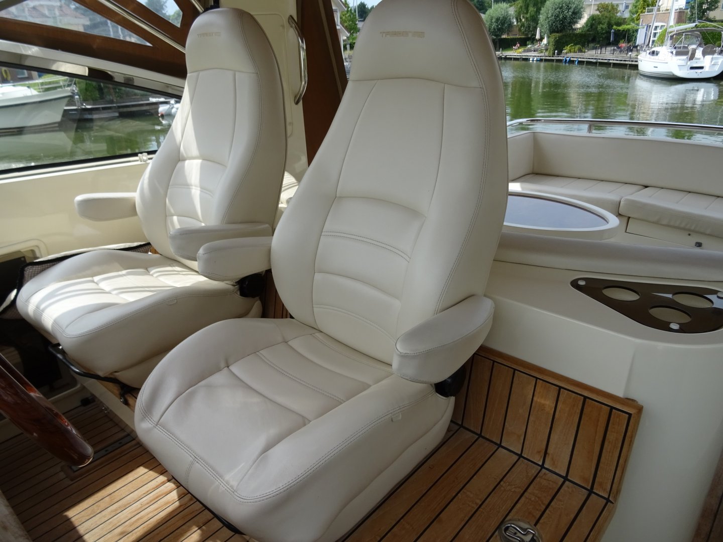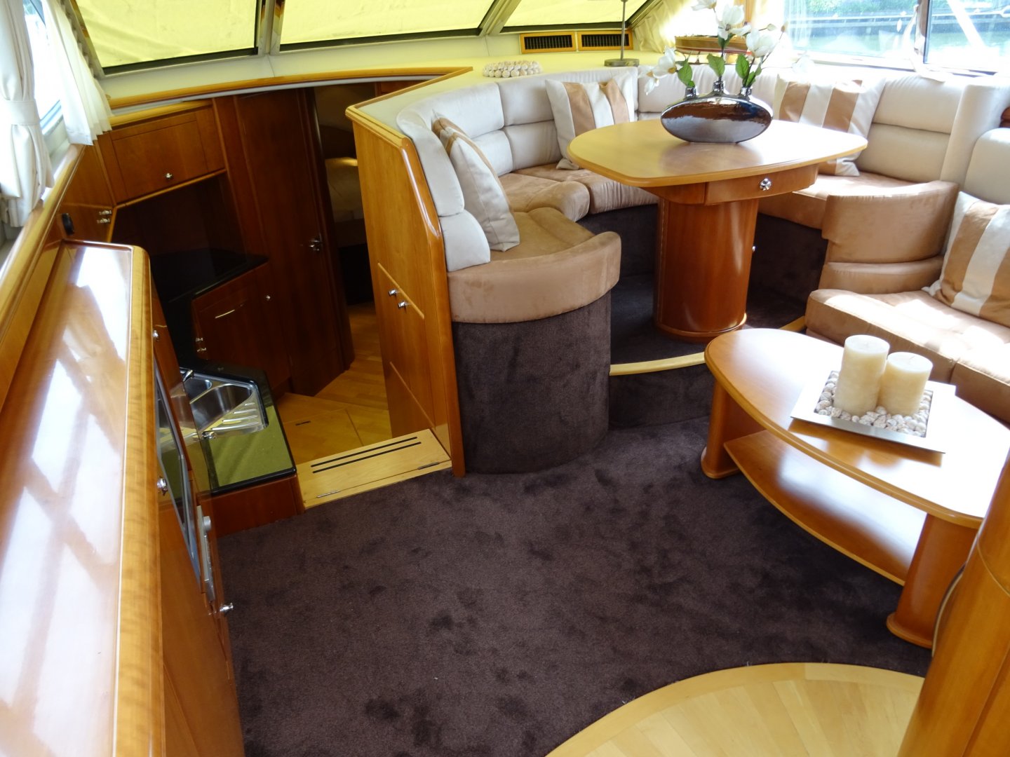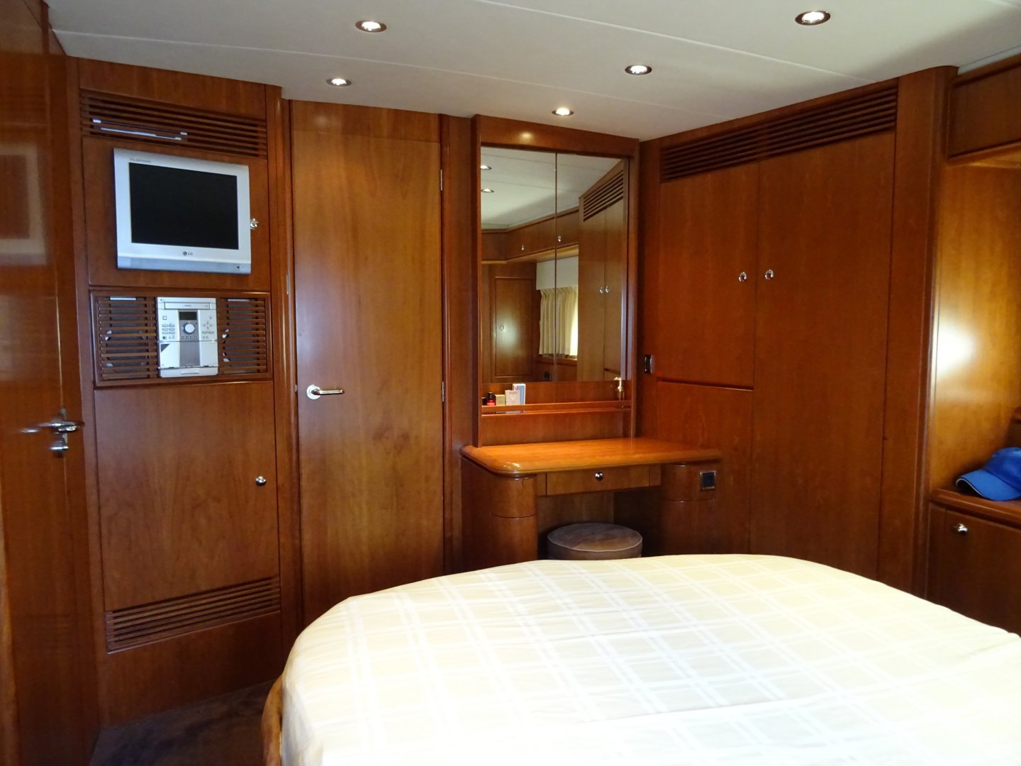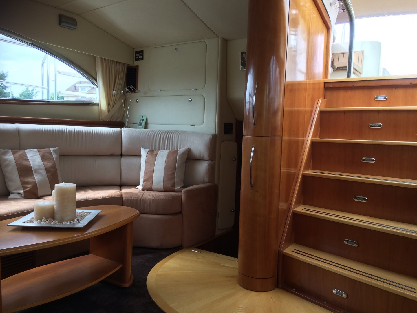 Zeer goed onderhouden en uitermate compleet uitgerust met onder andere; Volledig teakdek, compleet rvs pakket met luxe railing, zijtrappen, slijtstrips, extra klampen, rvs raamframes gepolijst, rvs anker op boegrol, hydraulisch klapbare radarbeugel, raamventilators, raamsproeiers, easy mounting cabrio tent, Cooney gangway, luxe lederen bekleding met dubbele stuurstoel op verstelbare bank, volledige navigatie, buitenspeakers, reddingsvlot, RMC Hydronautica remote controle 2014, 3 hutten met eigen toilet en douche, 12 Kw Fischer Panda, keramische kookplaat met afzuigkap, graniet aanrechtblad, Bosch combi oven, 30000 BTU airco, extra koelkast, rvs radiators in natte cellen, wasmachine/droger, nieuwe cabriotent 2014, volledige nieuw gestoffeerd inclusief matrassen en gordijnen 2014, nieuwe boiler 2016. Inruil camper of sloep bespreekbaar.