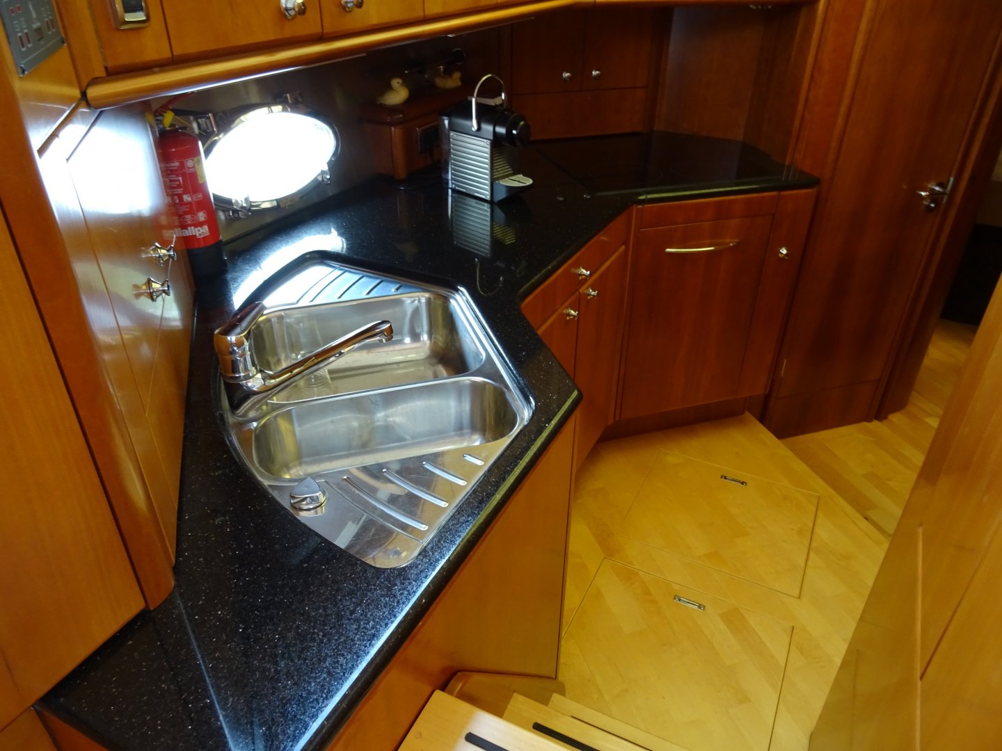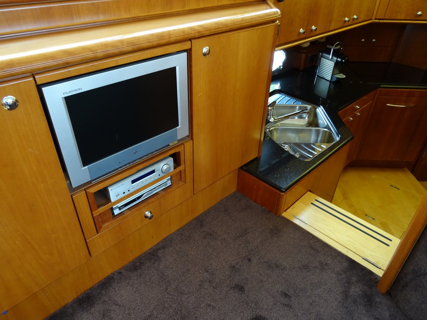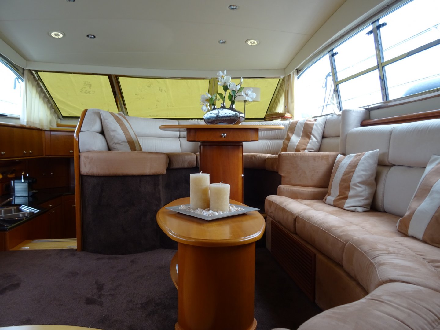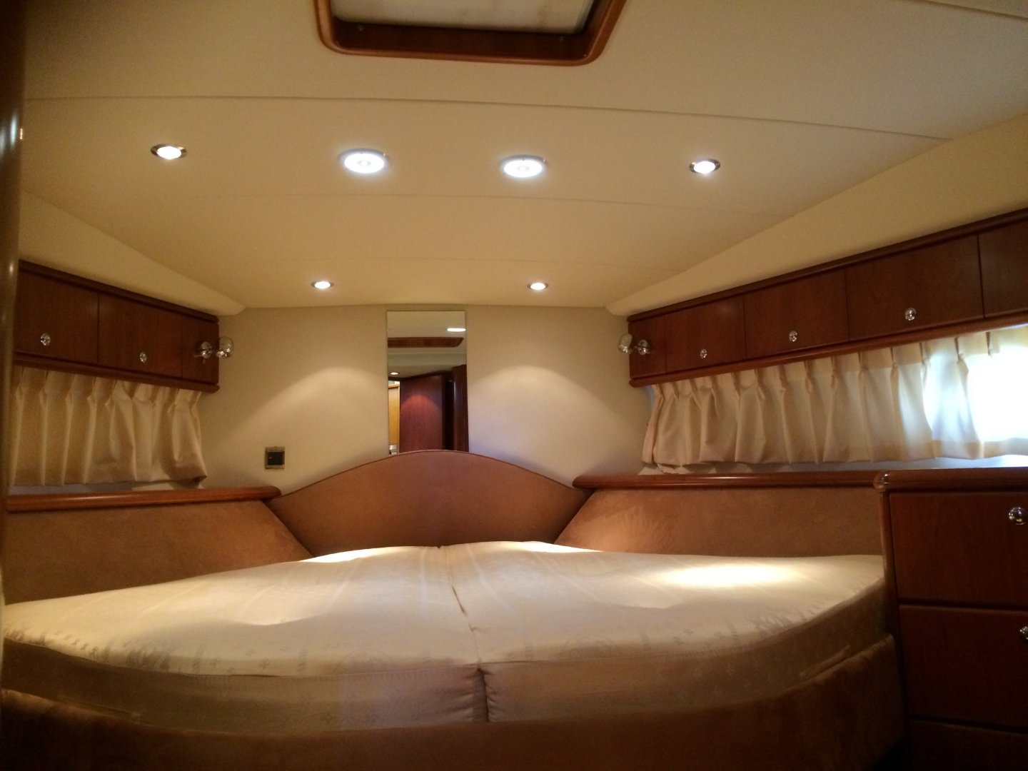 Zeer goed onderhouden en uitermate compleet uitgerust met onder andere; Volledig teakdek, compleet rvs pakket met luxe railing, zijtrappen, slijtstrips, extra klampen, rvs raamframes gepolijst, rvs anker op boegrol, hydraulisch klapbare radarbeugel, raamventilators, raamsproeiers, easy mounting cabrio tent, Cooney gangway, luxe lederen bekleding met dubbele stuurstoel op verstelbare bank, volledige navigatie, buitenspeakers, reddingsvlot, RMC Hydronautica remote controle 2014, 3 hutten met eigen toilet en douche, 12 Kw Fischer Panda, keramische kookplaat met afzuigkap, graniet aanrechtblad, Bosch combi oven, 30000 BTU airco, extra koelkast, rvs radiators in natte cellen, wasmachine/droger, nieuwe cabriotent 2014, volledige nieuw gestoffeerd inclusief matrassen en gordijnen 2014, nieuwe boiler 2016. Inruil camper of sloep bespreekbaar.
