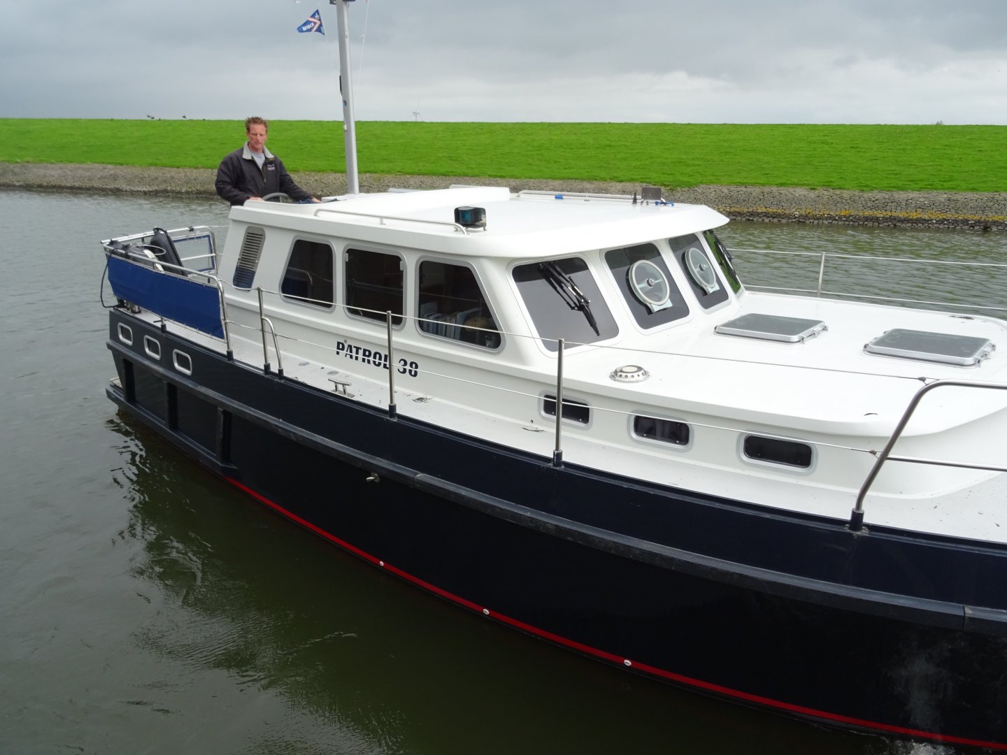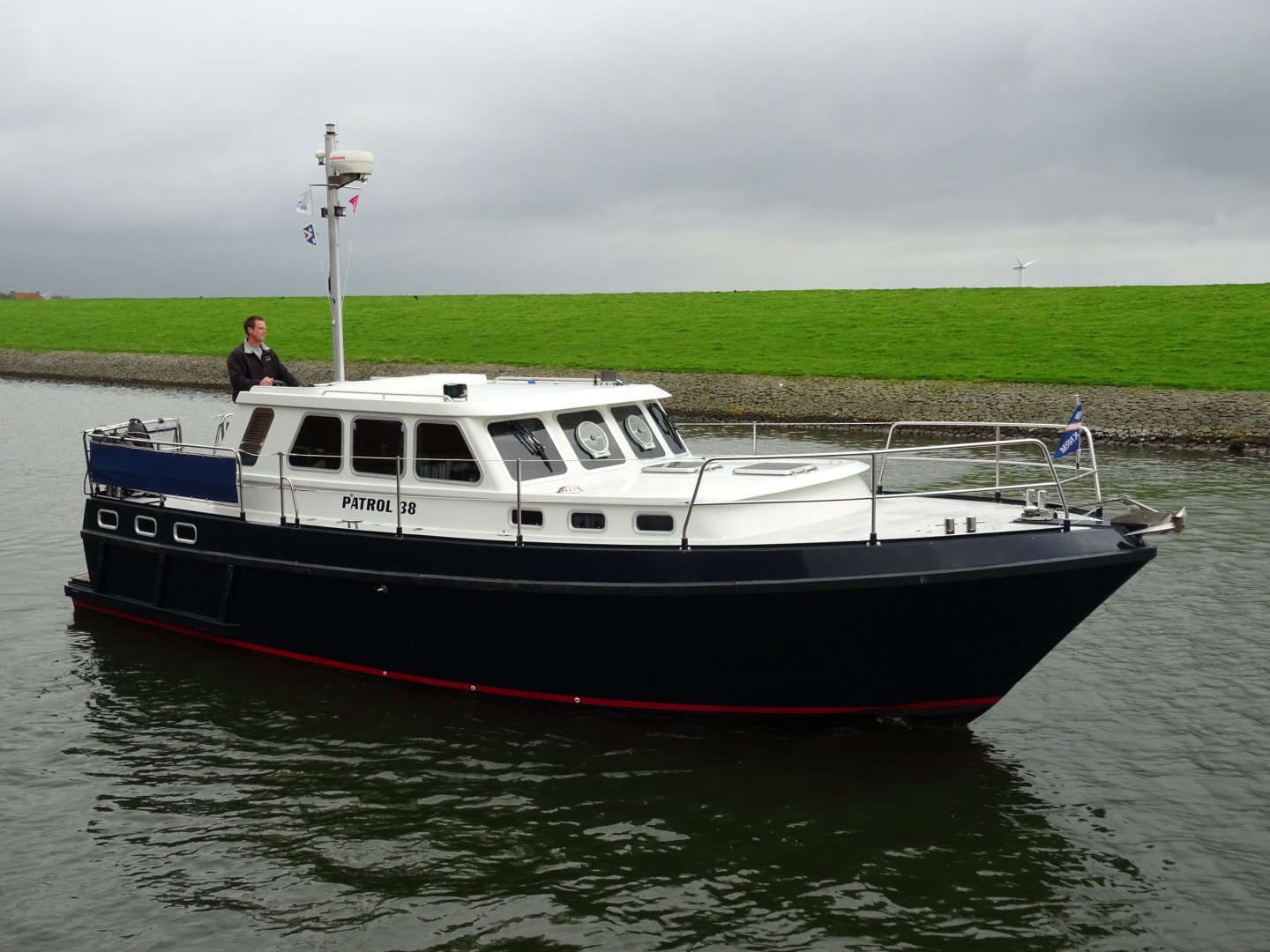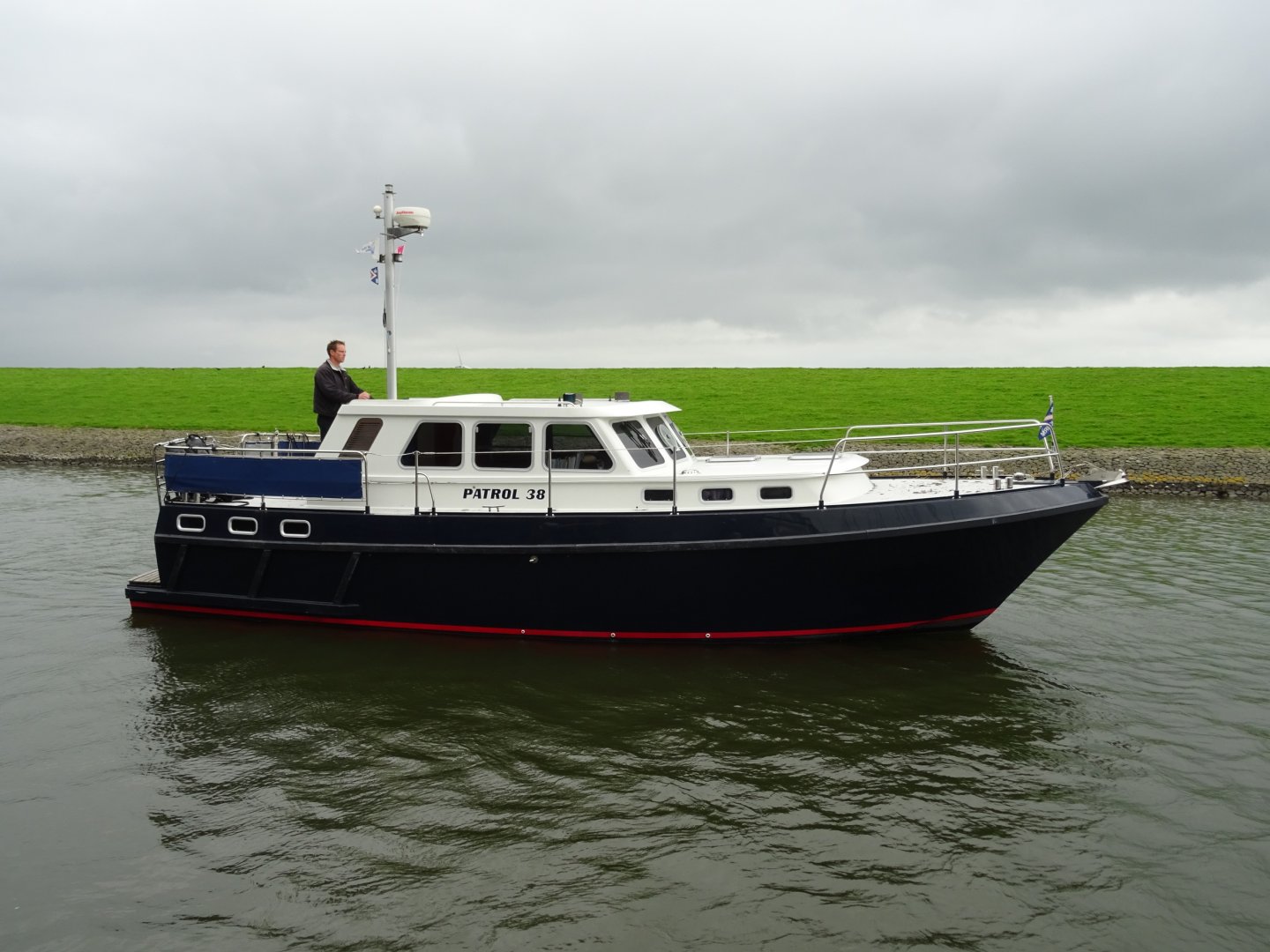 Robuuste aluminium Patrol. Onderhoudsvriendelijk uitgevoerd. Onder andere uitgerust met: generator, keramische kookplaat met afzuigkap, stuurautomaat, radar, fenderkorfen, elektrische ankerlier, boegschroef, slingerruiten, strijkbare mast, luxe teak interieur, Mastervolt controle paneel, CE categorie B.