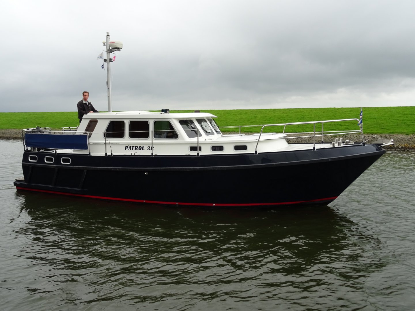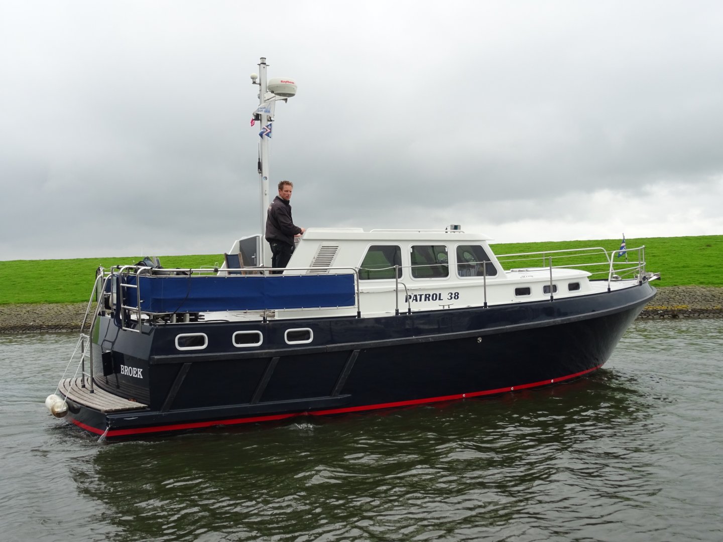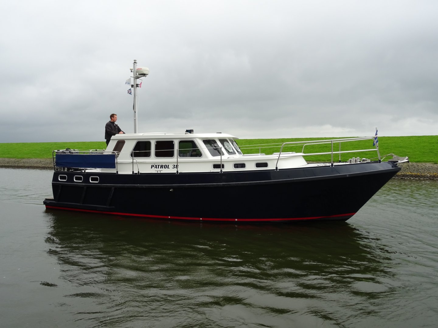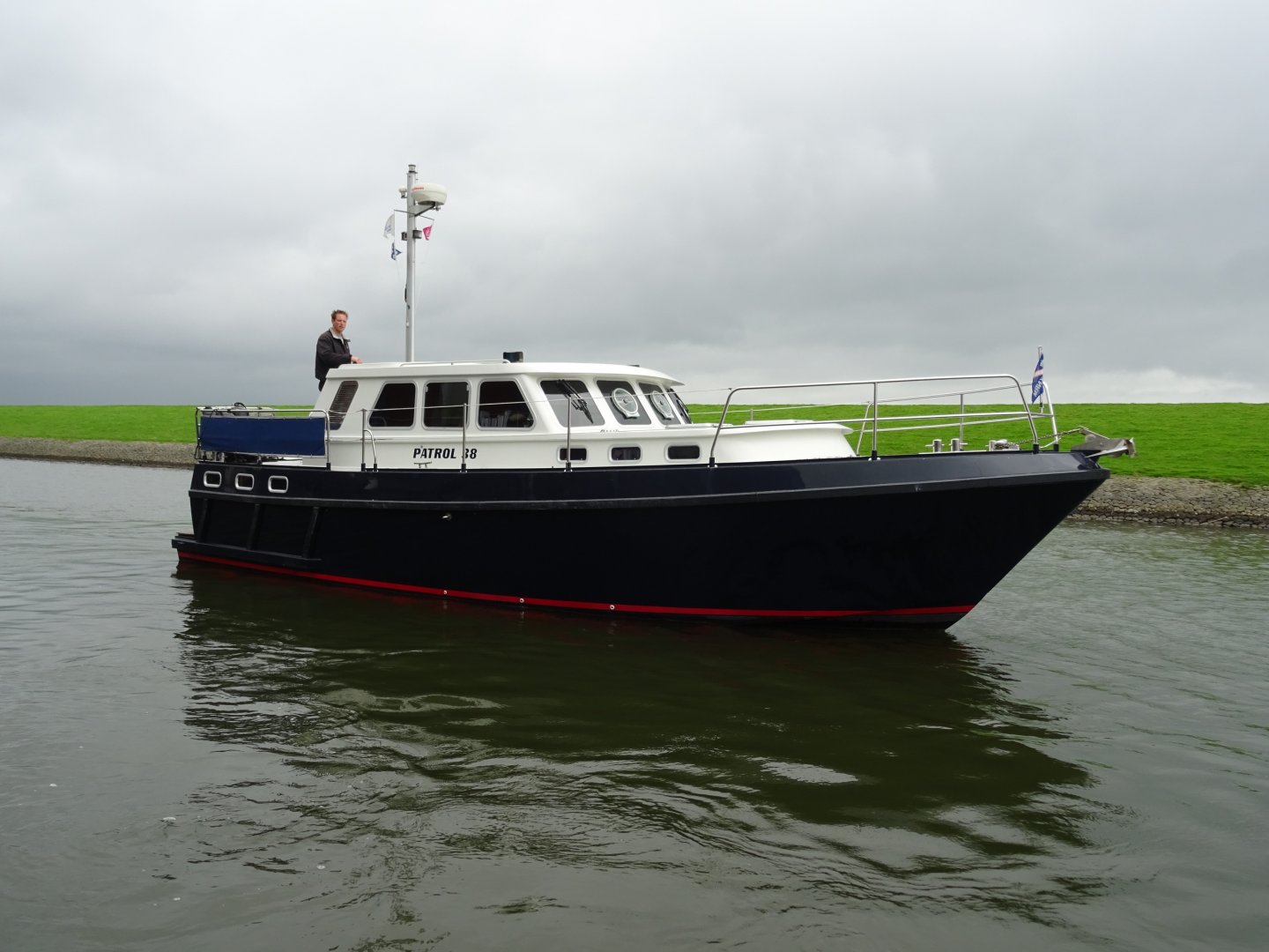 Robuuste aluminium Patrol. Onderhoudsvriendelijk uitgevoerd. Onder andere uitgerust met: generator, keramische kookplaat met afzuigkap, stuurautomaat, radar, fenderkorfen, elektrische ankerlier, boegschroef, slingerruiten, strijkbare mast, luxe teak interieur, Mastervolt controle paneel, CE categorie B.