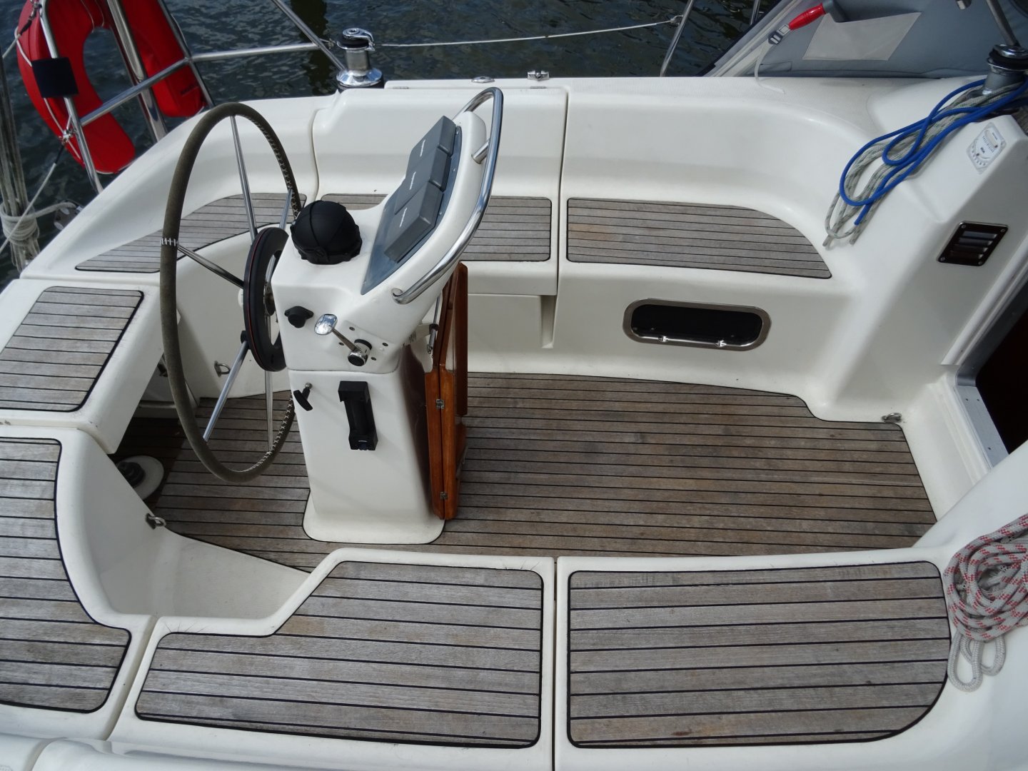 Zeer complete Bavaria 34 met nieuwe stoffering (juni 2018). Ondiepe kiel, elektrische ankerlier en complete kuiptent met RVS frame. Klaptafel in de kuip, kuipdouche, extra verhaalklampen. Railinginstap aan beide zijden, volledig teakdek, stowaway grootzeil en rolgenua, Webasto verwarming, boiler, Victron 50 Ah acculader met walstroomaansluiting, Victron gel accu's 2x 165 Ah boordnet, 29 Pk motor, volledige navigatie incl. radar. Inruil bespreekbaar.