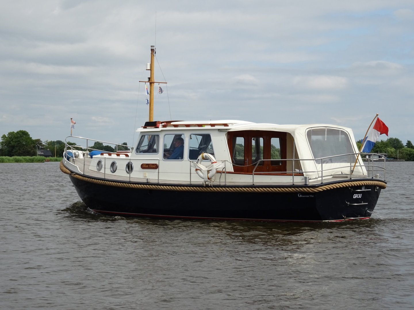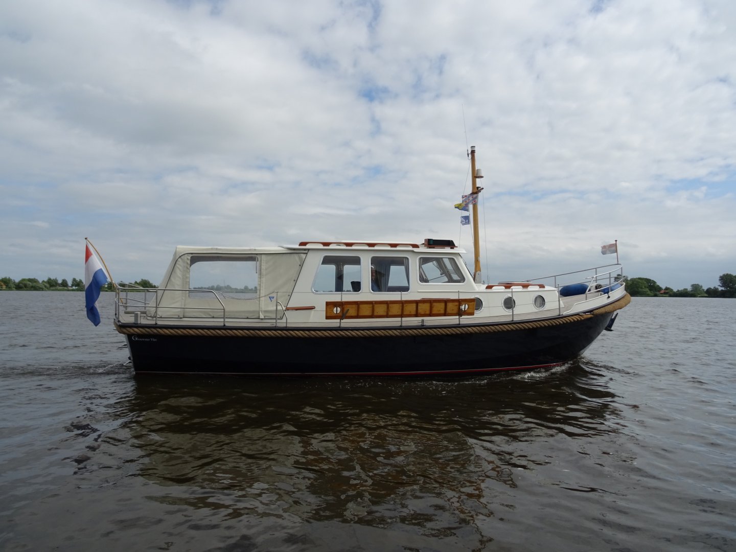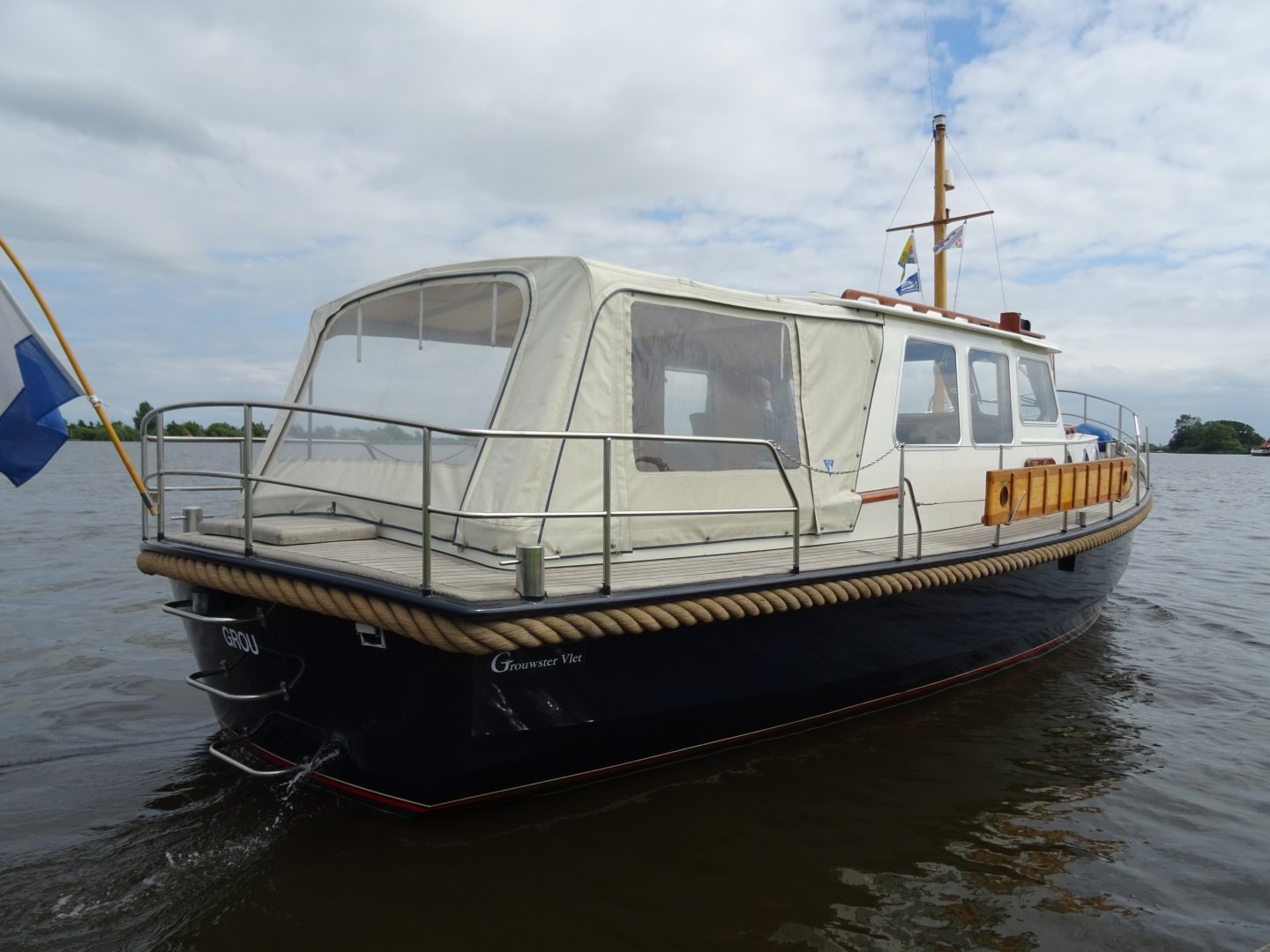 Werf onderhouden Grouwstervlet. Heeft altijd in schiphuis gelegen. Zeer solide gebouwd. Gespoten in 2 componenten, wintertent, boegschroef, groot salonluik. De Grouwstervlet staat bekend om de zeer goede vaareigenschappen en heeft een goed afgewerkt en praktisch interieur.