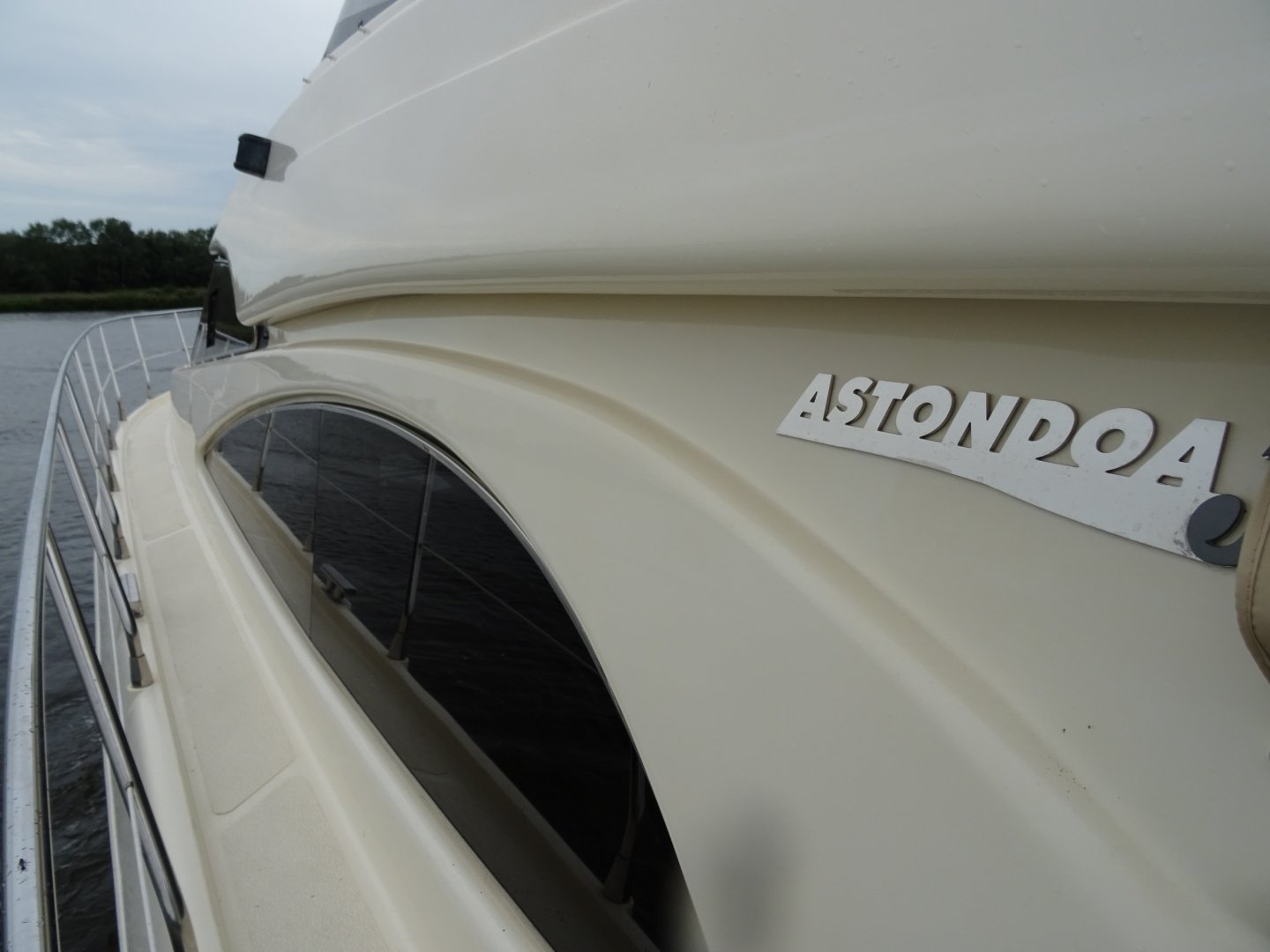 Zeer goed onderhouden Astondoa. Dit schip heeft altijd in een schiphuis gelegen en is voornamelijk op zoet water gebruikt. Full options. Technisch goed bijgehouden. Onder andere uitgerust met; boegschroef, hekschroef, airconditioning, elektrische kookplaat, magnetron, corean werkbladen, generator, 2x flatscreen, rvs gepolijste raamprofielen, elektrische toiletten, volledige navigatie, elektrische ankerlier, teakdek in kuip, kuipdouche, lederen bekleding. Schiphuis in Sneek eventueel ter overname.