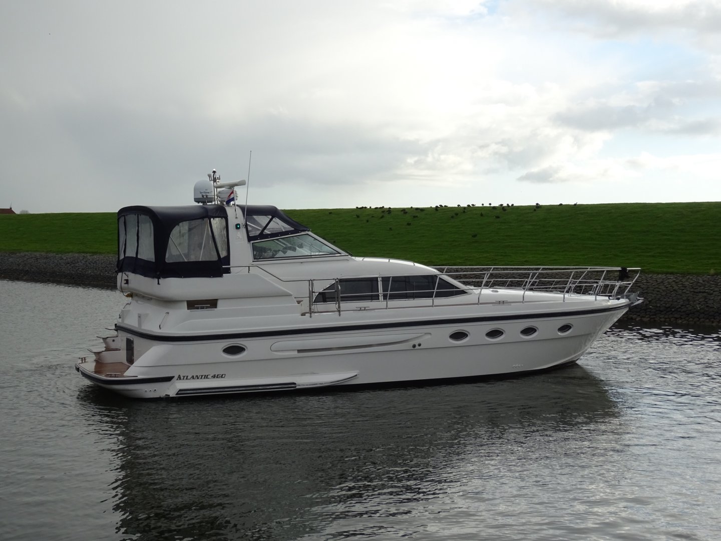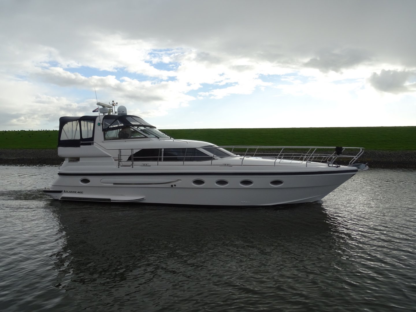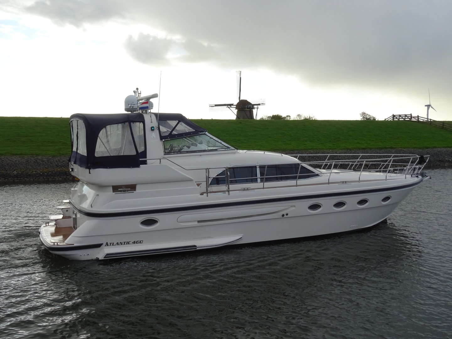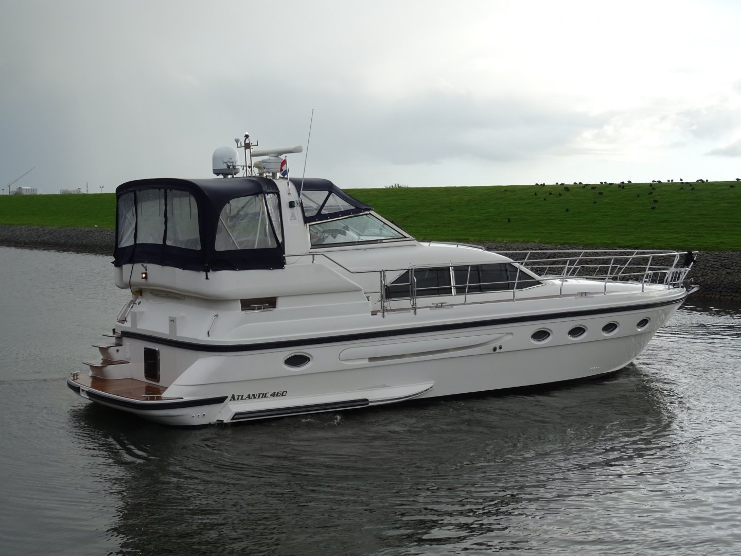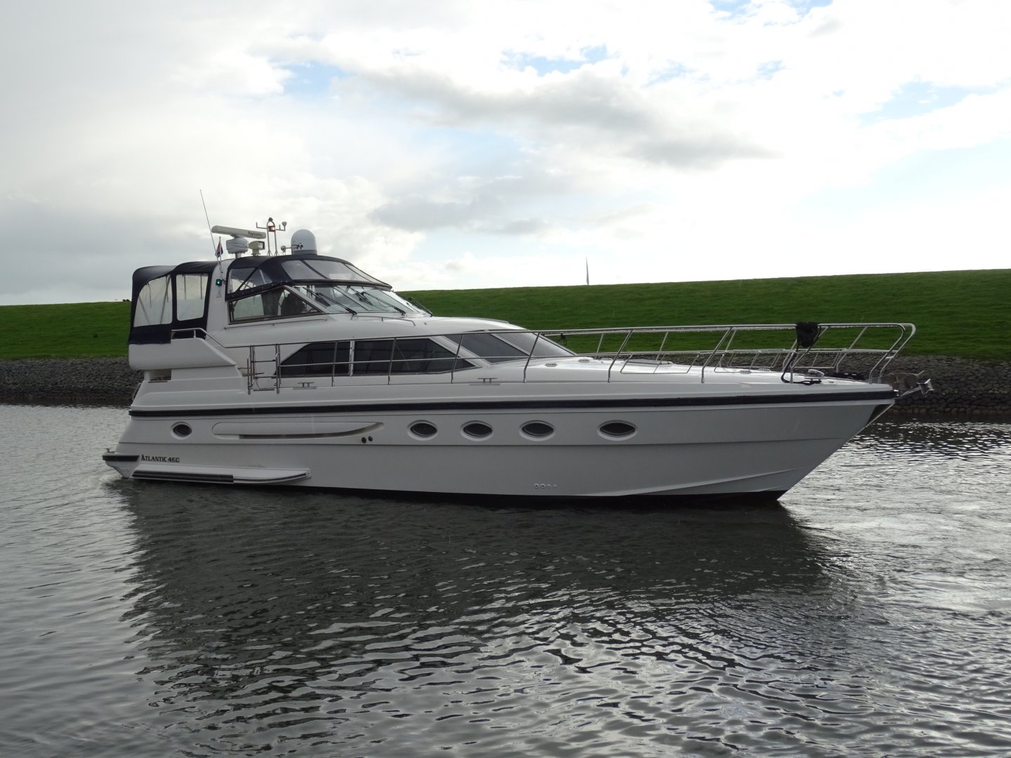 In nieuwstaat verkerende Atlantic 460. Zeer compleet uitgevoerd met alle mogelijke comfort. Onder andere uitgerust met; Airconditioning, nieuwe matrassen 2014, nieuwe bekleding 2014, 2 x koelkast, Siemens keukenapparatuur, wasmachine, vaatwasser, TV op lift, satelliet antenne Tracvision 4, zoeklicht, luidspeakers op achterdek, kluis, zoeklicht, elektrische ankerlier, elektrisch klapbare radarbeugel, elektrisch verstelbare stuurbank, roestvrijstalen raamprofielen, raamsproeiers, boegschroef, hekschroef, EDC motorcontrols, teakdek volledig.