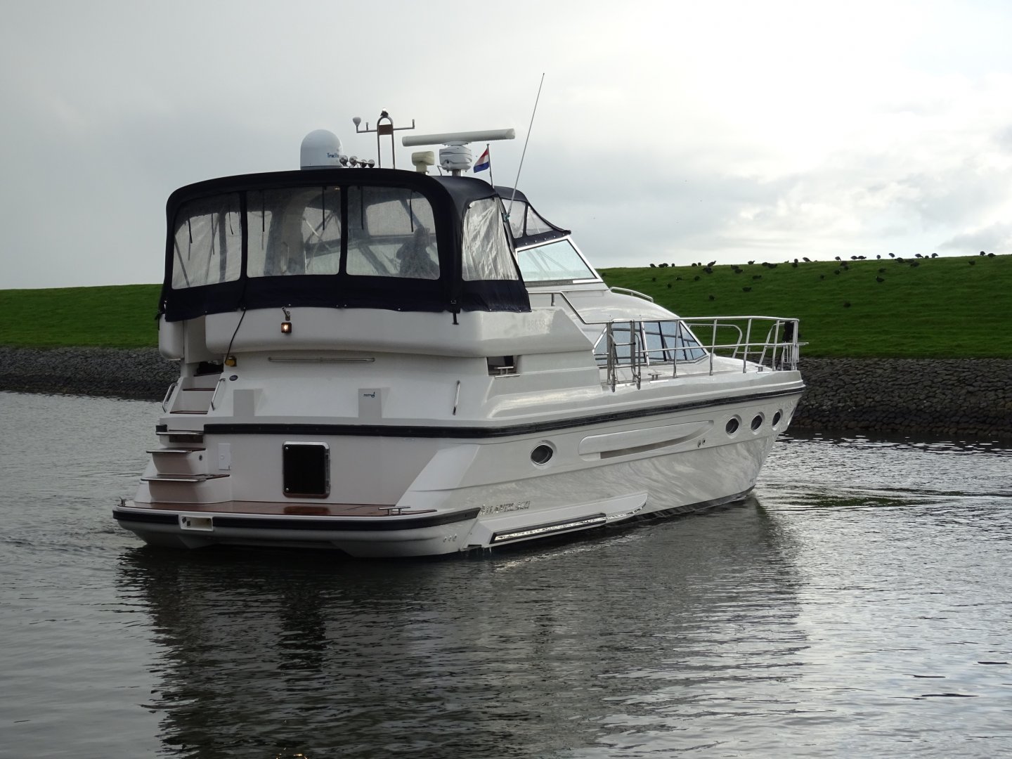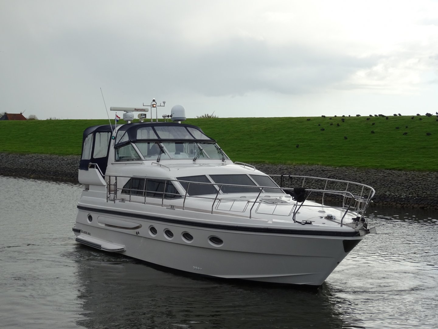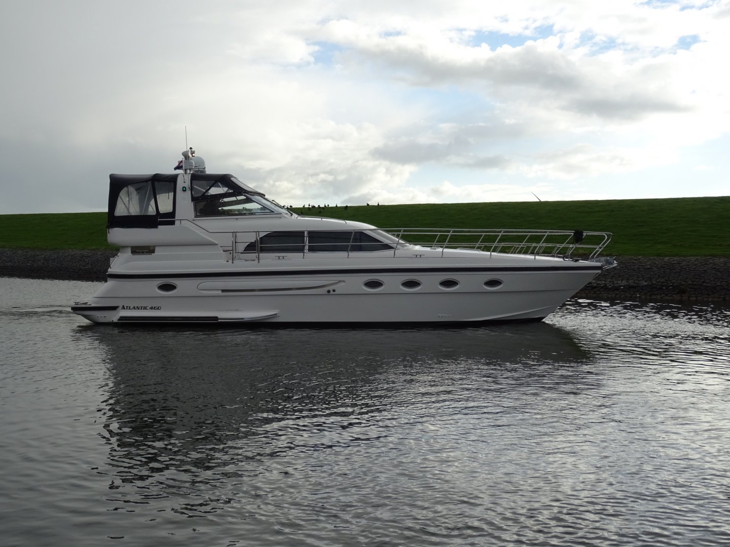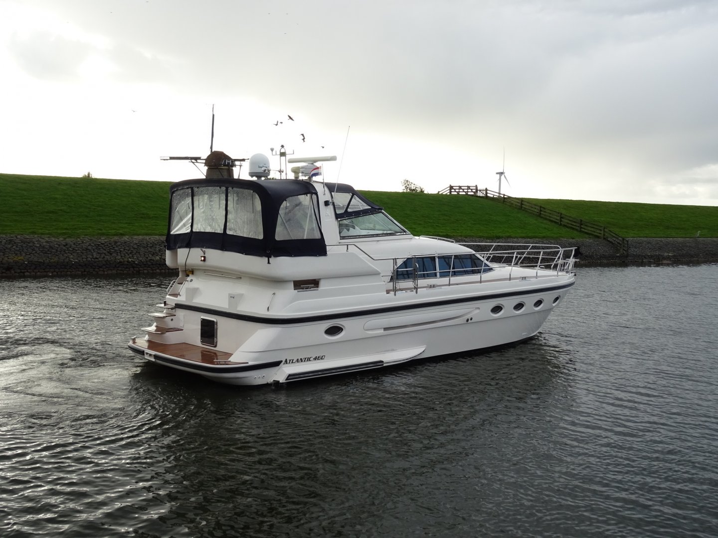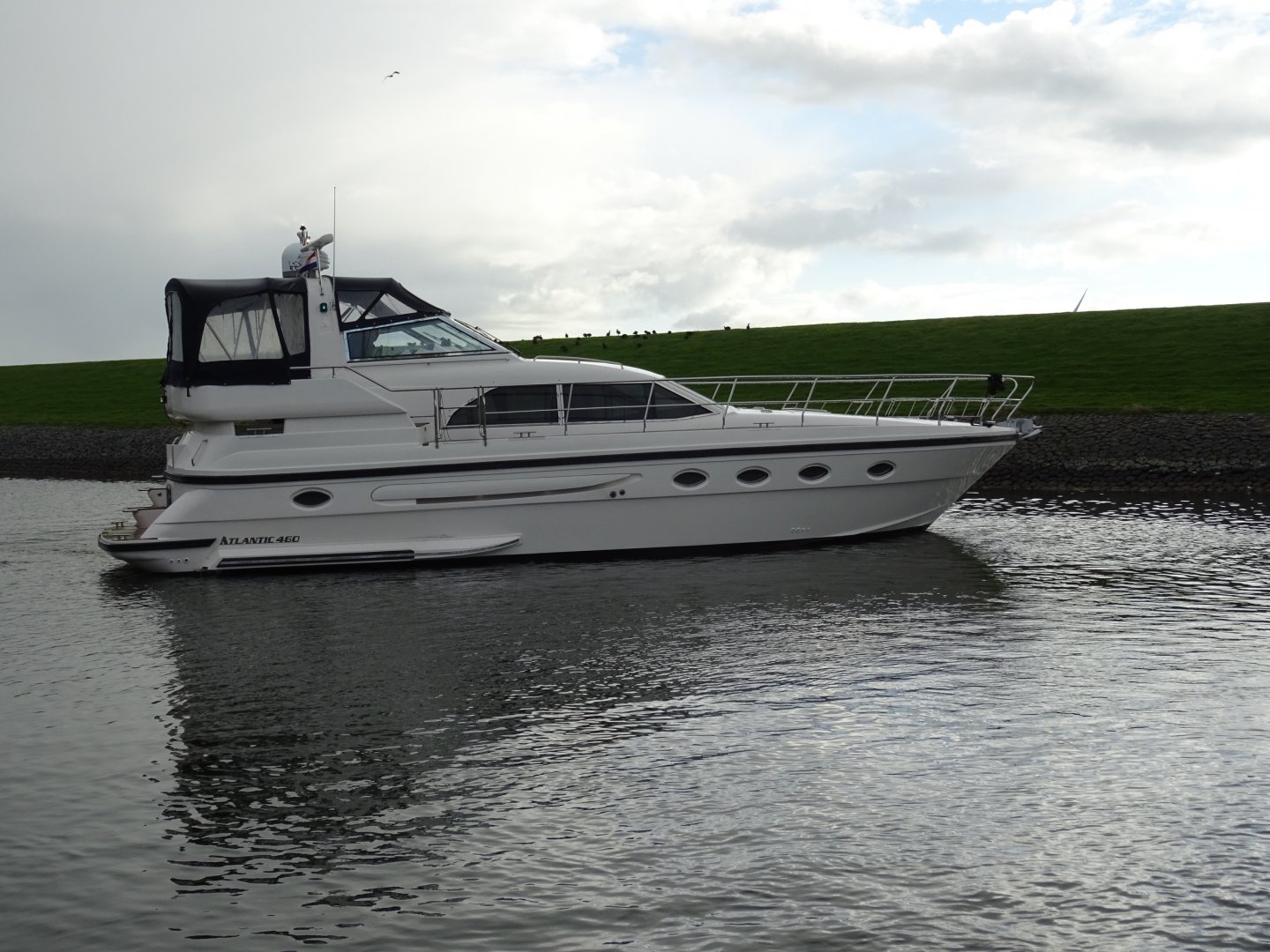 In nieuwstaat verkerende Atlantic 460. Zeer compleet uitgevoerd met alle mogelijke comfort. Onder andere uitgerust met; Airconditioning, nieuwe matrassen 2014, nieuwe bekleding 2014, 2 x koelkast, Siemens keukenapparatuur, wasmachine, vaatwasser, TV op lift, satelliet antenne Tracvision 4, zoeklicht, luidspeakers op achterdek, kluis, zoeklicht, elektrische ankerlier, elektrisch klapbare radarbeugel, elektrisch verstelbare stuurbank, roestvrijstalen raamprofielen, raamsproeiers, boegschroef, hekschroef, EDC motorcontrols, teakdek volledig.