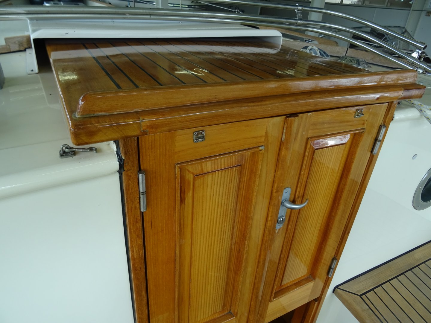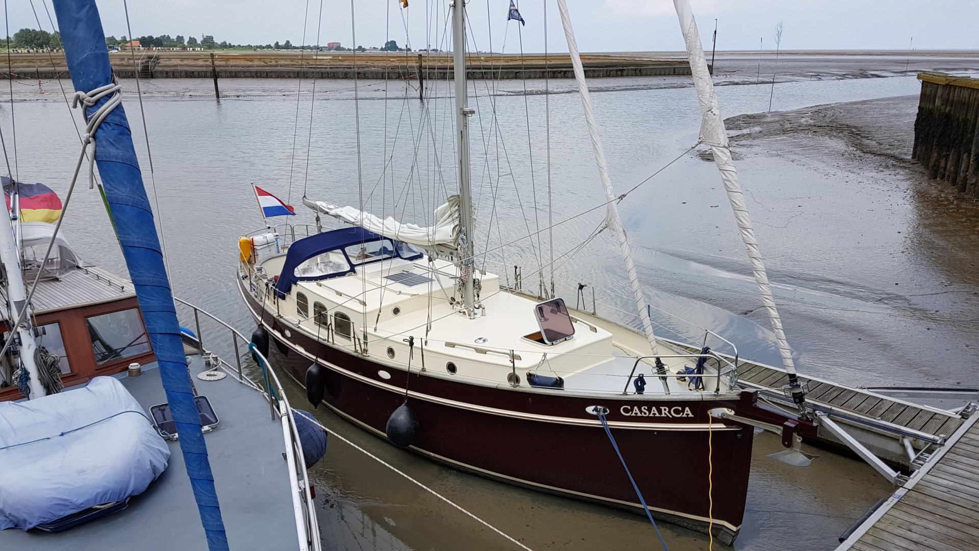 Zeer robuust zeiljacht met een prachtige zeeg. Door het midzwaard is bijna ieder vaargebied mogelijk (variabele diepgang van 0.90 / 2.30 meter). Deze Wanderer kan staand droogvallen. Brede gangboorden. Mooi afgewerkt interieur. Goed onderhouden. Motorbeurt januari 2019. Romp geschilderd 2015. Antifouling 2019. Onder andere uitgerust met; hydraulisch midzwaard, volledige Simrad navigatie + AIS/radar/stuurautomaat/plotter/marifoon met DSC, goed onderhouden zeilgarderobe, lazyjacks, ankerlier, ploeganker met 50 meter ketting, Variprop schroef, boegschroef, elektrisch toilet, Kenwood stereo, Webasto verwarming, oven, Victron acculader, omvormer, Victron scheidingstravo, teakhouten potdeksel, teak in kuip, grote bakskisten, liferaft, radarreflector, elektrische gasafsluiter, roestvrijstalen raamlijsten, kuipdouche, elektrische ankerlier, zonnepaneel.