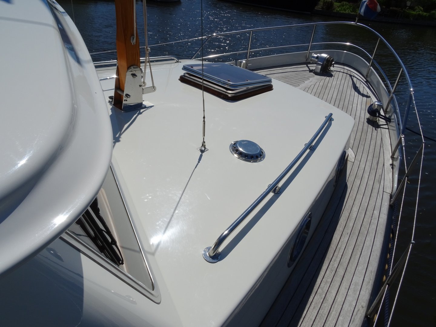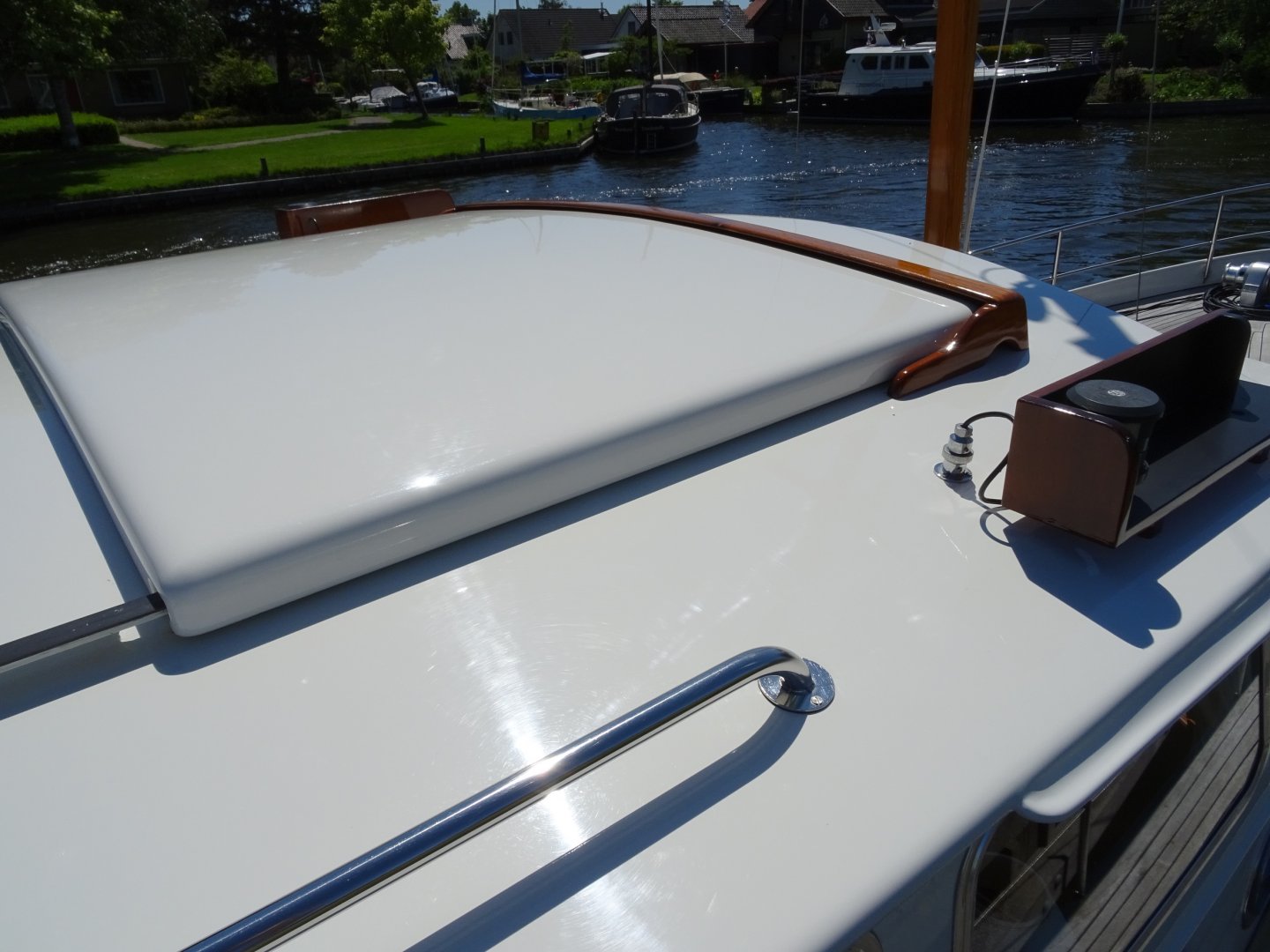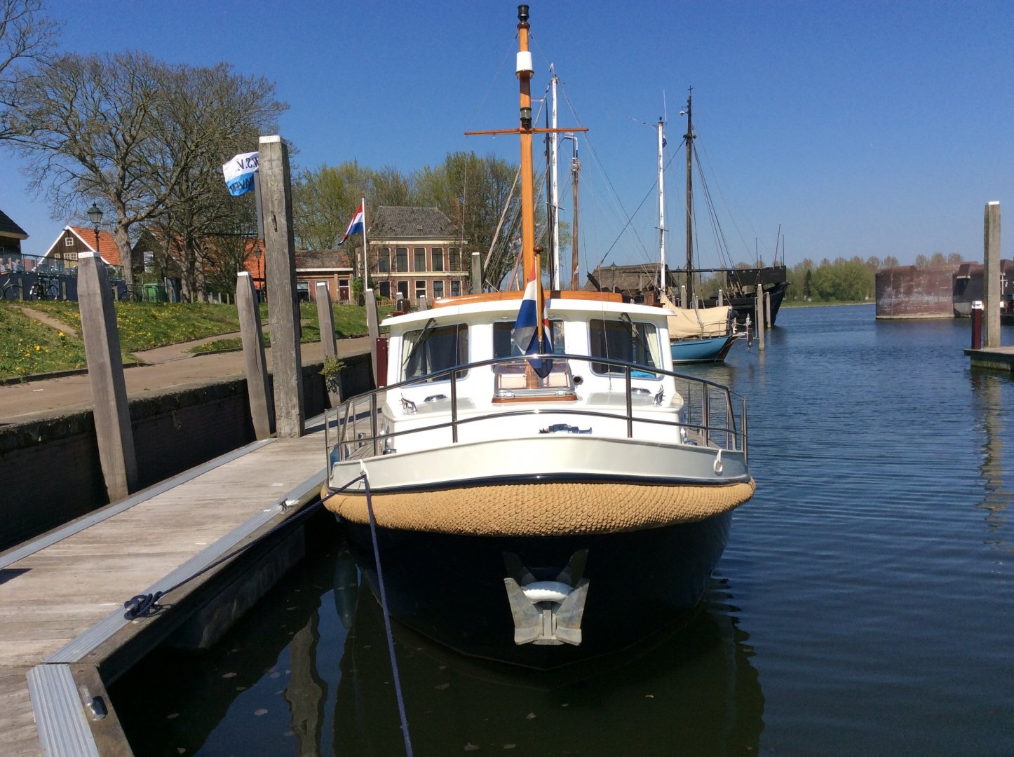 Uitermate goed onderhouden Grouwster Vlet met teakhouten interieur. Refit 2016: opnieuw gespoten in 2 componenten, houtwerk volledig kaal en opgebouwd in 2 componentenlak, lakwerk kuip, alle slangen vervangen (watersysteem, vuilwater, afvoeren), 3-wegkraan voor toilet ingebouwd, nieuw toilet, nieuwe grotere gasfles, nieuwe kuipkussens, nieuwe gordijnen, nieuwe horren, grote motorservice, rvs logo's, nieuwe rvs handgrepen op stuurhuis en kajuit. Laatste motorbeurt 2018. Startaccu vernieuwd in 2017. Massief essen/teakhouten vloer. Groot salonluik. De Grouwster Vlet staat bekend om de zeer goede vaareigenschappen.