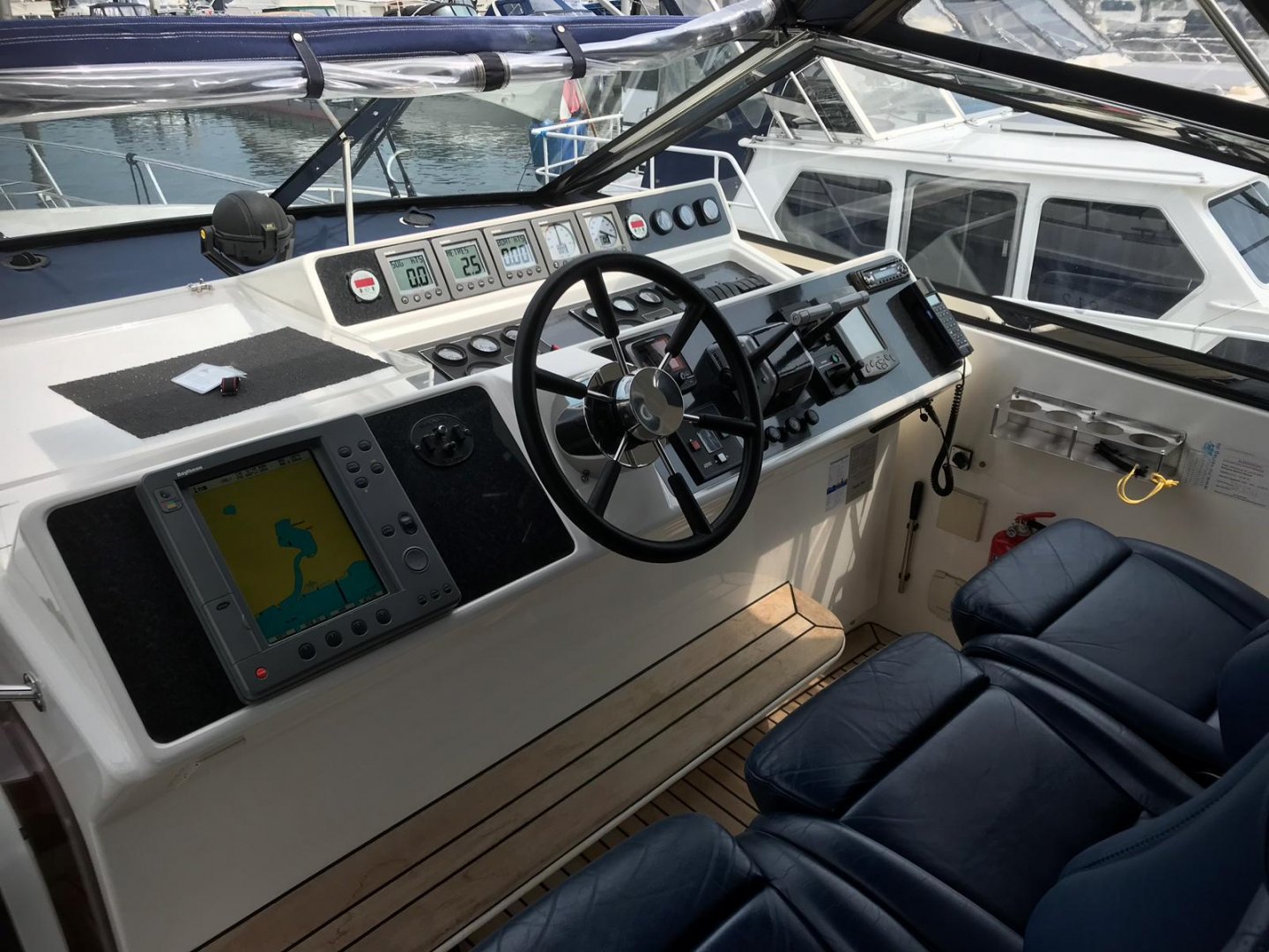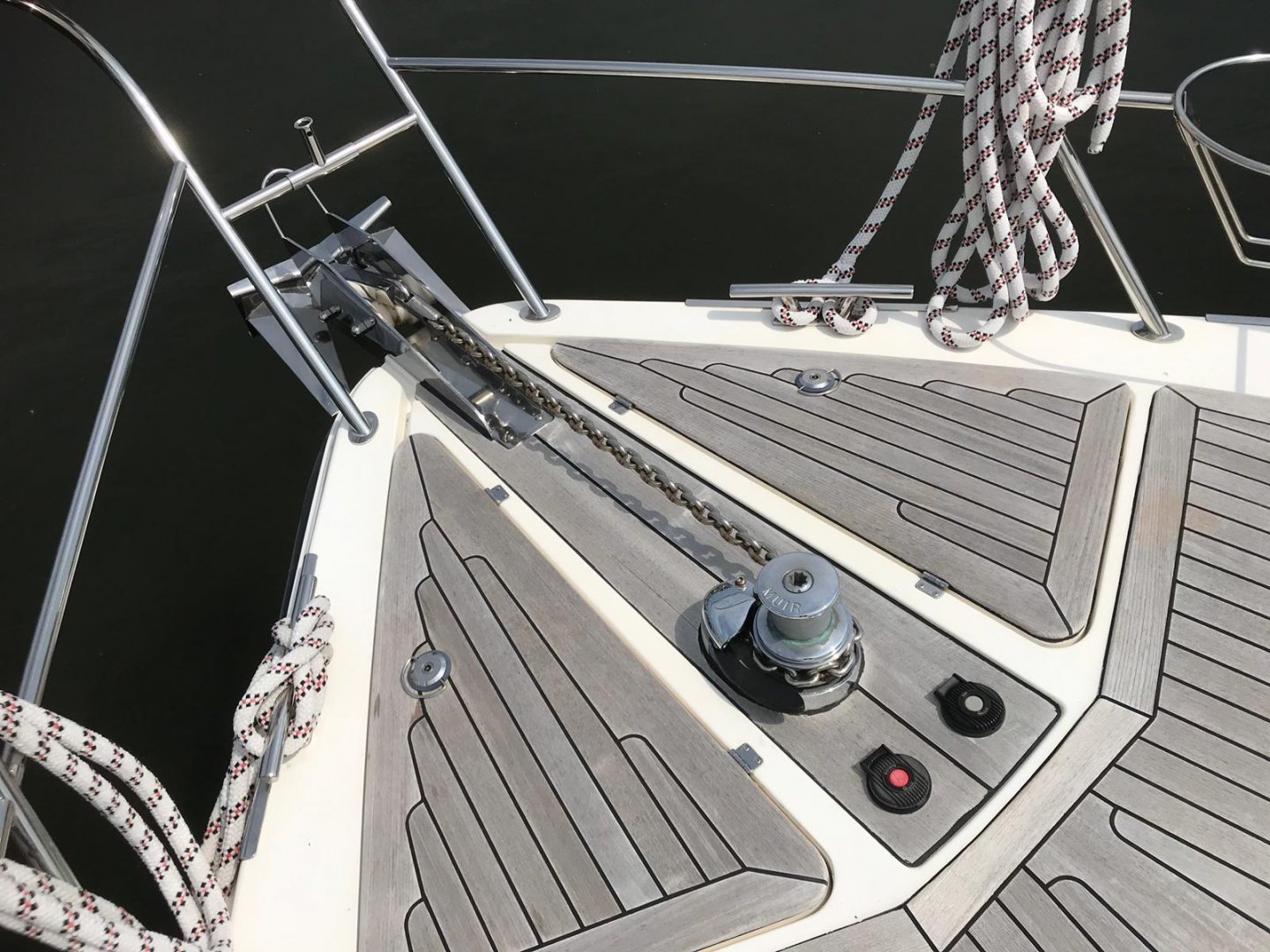 Dubbele koelkast met rvs front. Opblaasbare matrassen en opblaasbare stuurstoelen. Safe. Bar met flessenhouder.