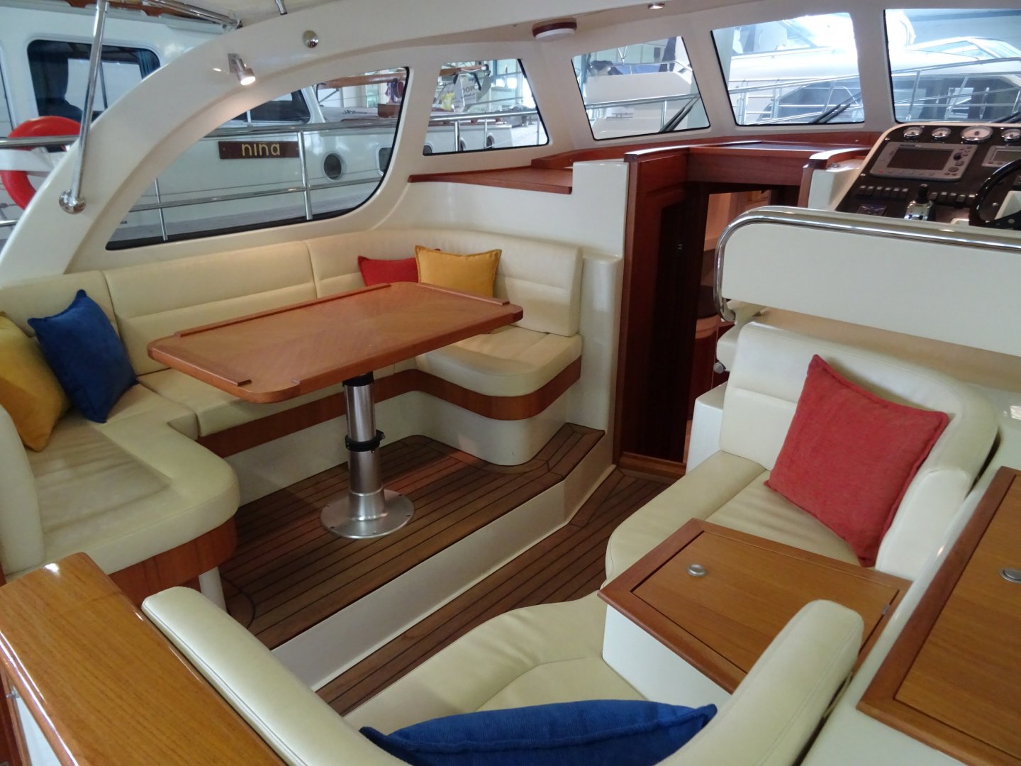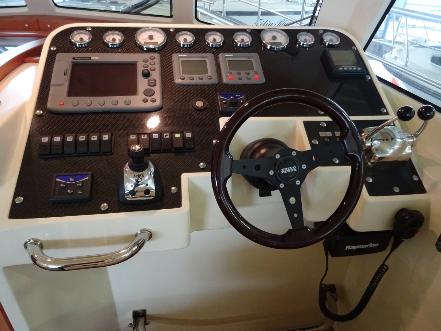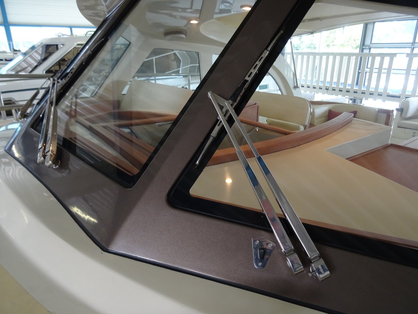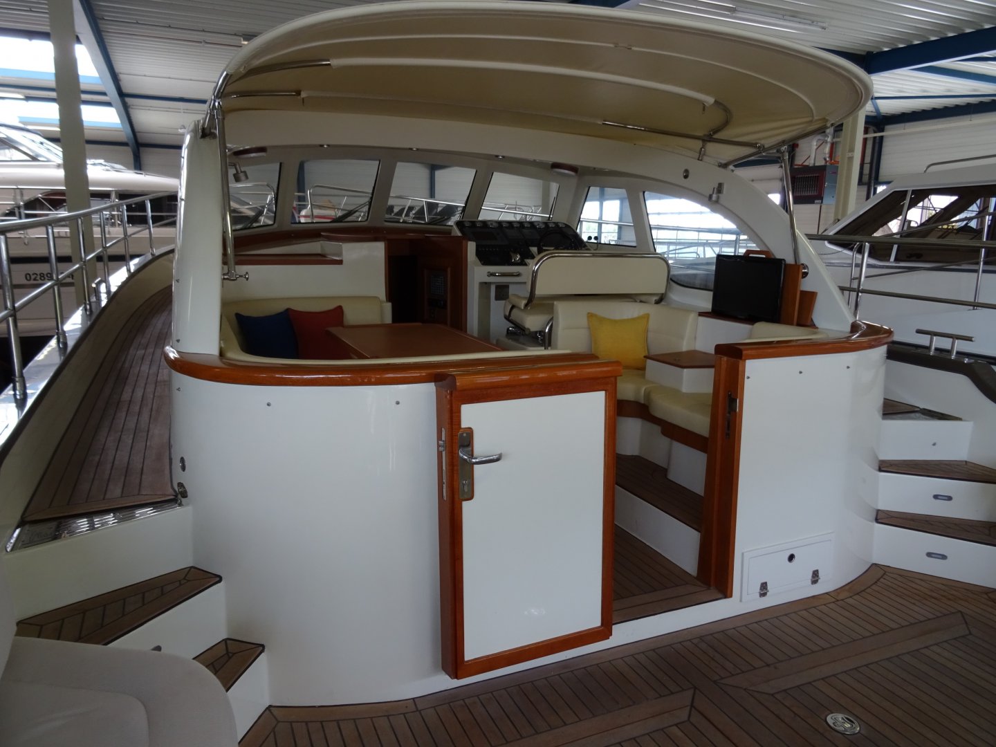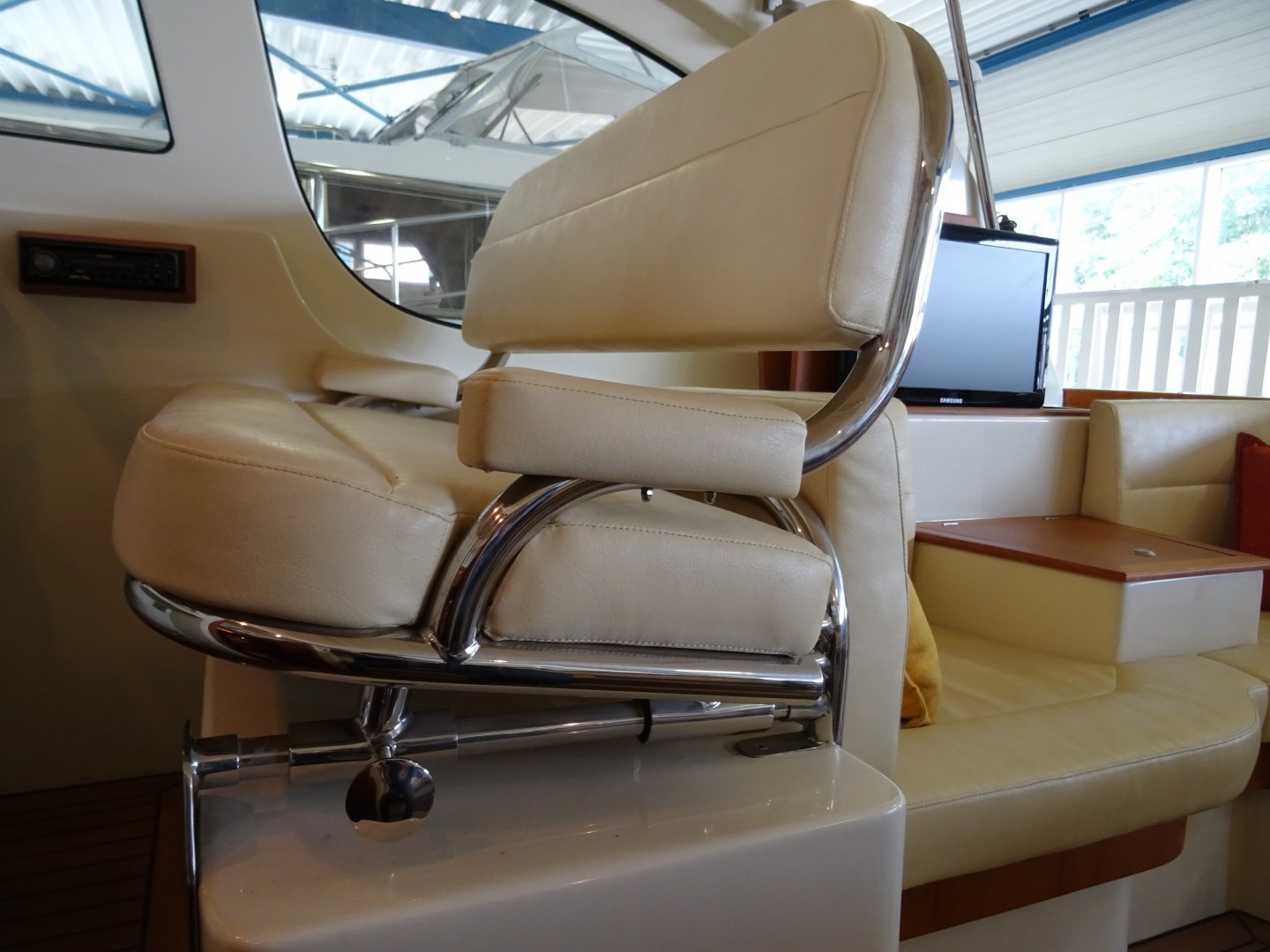 Tuna 40 Cabrio. Full options. Demo model, prijs is exclusief BTW. De motoren hebben nog 0 uren en moeten nog door een officiele Volvo Dealer in bedrijf worden gesteld. Zeer luxe gebouwd en afgewerkt. Volvo IPS400 met joystick en elektrische motorbediening, teakhouten sierlijsten, royaal r.v.s. gebruik rondom, brede gangboorden met hoge zeereling, matellic striping, kabelaring, dubbelarmige r.v.s. ruitenwissers, lederen buitenbekleding, verstelbare stuurbank, verstelbaar stuurwiel, LED verlichting, tranenplaat in de machinekamer, massief teakdek rondom, dekwaspomp, kuipdouche, elektrisch bedienbare motorluiken, ruime motorkamer, Racorfilters met glazen kommen, teak betimmering met 6 vaste slaapplaaten, Corean werkbladen in keuken en natte cellen, ruime afsluitbare douche.