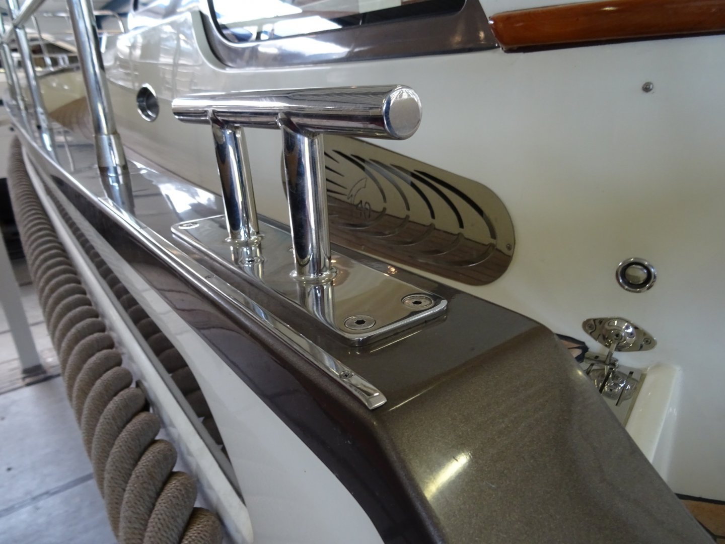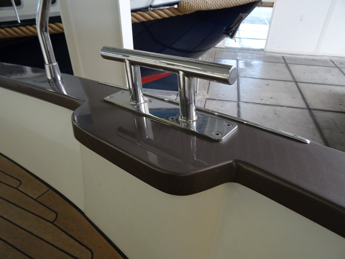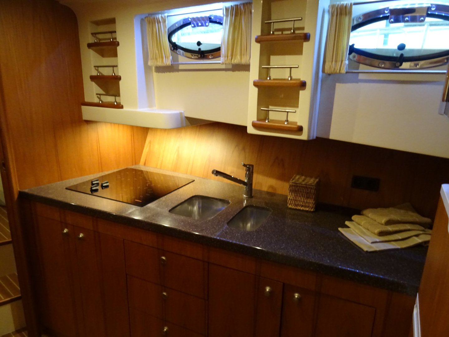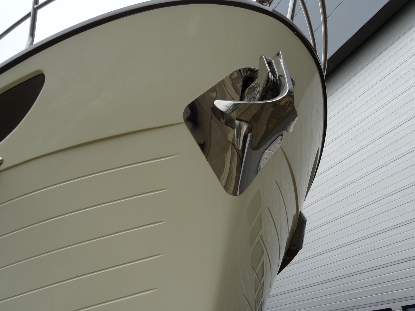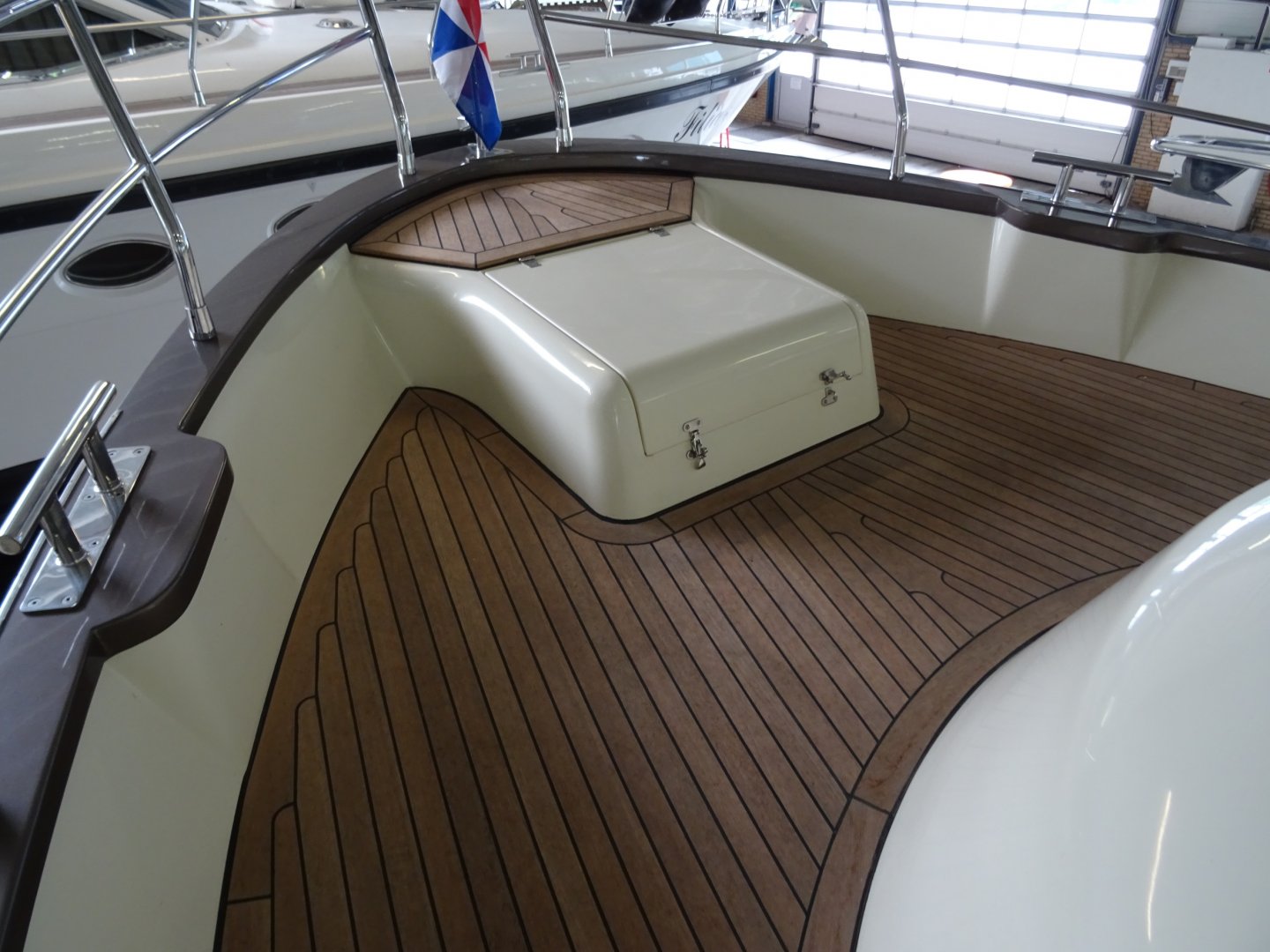 Tuna 40 Cabrio. Full options. Demo model, prijs is exclusief BTW. De motoren hebben nog 0 uren en moeten nog door een officiele Volvo Dealer in bedrijf worden gesteld. Zeer luxe gebouwd en afgewerkt. Volvo IPS400 met joystick en elektrische motorbediening, teakhouten sierlijsten, royaal r.v.s. gebruik rondom, brede gangboorden met hoge zeereling, matellic striping, kabelaring, dubbelarmige r.v.s. ruitenwissers, lederen buitenbekleding, verstelbare stuurbank, verstelbaar stuurwiel, LED verlichting, tranenplaat in de machinekamer, massief teakdek rondom, dekwaspomp, kuipdouche, elektrisch bedienbare motorluiken, ruime motorkamer, Racorfilters met glazen kommen, teak betimmering met 6 vaste slaapplaaten, Corean werkbladen in keuken en natte cellen, ruime afsluitbare douche.