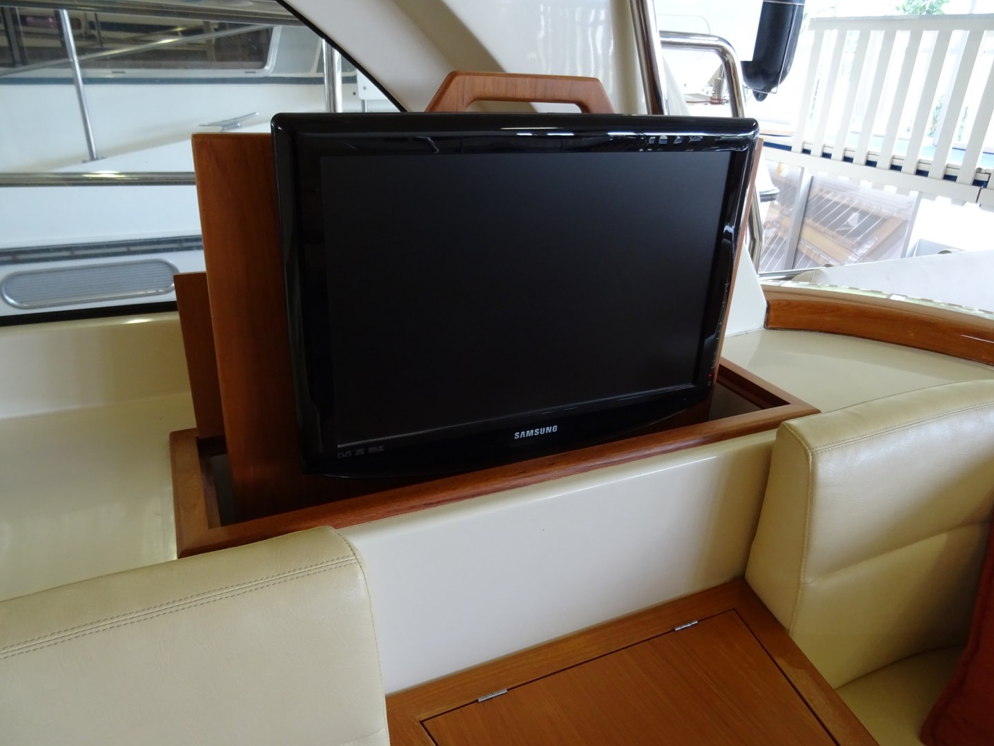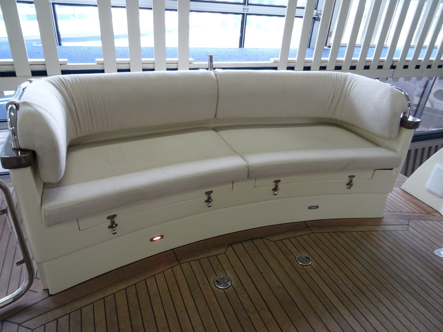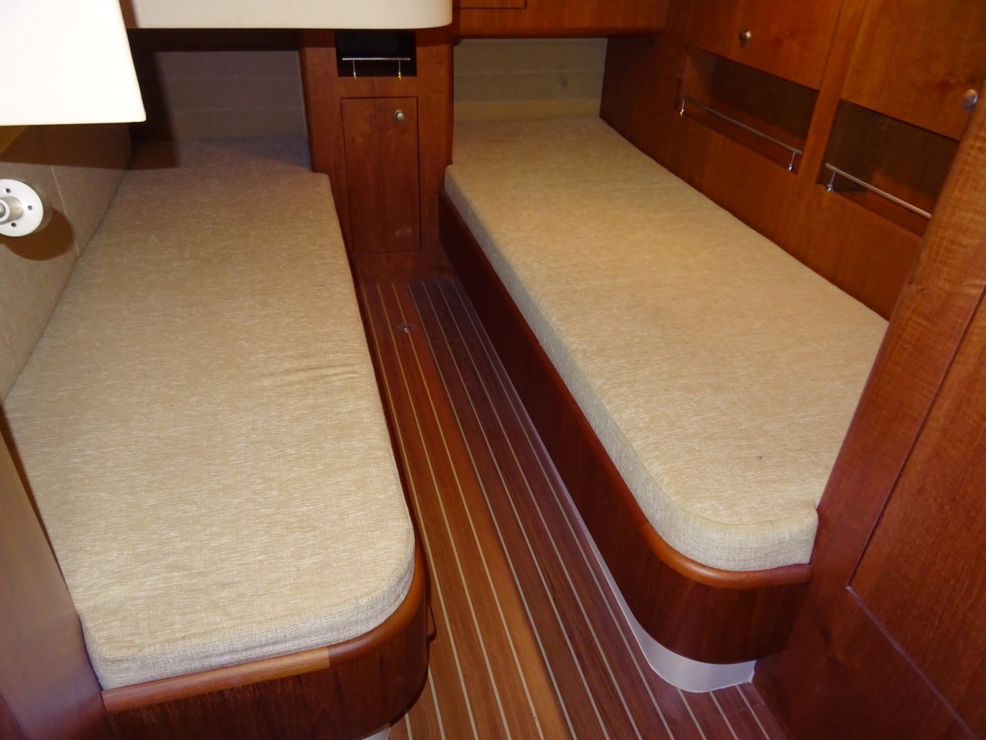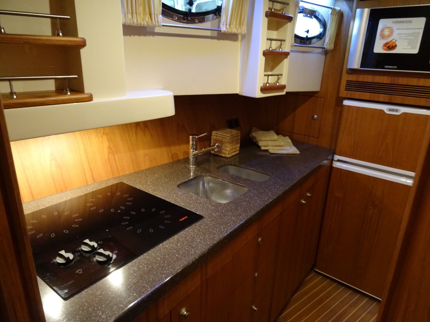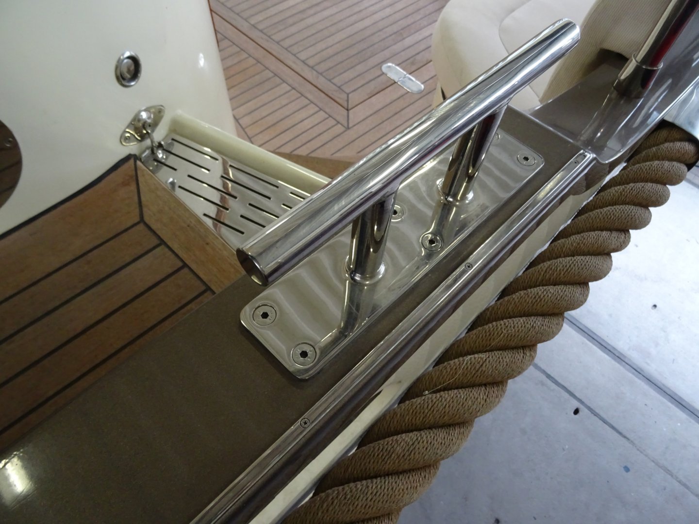 Tuna 40 Cabrio. Full options. Demo model, prijs is exclusief BTW. De motoren hebben nog 0 uren en moeten nog door een officiele Volvo Dealer in bedrijf worden gesteld. Zeer luxe gebouwd en afgewerkt. Volvo IPS400 met joystick en elektrische motorbediening, teakhouten sierlijsten, royaal r.v.s. gebruik rondom, brede gangboorden met hoge zeereling, matellic striping, kabelaring, dubbelarmige r.v.s. ruitenwissers, lederen buitenbekleding, verstelbare stuurbank, verstelbaar stuurwiel, LED verlichting, tranenplaat in de machinekamer, massief teakdek rondom, dekwaspomp, kuipdouche, elektrisch bedienbare motorluiken, ruime motorkamer, Racorfilters met glazen kommen, teak betimmering met 6 vaste slaapplaaten, Corean werkbladen in keuken en natte cellen, ruime afsluitbare douche.