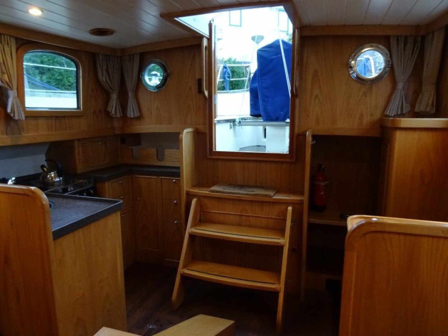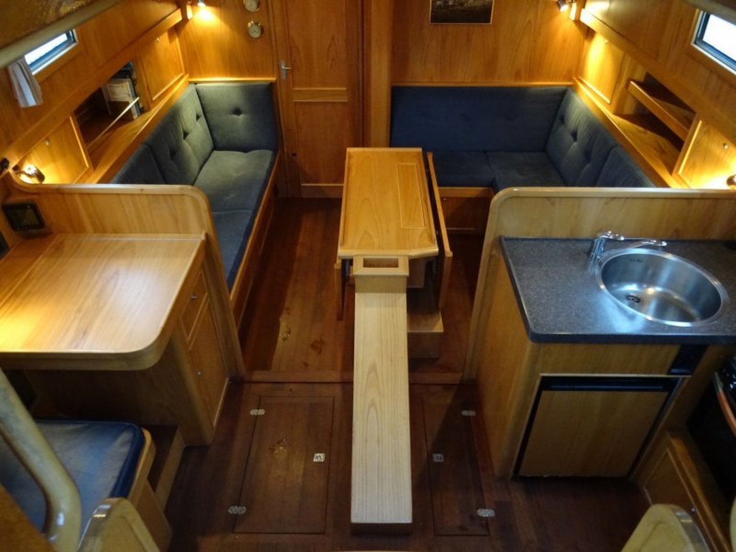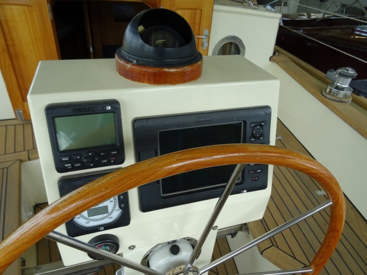 Prachtige Wanderer uit de modellenreeks Noordkaper, getekend door de befaamde Martin Bekebrede. Door de swing keel is bijna ieder vaargebied mogelijk (variable diepgang van 0.90 tot 2.30 meter). Deze Wanderer kan kan staand droogvallen. Goed onderhouden, romp geschilderd 2015, antifouling 2019, motorbeurt 2019 (daarna nauwelijks gebruikt). Rijkelijk uitgerust met onder andere; hydraulische hefkiel, volledige Simrad navigatie (AIS/radar/stuurautomaat/plotter/marifoon met DSC), lazyjacks, elektrische ankerlier, ploeganker met 50 meter ketting, Varioprop schroef, boegschroef, elektrisch toilet, Kenwood stereo, Webasto verwarming, oven, acculader, omvormer, scheidingstravo, teakhouten potdeksel, teakdek in kuip, sprayhood, liferaft, loopplank, radarreflector, elektrische gasafsluiter, rvs raamlijsten, kuipdouche, zonnepaneel.
