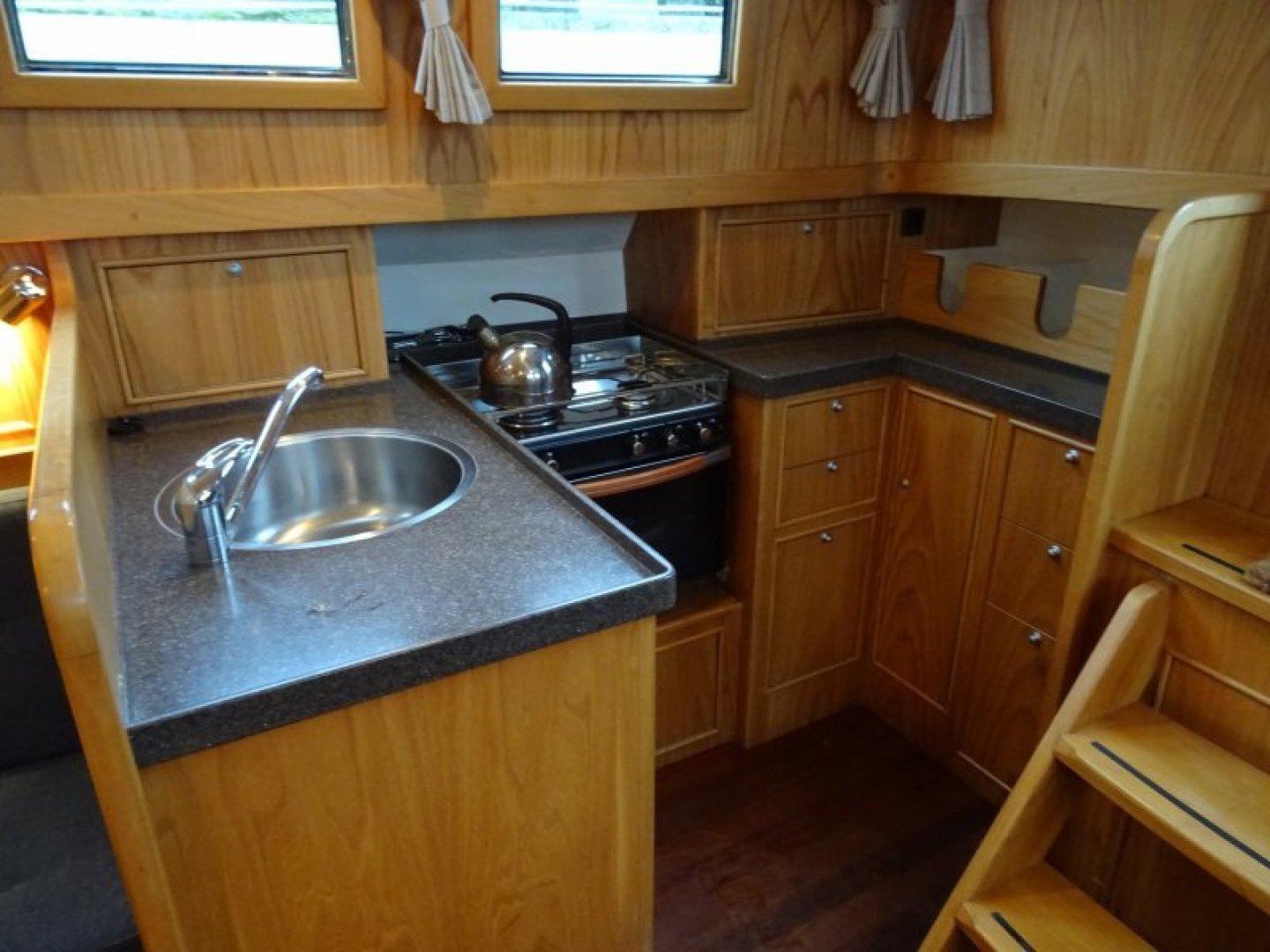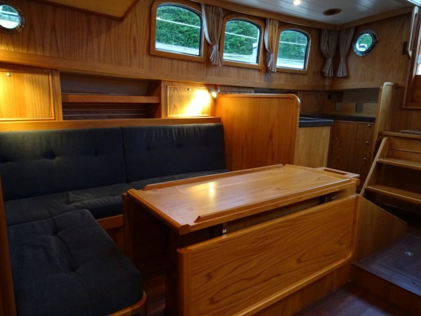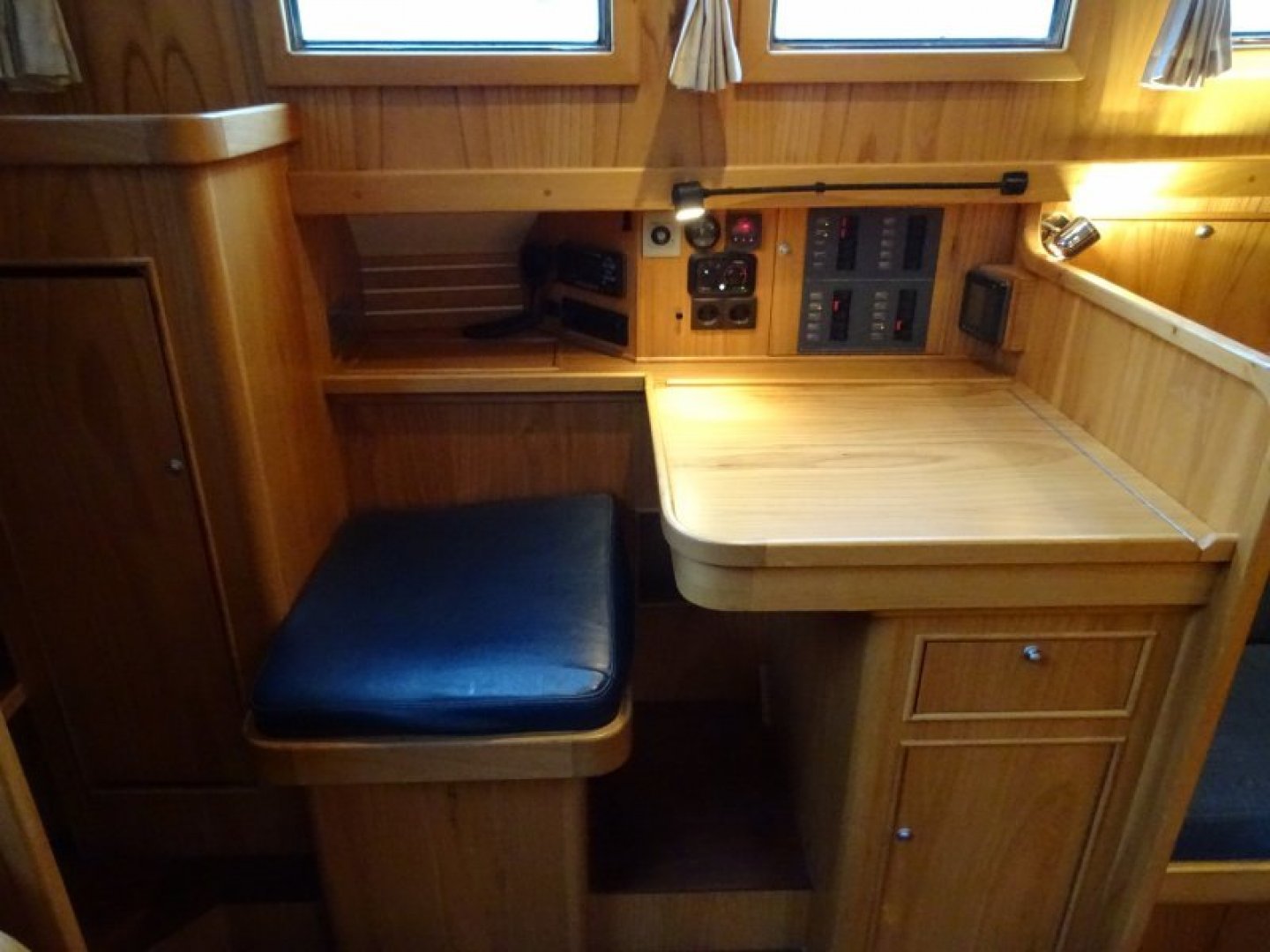 Prachtige Wanderer uit de modellenreeks Noordkaper, getekend door de befaamde Martin Bekebrede. Door de swing keel is bijna ieder vaargebied mogelijk (variable diepgang van 0.90 tot 2.30 meter). Deze Wanderer kan kan staand droogvallen. Goed onderhouden, romp geschilderd 2015, antifouling 2019, motorbeurt 2019 (daarna nauwelijks gebruikt). Rijkelijk uitgerust met onder andere; hydraulische hefkiel, volledige Simrad navigatie (AIS/radar/stuurautomaat/plotter/marifoon met DSC), lazyjacks, elektrische ankerlier, ploeganker met 50 meter ketting, Varioprop schroef, boegschroef, elektrisch toilet, Kenwood stereo, Webasto verwarming, oven, acculader, omvormer, scheidingstravo, teakhouten potdeksel, teakdek in kuip, sprayhood, liferaft, loopplank, radarreflector, elektrische gasafsluiter, rvs raamlijsten, kuipdouche, zonnepaneel.