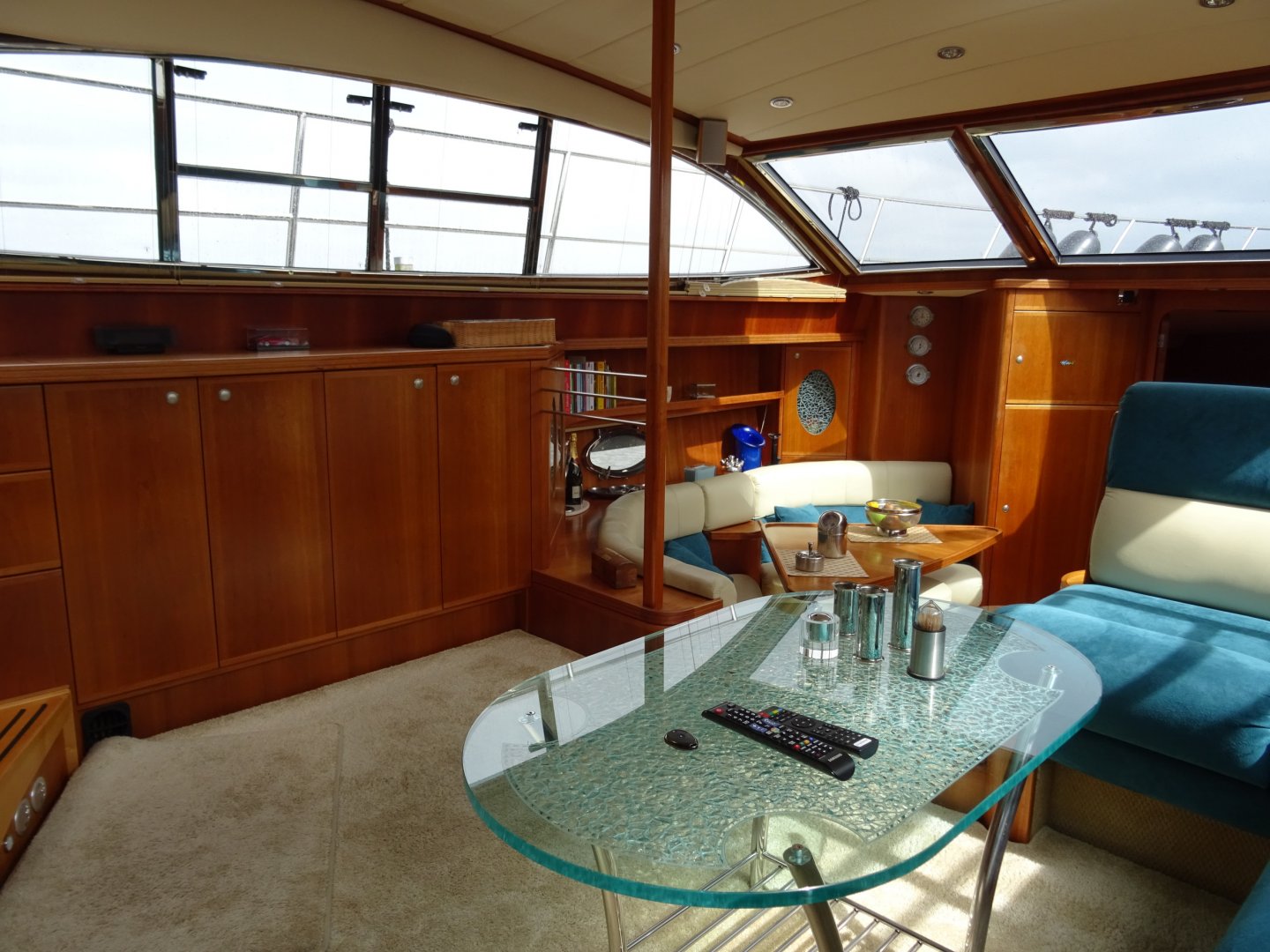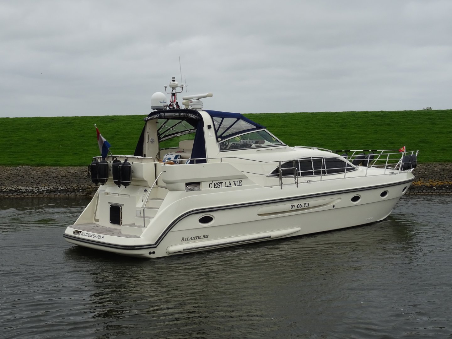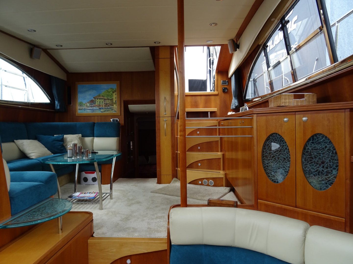 Zeer verzorgde Atlantic 50. Airco, flatscreen op lift, easy handling cabrio, hydraulische radarbeugel, kruiphoogte 3.40 (Franse kanalen mogelijk), rvs raamlijsten, dubbelarmige ruitenwisser met sproeisysteem, teakdek, dubbele rvs reling met zijtrappen en fenderkorfen, dekverlichting, elektrisch verstelbare stuurbank, buitenspeakers, koelbox op achterdek, Siemens vaatwasser, Siemens combi magnetron, Siemens was/droog combinatie, generator, accu's vernieuwd 2017/2018.