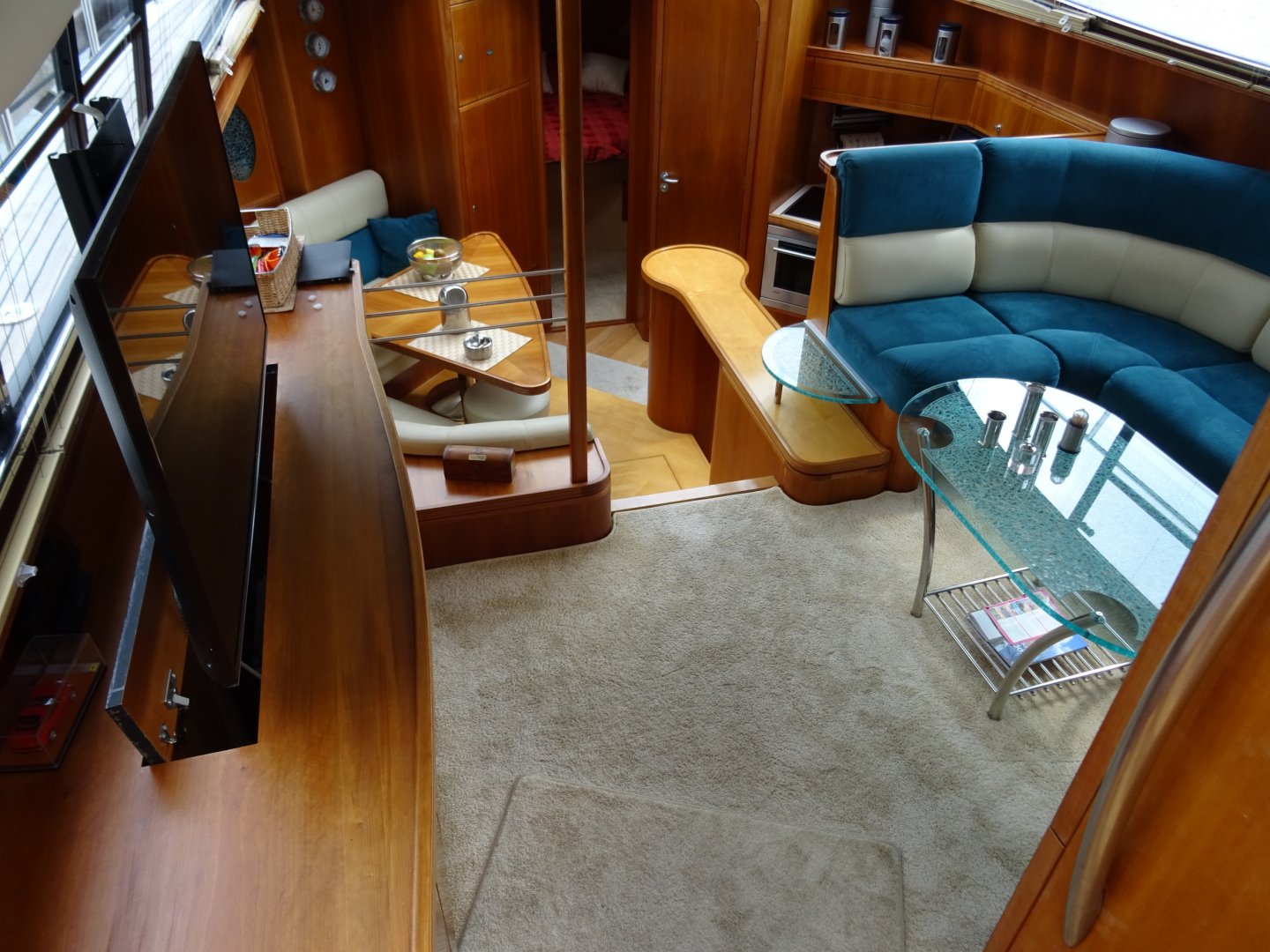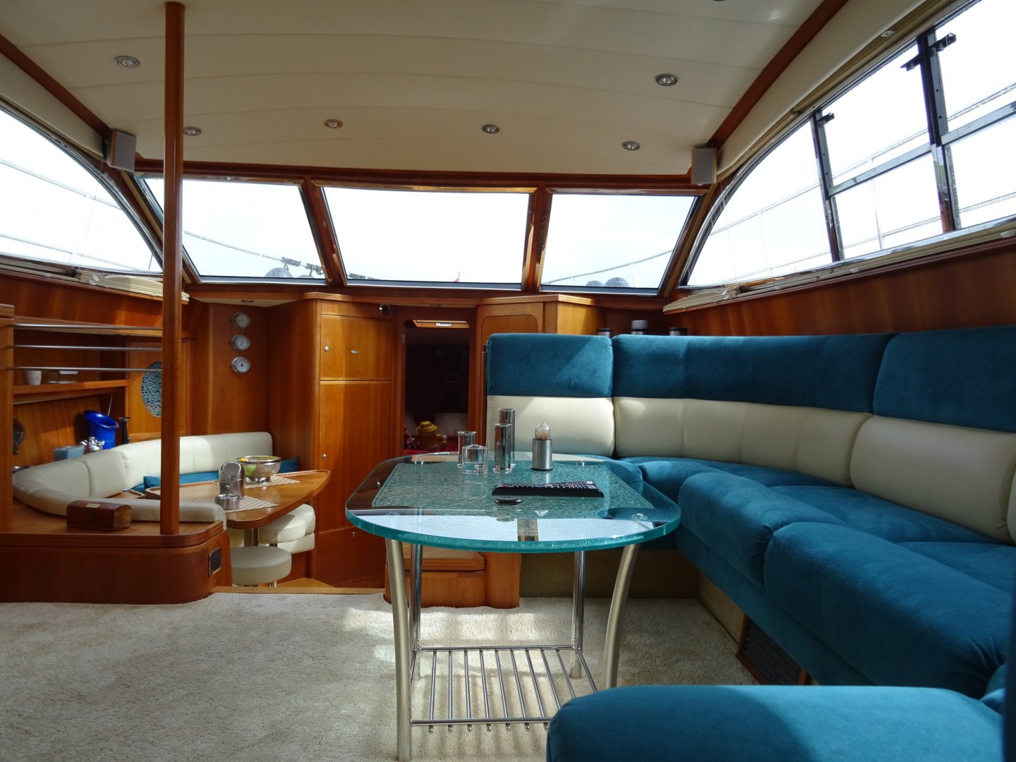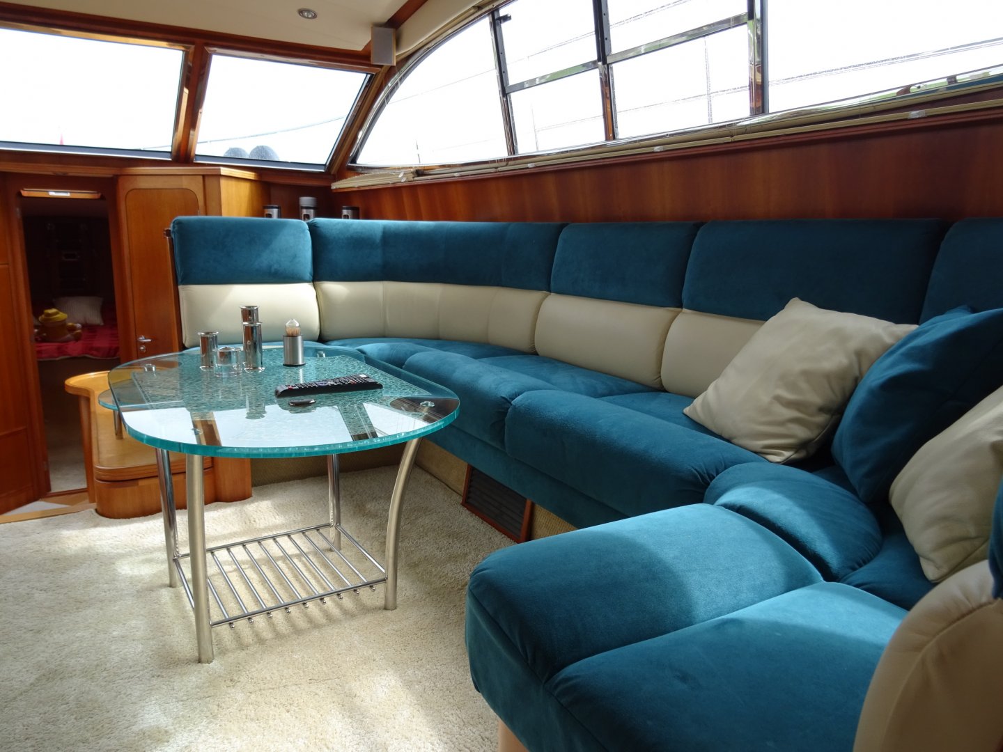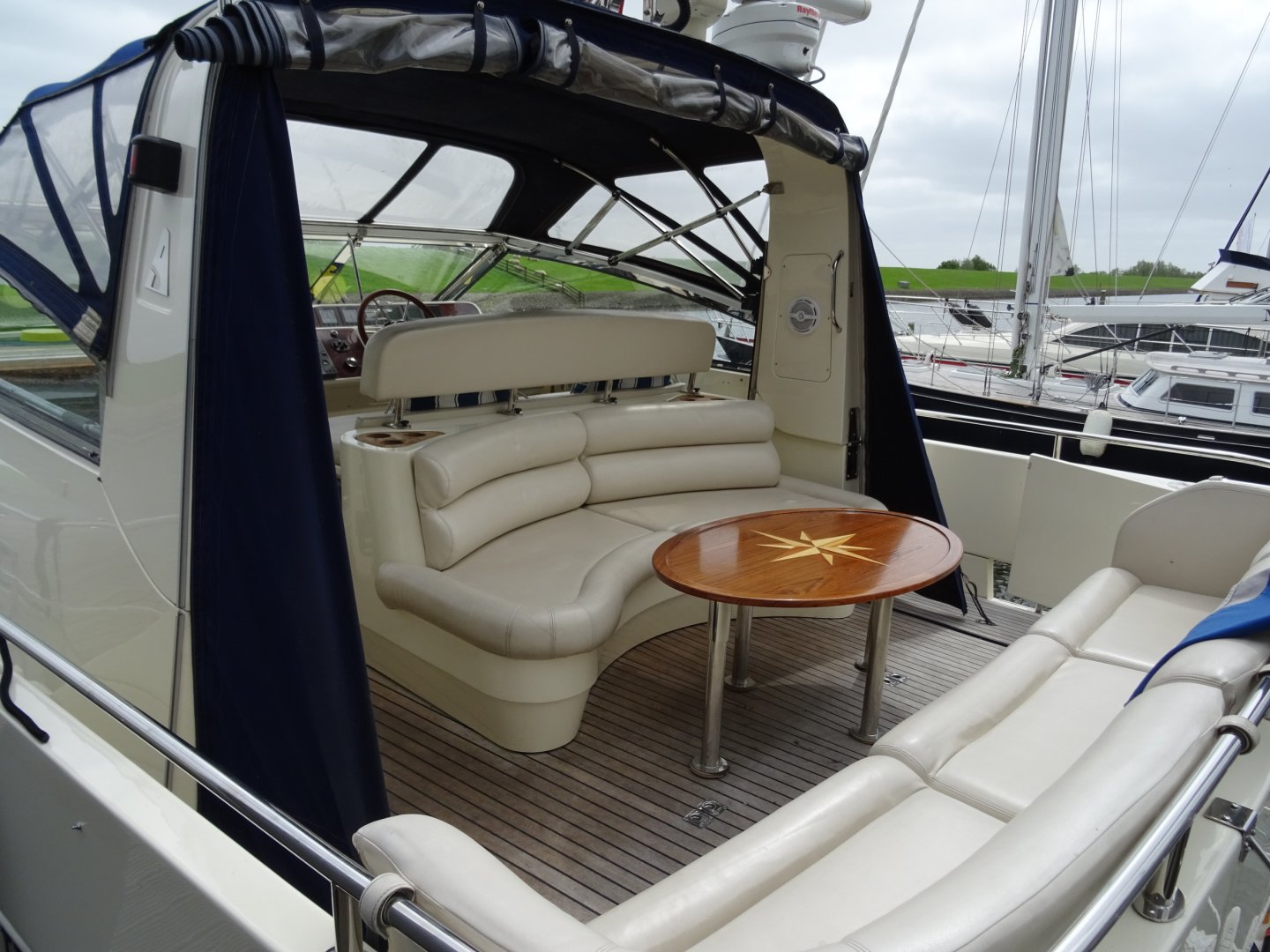 Zeer verzorgde Atlantic 50. Airco, flatscreen op lift, easy handling cabrio, hydraulische radarbeugel, kruiphoogte 3.40 (Franse kanalen mogelijk), rvs raamlijsten, dubbelarmige ruitenwisser met sproeisysteem, teakdek, dubbele rvs reling met zijtrappen en fenderkorfen, dekverlichting, elektrisch verstelbare stuurbank, buitenspeakers, koelbox op achterdek, Siemens vaatwasser, Siemens combi magnetron, Siemens was/droog combinatie, generator, accu's vernieuwd 2017/2018.
