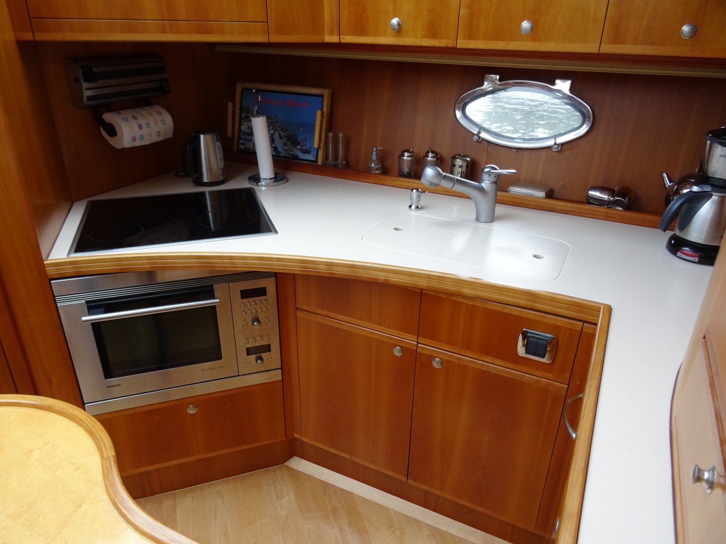 Geen gassysteem nodig in verband met elektrische kookplaat en generator.
