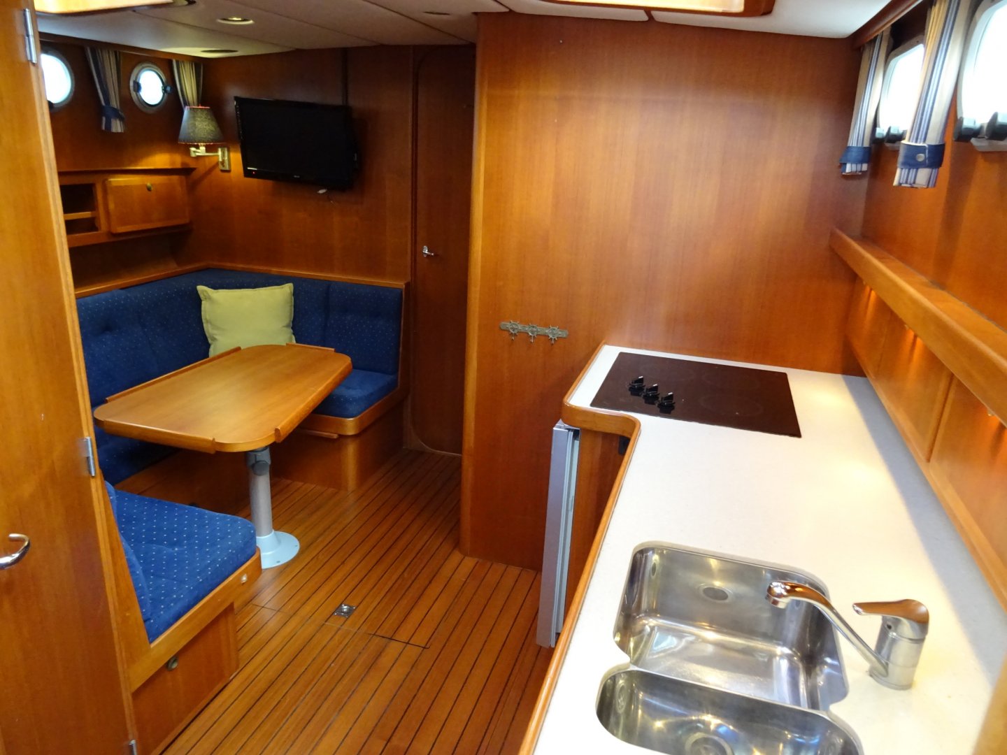 Zeer solide schip met mooie details. Prachtig en sfeervol betimmerd. Volledige elektrische installatie inclusief generator vernieuwd in 2007. Onder andere uitgerust met; teakhouten vloer, mastervolt omvormer 5000 watt, generator, keramische kookplaat, Corean werkbladen in natte cel en keuken, magnetron, grote koelkast, volledige navigatie, stowaway grootzeil en bazaan, furling voor kluiver en genua, grote motorkamer met tranenplaat, dubbel brandstoffilter, windgenerator, gestraald in 2012, geschilderd 2012/2014, davids, dubbele railing.