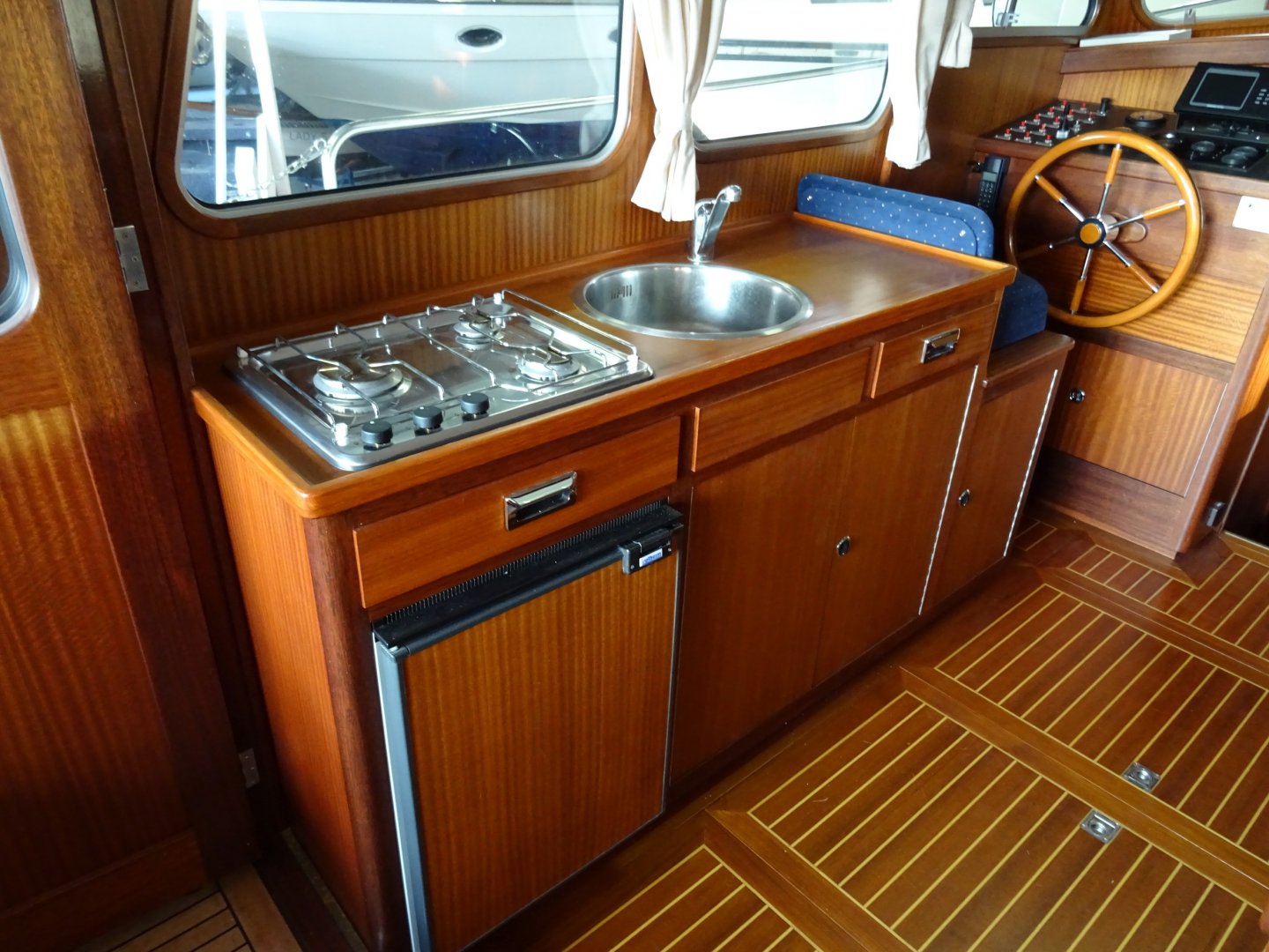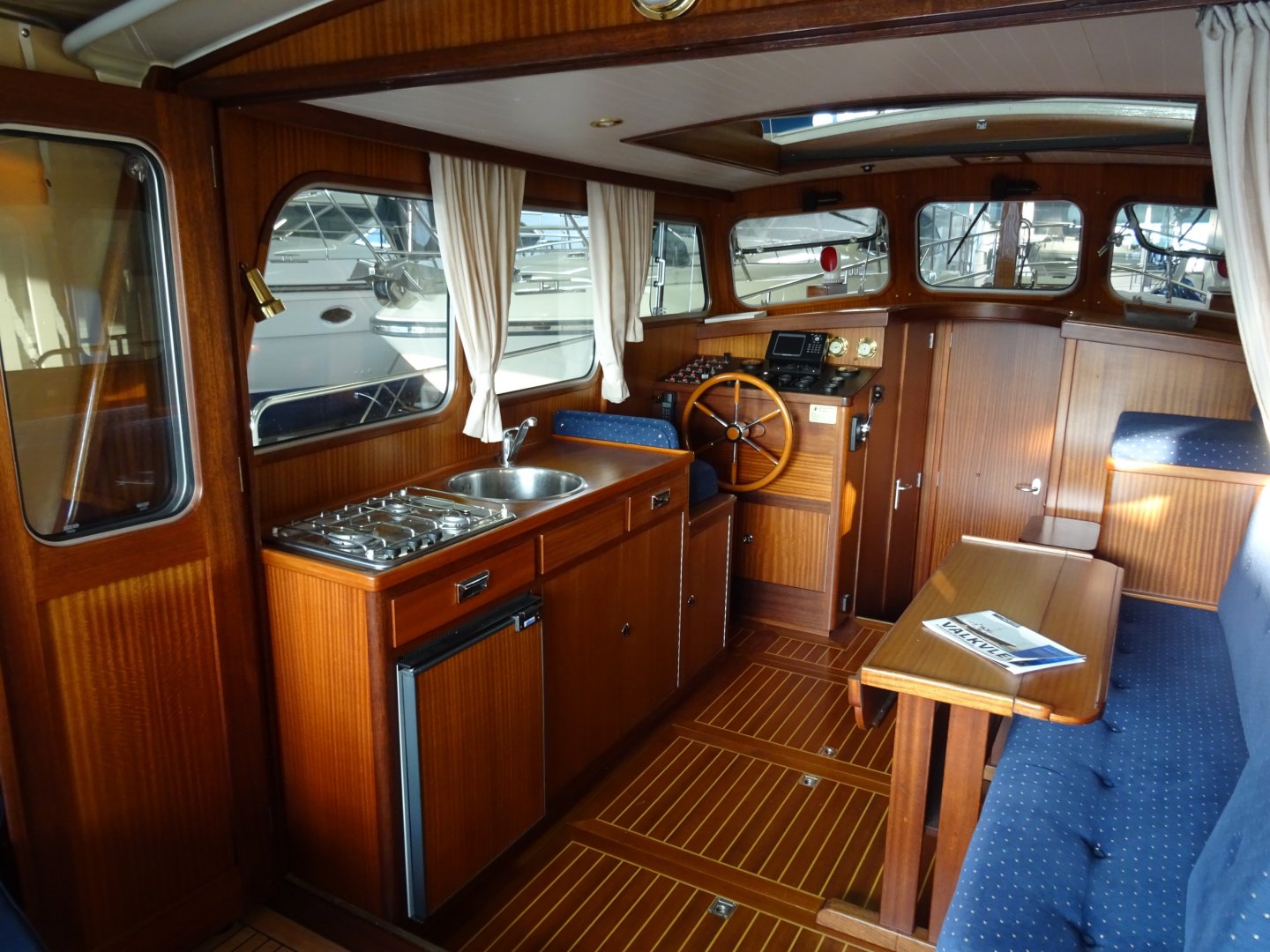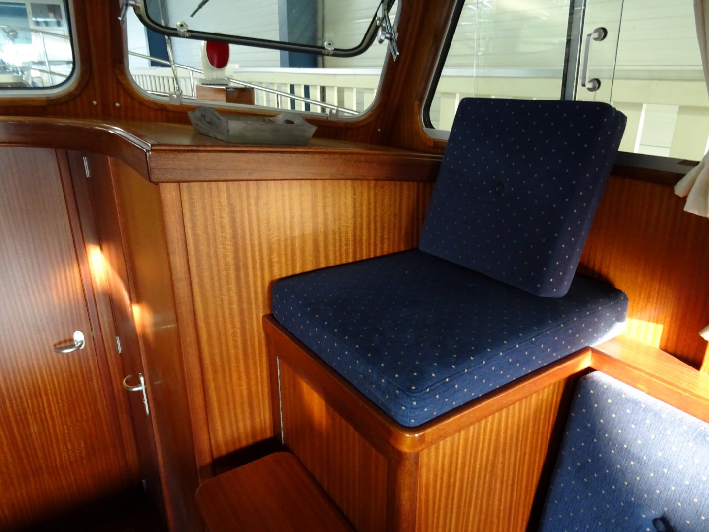 In uitstekende staat van onderhoud! Het interieur is als nieuw. Zeer praktische boot met een mooi klassiek uiterlijk en degelijke techniek. Onder andere uitgerust met; dubbele motorisolatie, groot salonluik, teak vloer in hele schip, kussenset in kuip, volledig teakdek, kaartplotter, meevaarzit, slaapbank in salon, separate douche en toilet, vergrote kimkielen, oliebad schroefassysteem, klapramen, boegschroef, teaklijst om achterste railing.