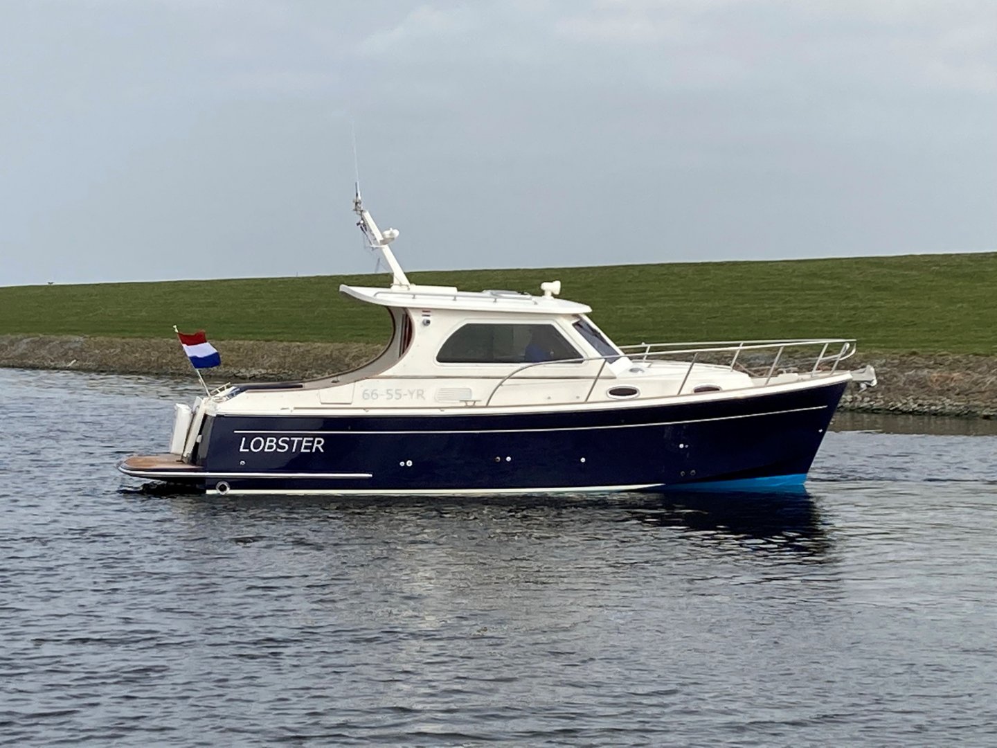 Deze zeer luxe uitgevoerde Lobster is werkelijk in uitmuntende staat van onderhoud. Onderhoudsvriendelijk, zeewaardig en snelvarend. Opmerkelijk is ook dat er 4 vaste slaapplaatsen zijn met nog 2 slaapmogelijkheden in de salon, voorzien van douche (binnen en in de kuip). Recent is het dek voorzien van onderhoudsvrij Flexiteak en nieuwe kaartplotter. De volledige onderhoudshistorie is bekend. In 2022 voorzien van veel vernieuwingen: volledig nieuwe bekleding, inclusief matrassen, nieuw toilet, antifouling, gepolijst en gewaxed, volle dieseltank, gehele motorservice, nieuwe stootwillen met hoezen, nieuwe vlaggenstok en vlag, gascertificaat, nieuwe motorkamerisolatie. Kortom de boot is klaar voor vertrek.
