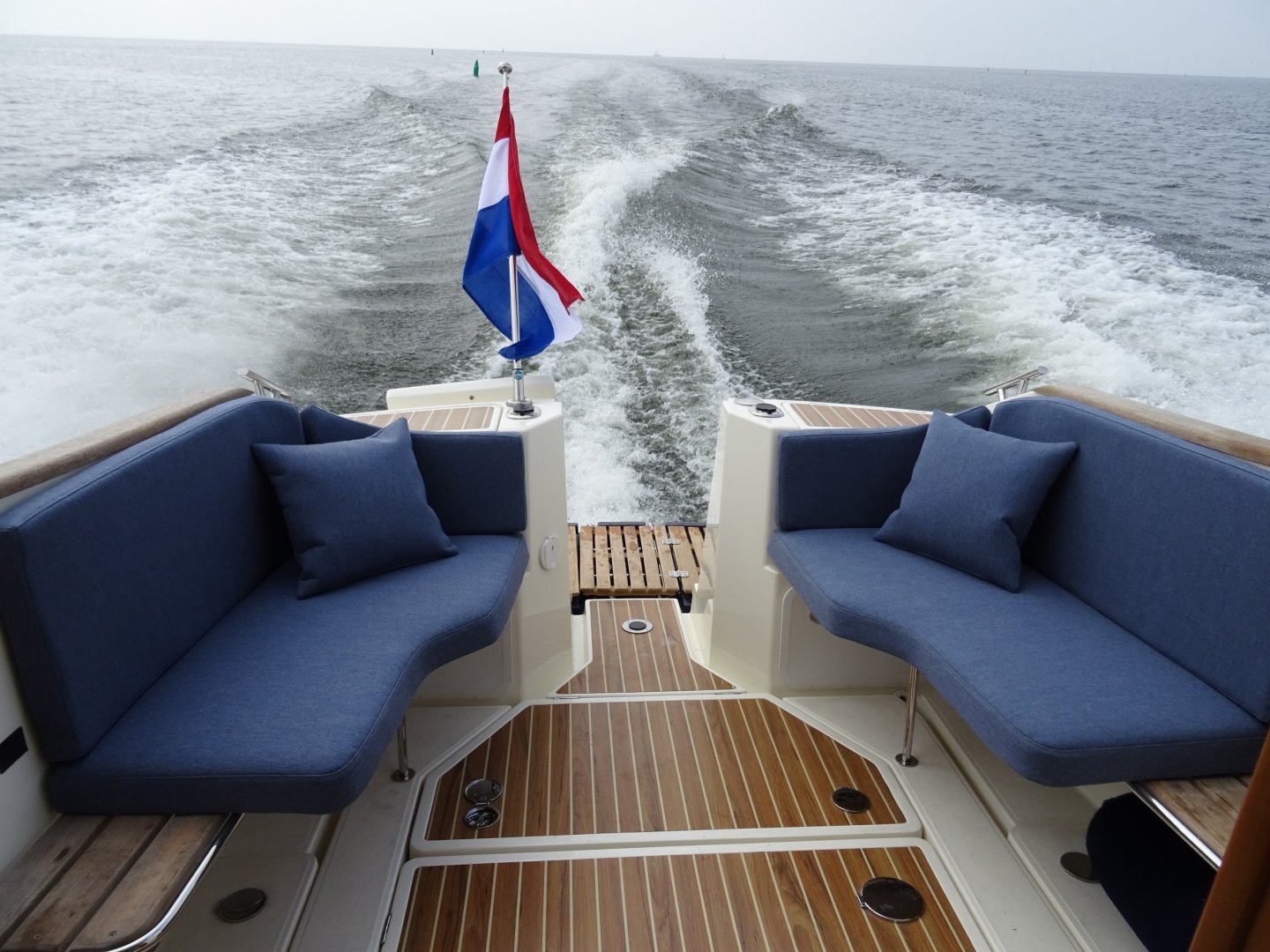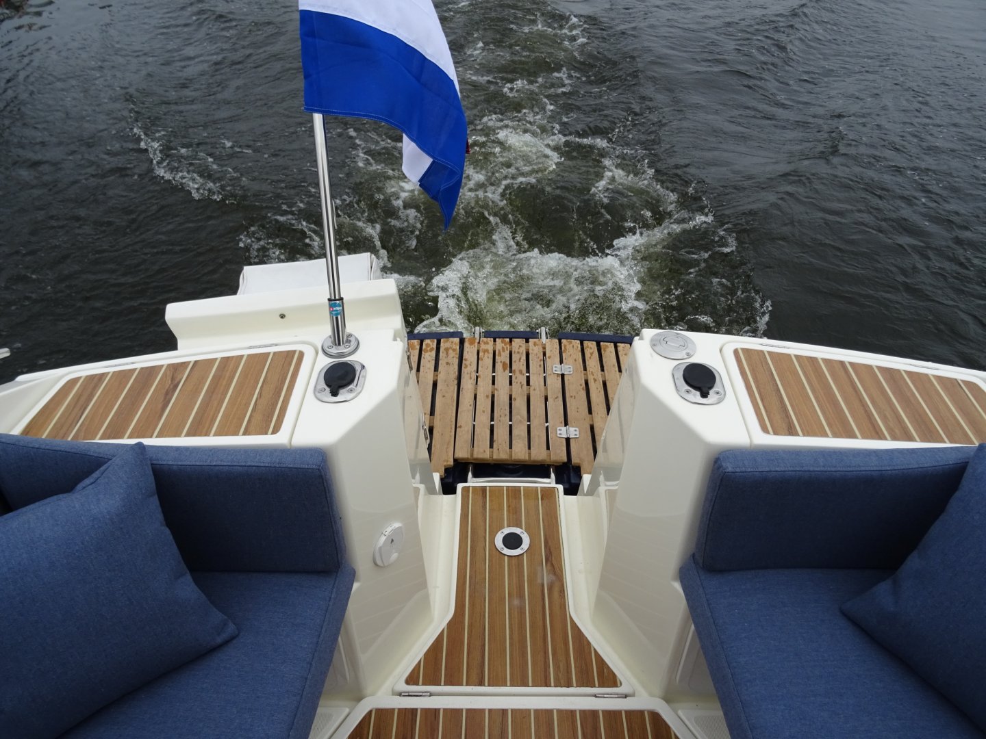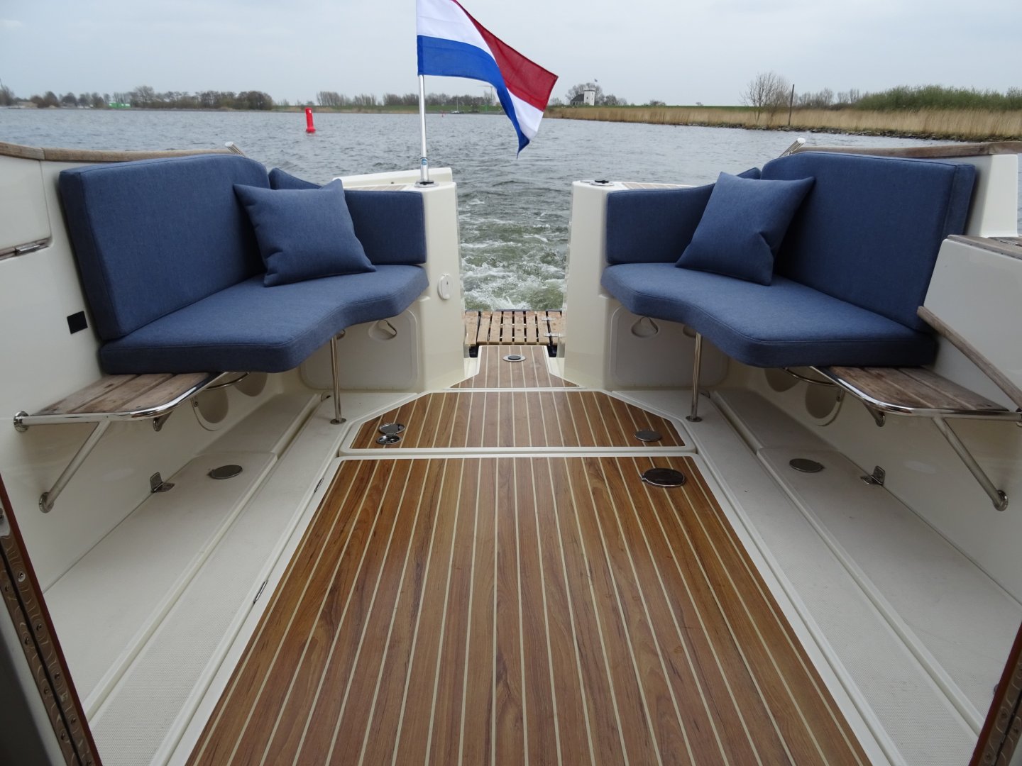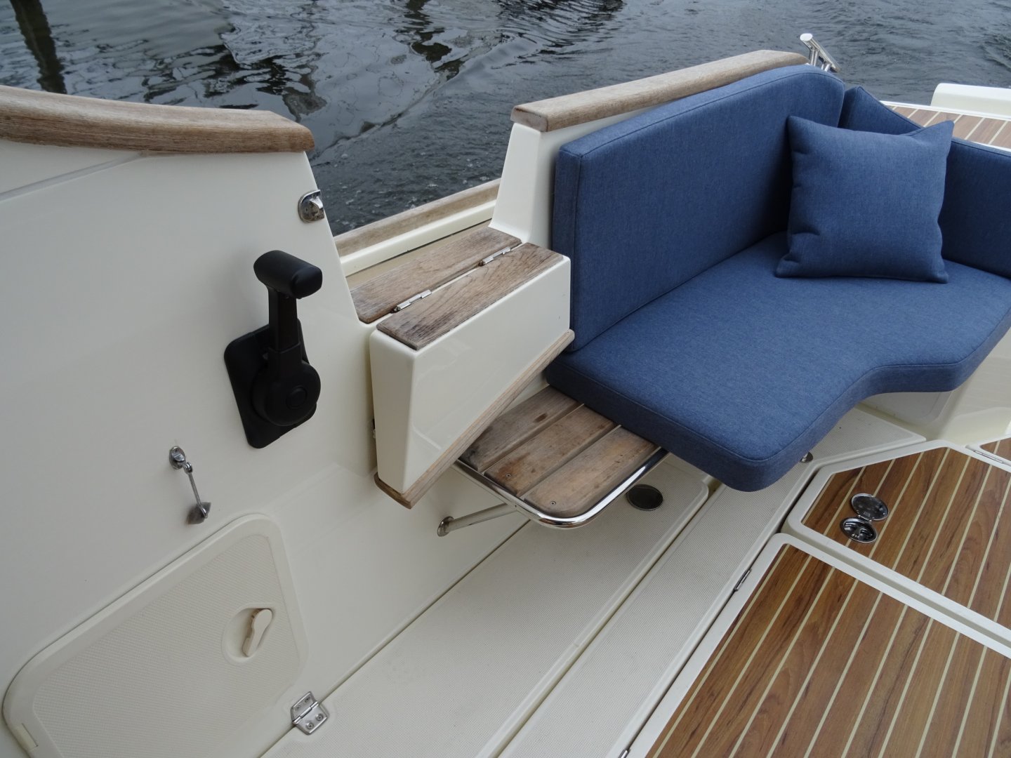 Onder andere uitgerust met: elektrische ankerlier, kuipdouche, kuiptent, kuipkussens, zij-instappen, zoeklamp, kuipdeur, dubbel brandstoffilter, stereo, ledverlichtting, AIS, radarreflector.