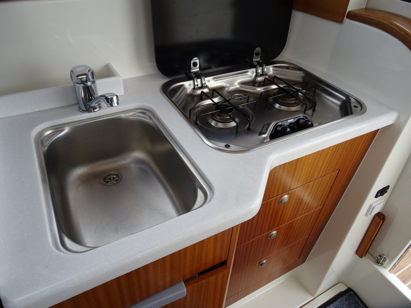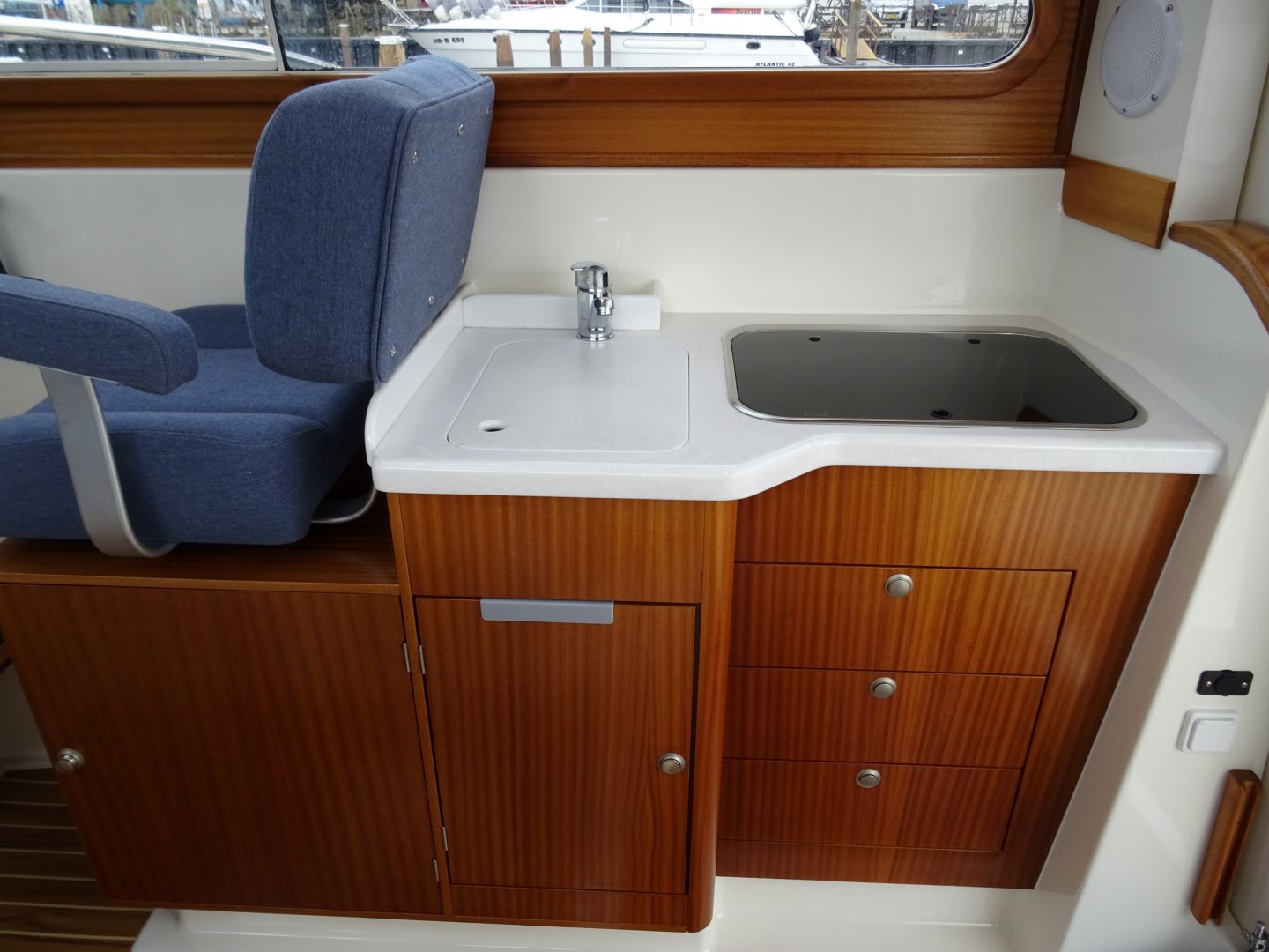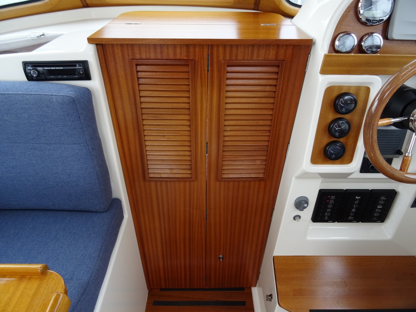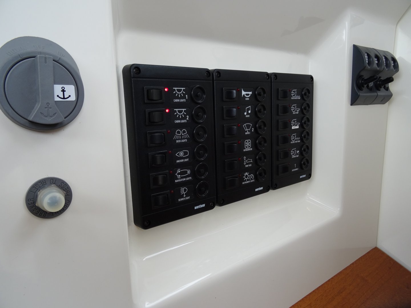Onder andere uitgerust met: elektrische ankerlier, kuipdouche, kuiptent, kuipkussens, zij-instappen, zoeklamp, kuipdeur, dubbel brandstoffilter, stereo, ledverlichtting, AIS, radarreflector.