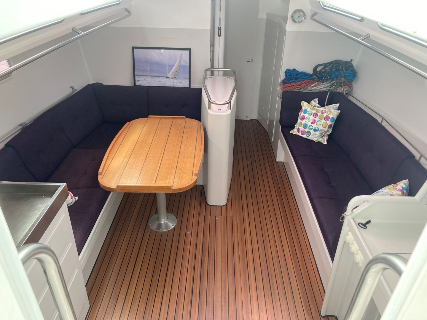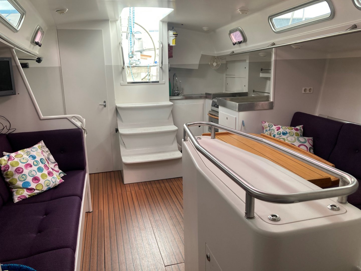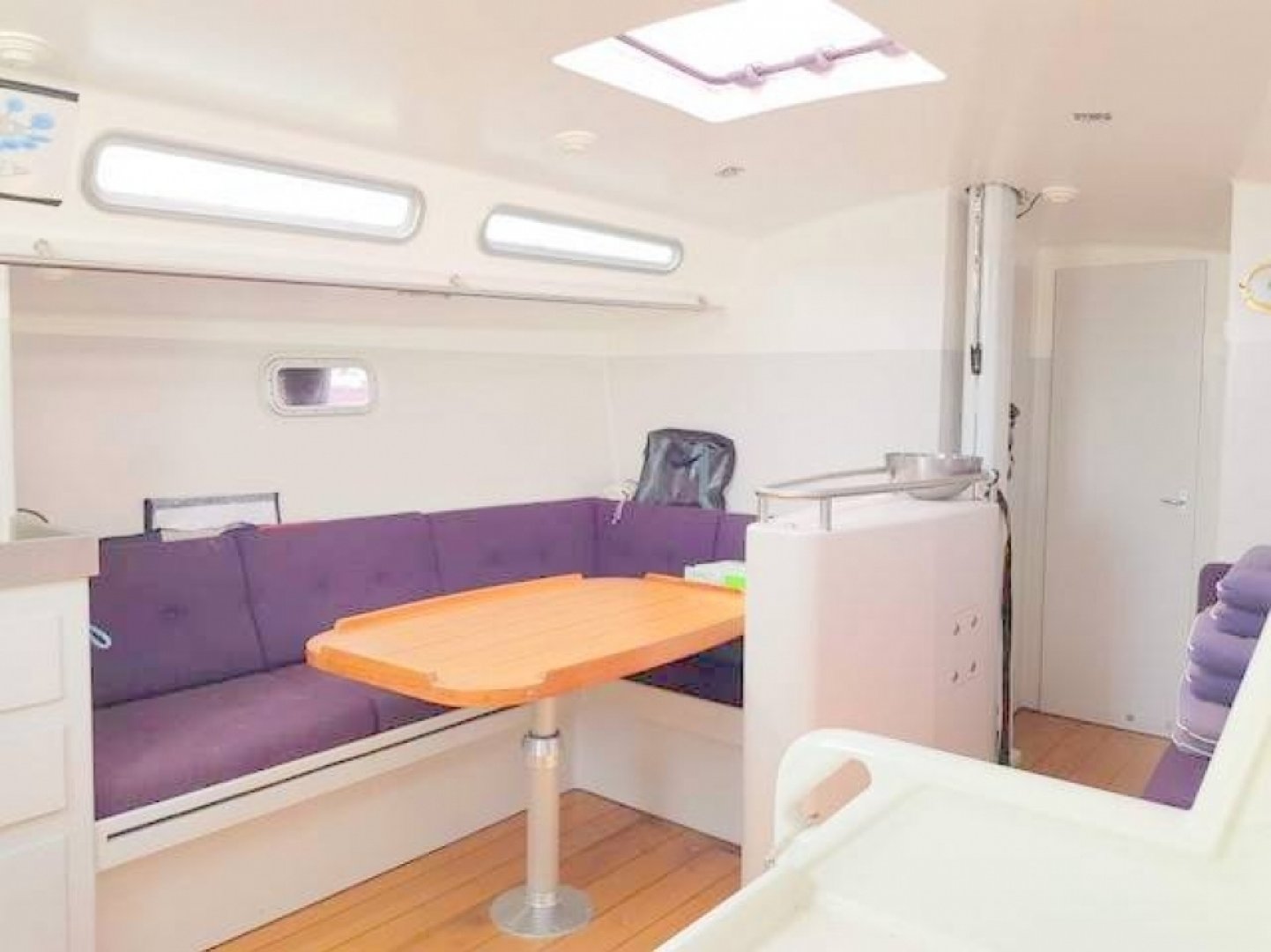 Dit composiet zeiljacht is ontworpen door de internationaal bekende Van der Stadt en gebouwd door Schaap Ship Care in Lelystad. Een werf die ook de bouw van 2 Volvo Ocean Race boten heeft verzorgd. Door het bouwmateriaal, woodcore epoxy, is de constructie zeer sterk en tegelijkertijd erg licht. De hydraulische hef kiel maakt een diepgang van 1.30 tot 2.40 mogelijk. In 2017 is het gehele schip gespoten in een 2 componenten verfsysteem. De uitgebreide zeilgarderobe is in goede conditie. U kunt competatief met de boot zeilen maar een lange reis is natuurlijk ook goed mogelijk. Het interieur is licht en modern en voorzien van alle gemakken.