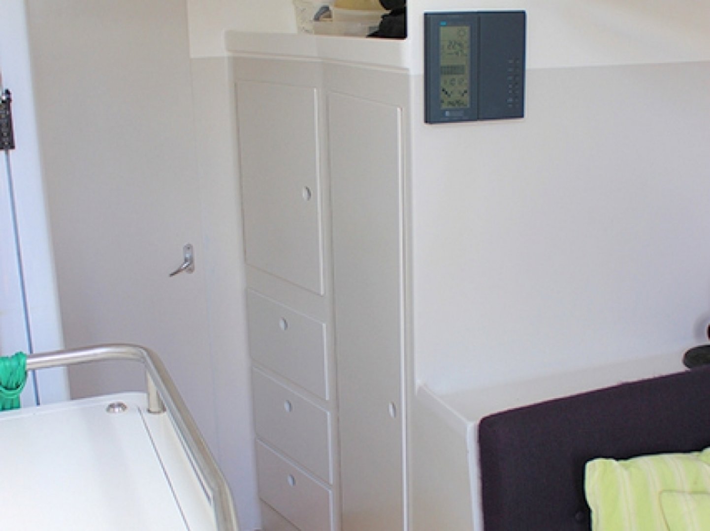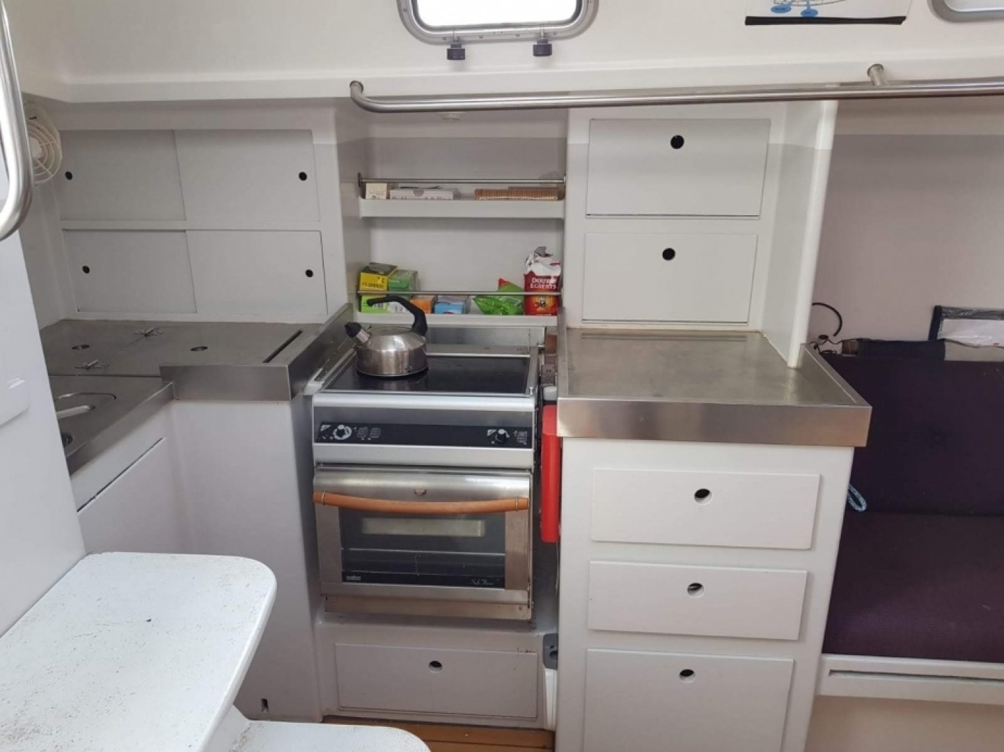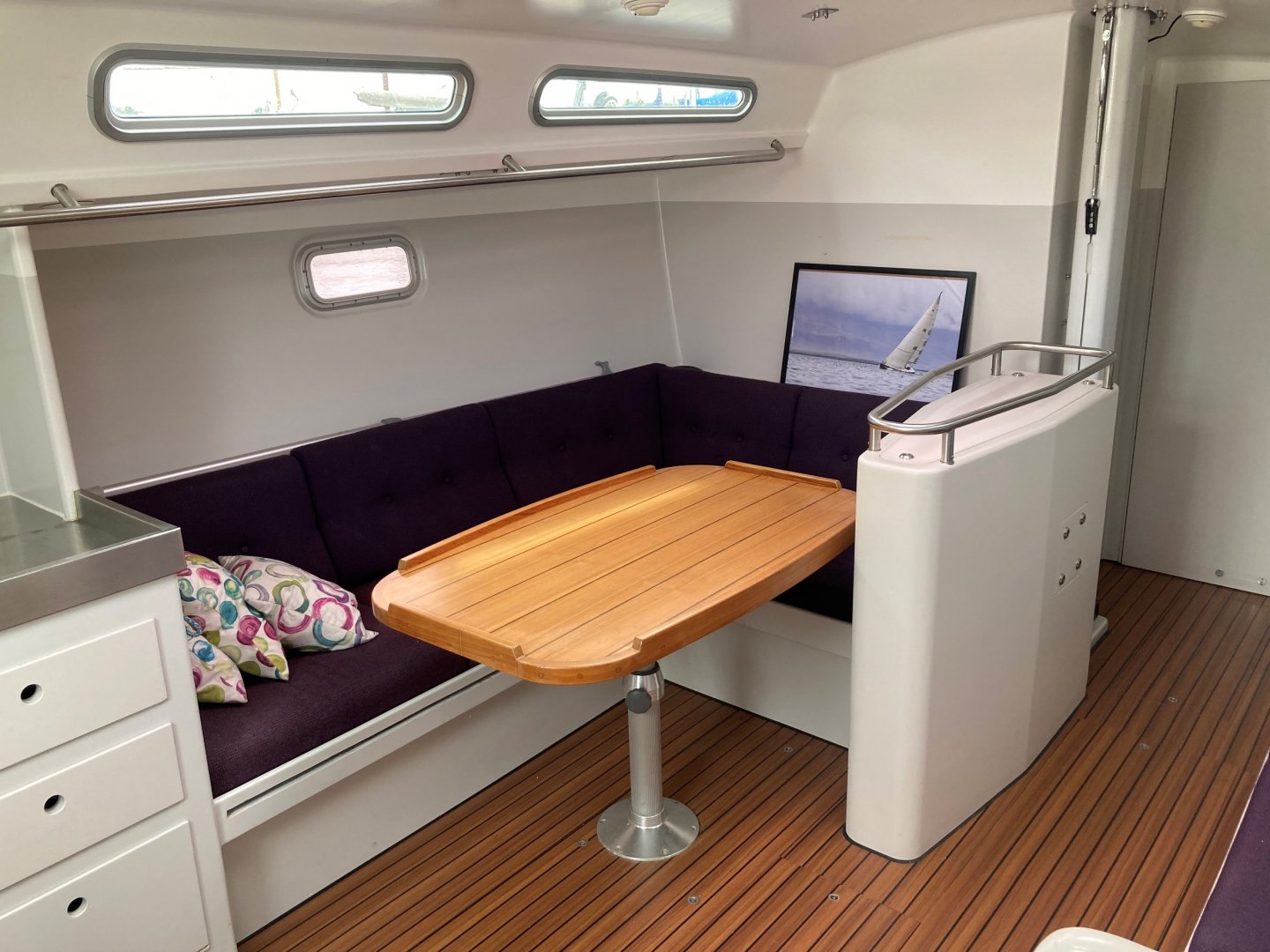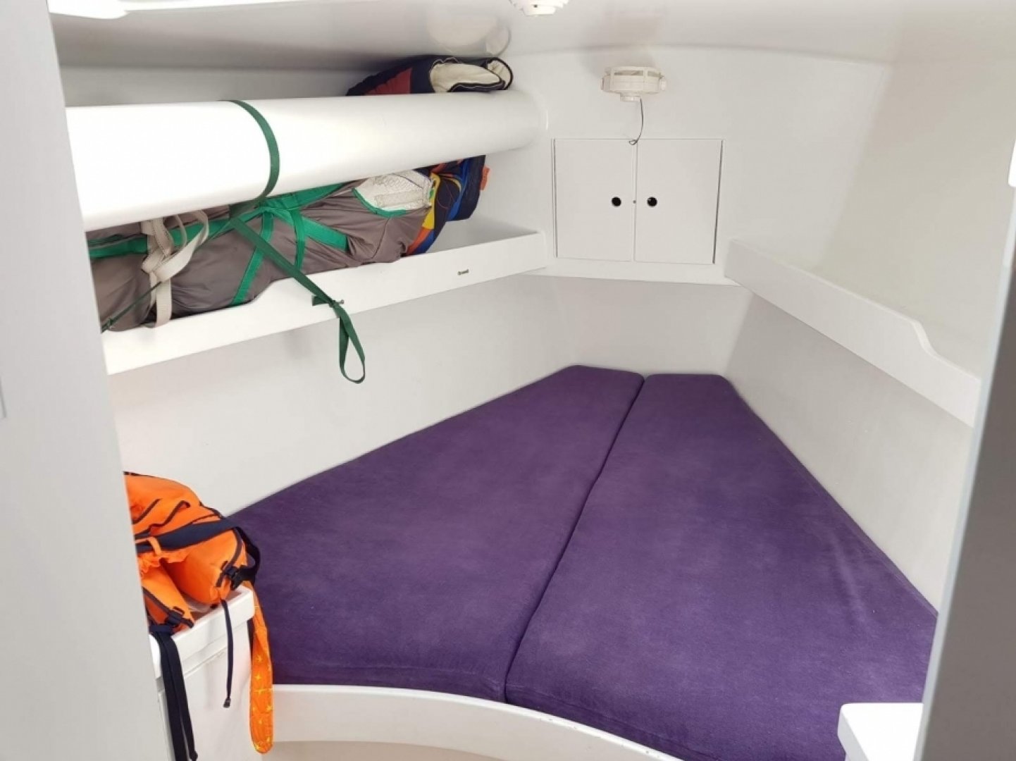 Dit composiet zeiljacht is ontworpen door de internationaal bekende Van der Stadt en gebouwd door Schaap Ship Care in Lelystad. Een werf die ook de bouw van 2 Volvo Ocean Race boten heeft verzorgd. Door het bouwmateriaal, woodcore epoxy, is de constructie zeer sterk en tegelijkertijd erg licht. De hydraulische hef kiel maakt een diepgang van 1.30 tot 2.40 mogelijk. In 2017 is het gehele schip gespoten in een 2 componenten verfsysteem. De uitgebreide zeilgarderobe is in goede conditie. U kunt competatief met de boot zeilen maar een lange reis is natuurlijk ook goed mogelijk. Het interieur is licht en modern en voorzien van alle gemakken.