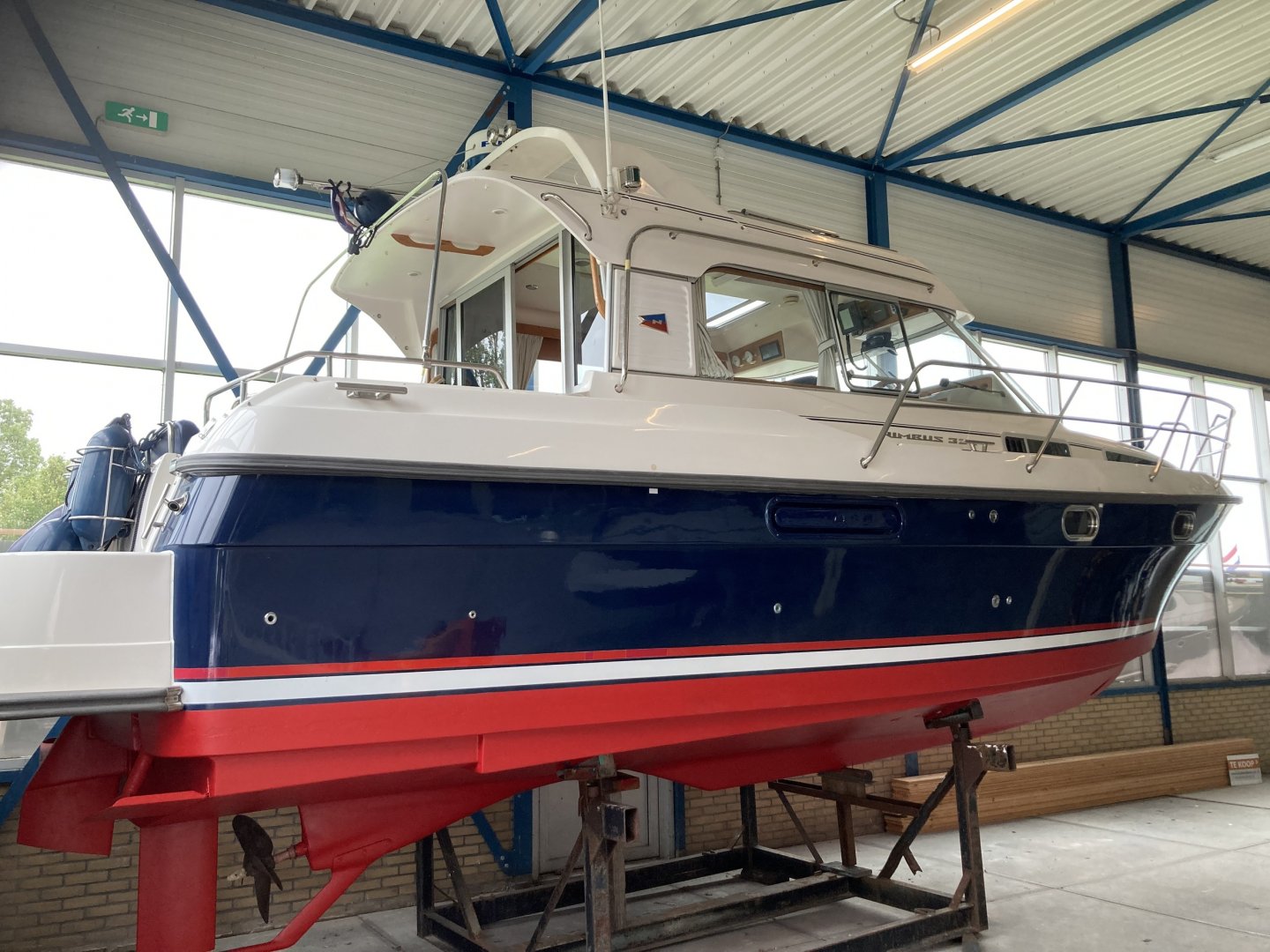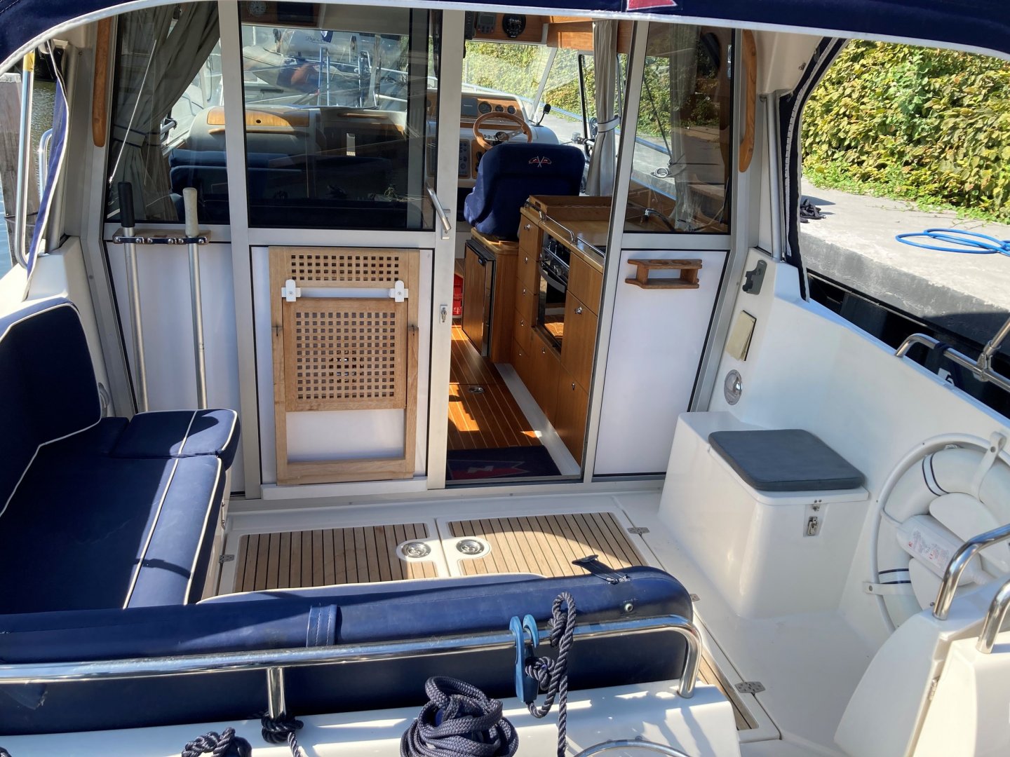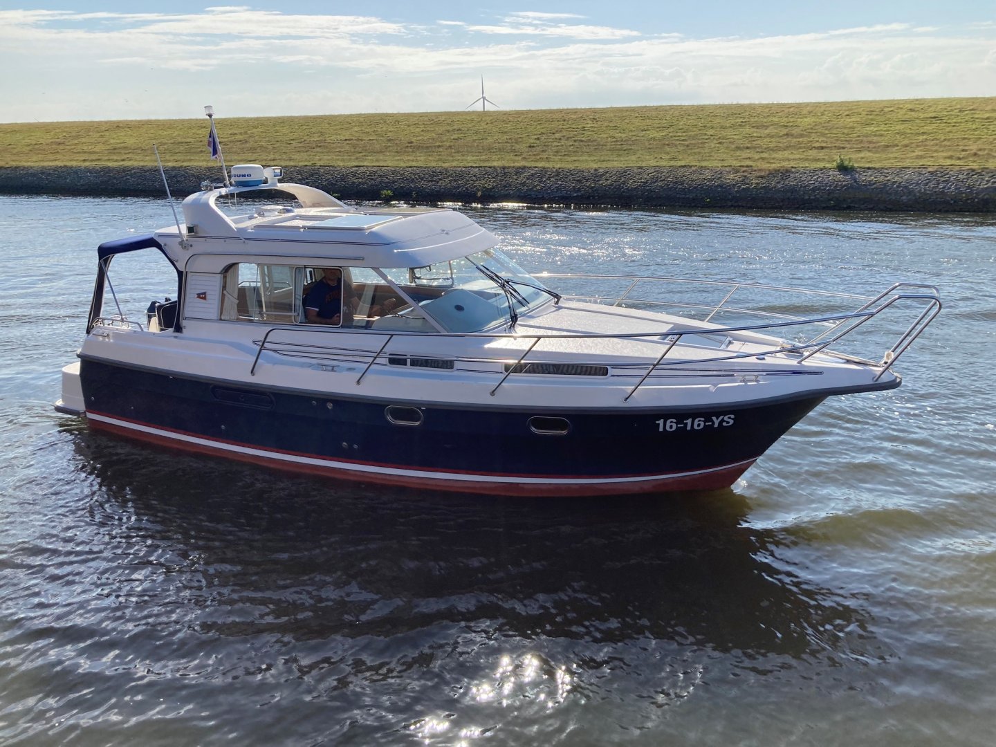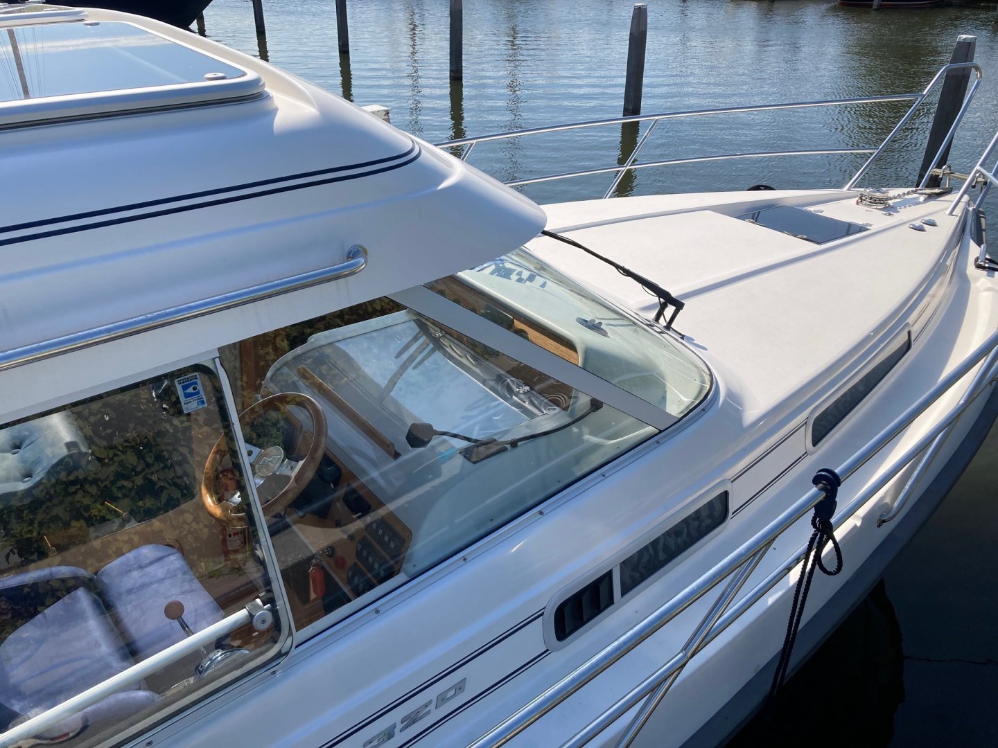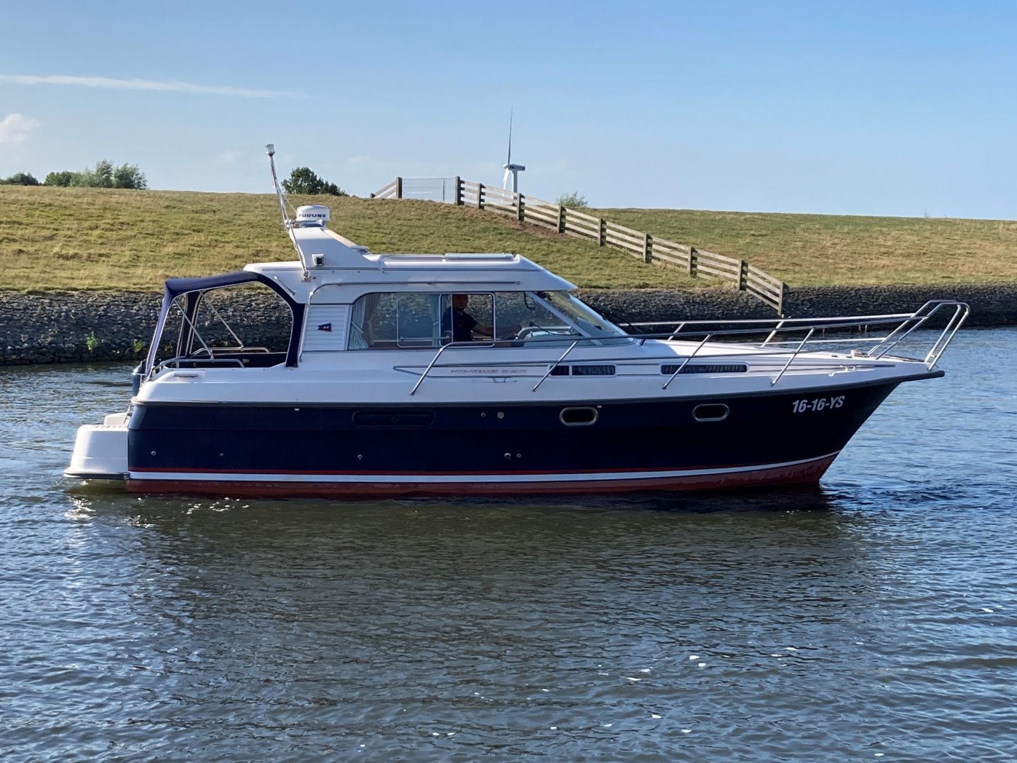 Keurig onderhouden Nimbus 320. Het zeewaardig model is geschikt voor ieder vaarwater. Royale hutten en een ruime kuip met toegangsdeur naar het zwemplateau. Onder ander uitgerust met: fenderkorfen, dingyhouder, teak in kuip en op het zwemplateau, kuipdouche, elektrische ankerlier, ruitenwissers met sproeier, boegopstap, zoeklicht, autopiloot met afstandsbediening, radar, boegschroef, boiler, dubbele railing, recente kuiptent. Nieuwe verwarming 2022, nieuwe ankerlier 2021, nieuwe kuiptent 2021, nieuwe stuurstoel 2022, gepoetst 2022.