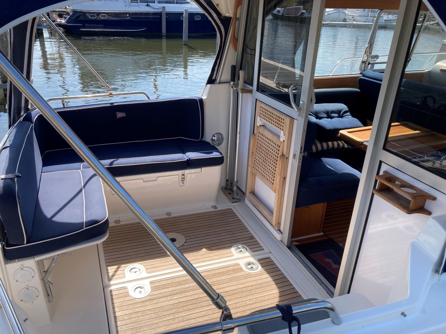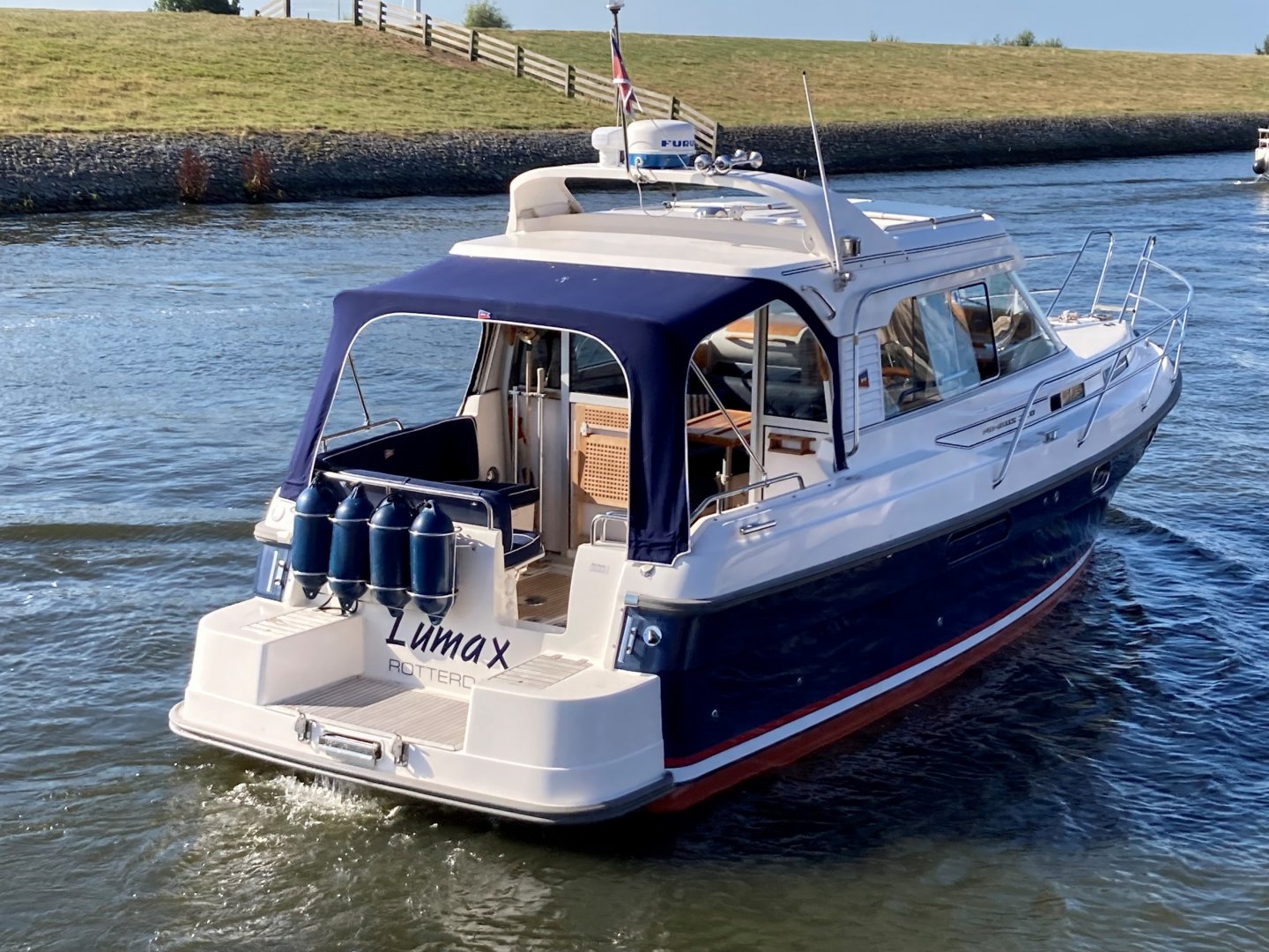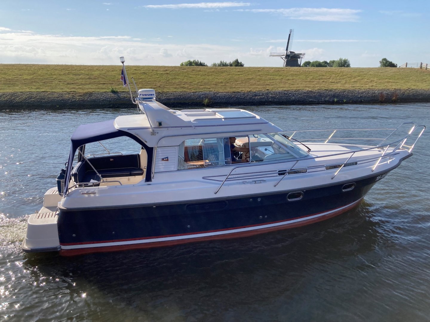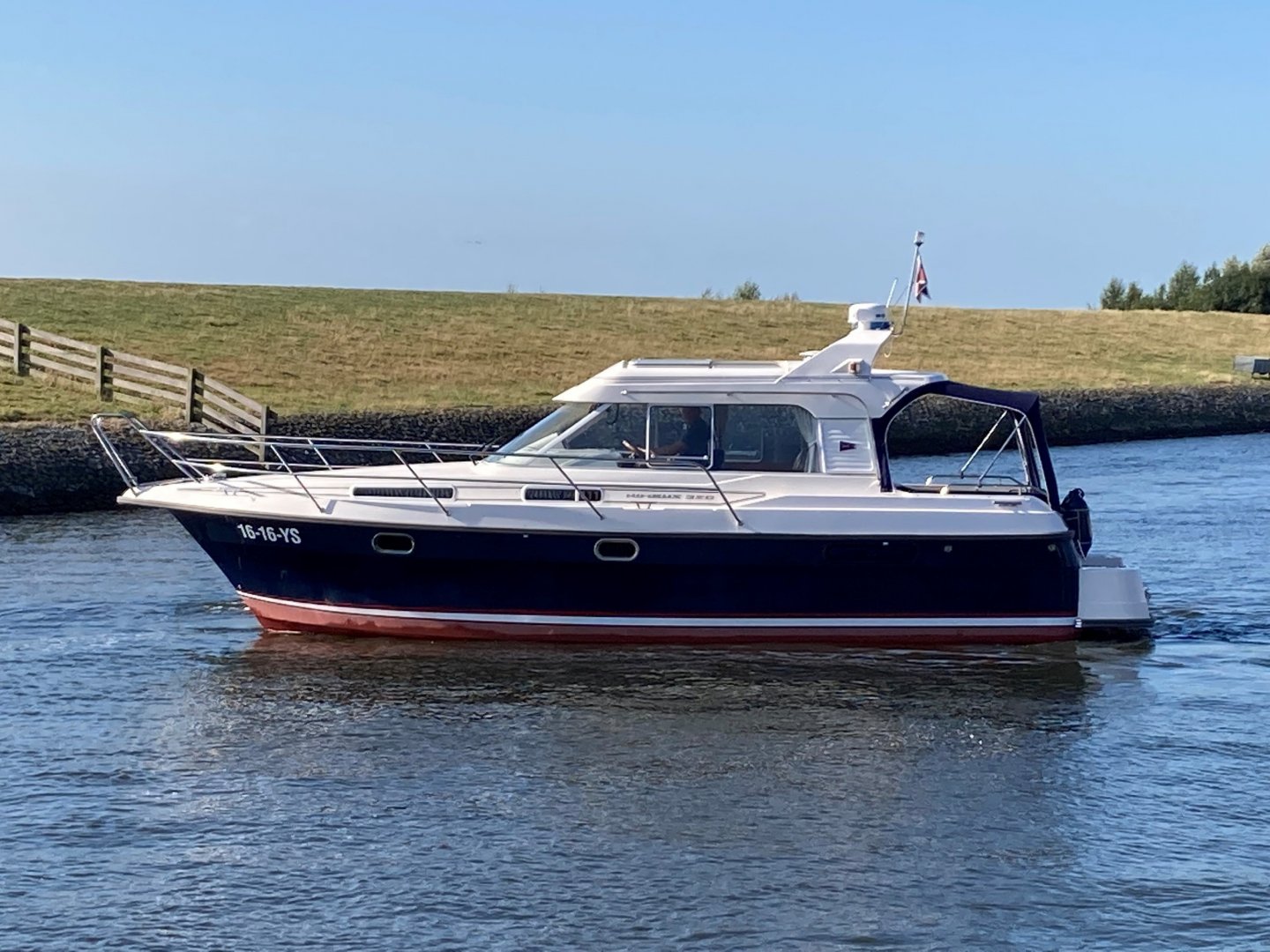 Keurig onderhouden Nimbus 320. Zojuist voorzien van nieuwe bekleding en verse antifouling. Het zeewaardig model is geschikt voor ieder vaarwater. Royale hutten en een ruime kuip met toegangsdeur naar het zwemplateau. Onder ander uitgerust met: fenderkorfen, dingyhouder, teak in kuip en op het zwemplateau, kuipdouche, elektrische ankerlier, ruitenwissers met sproeier, boegopstap, zoeklicht, autopiloot met afstandsbediening, radar, boegschroef, boiler, dubbele railing, recente kuiptent. Nieuwe verwarming 2022, nieuwe ankerlier 2021, nieuwe kuiptent 2021, nieuwe stuurstoel 2022, gepoetst 2022.