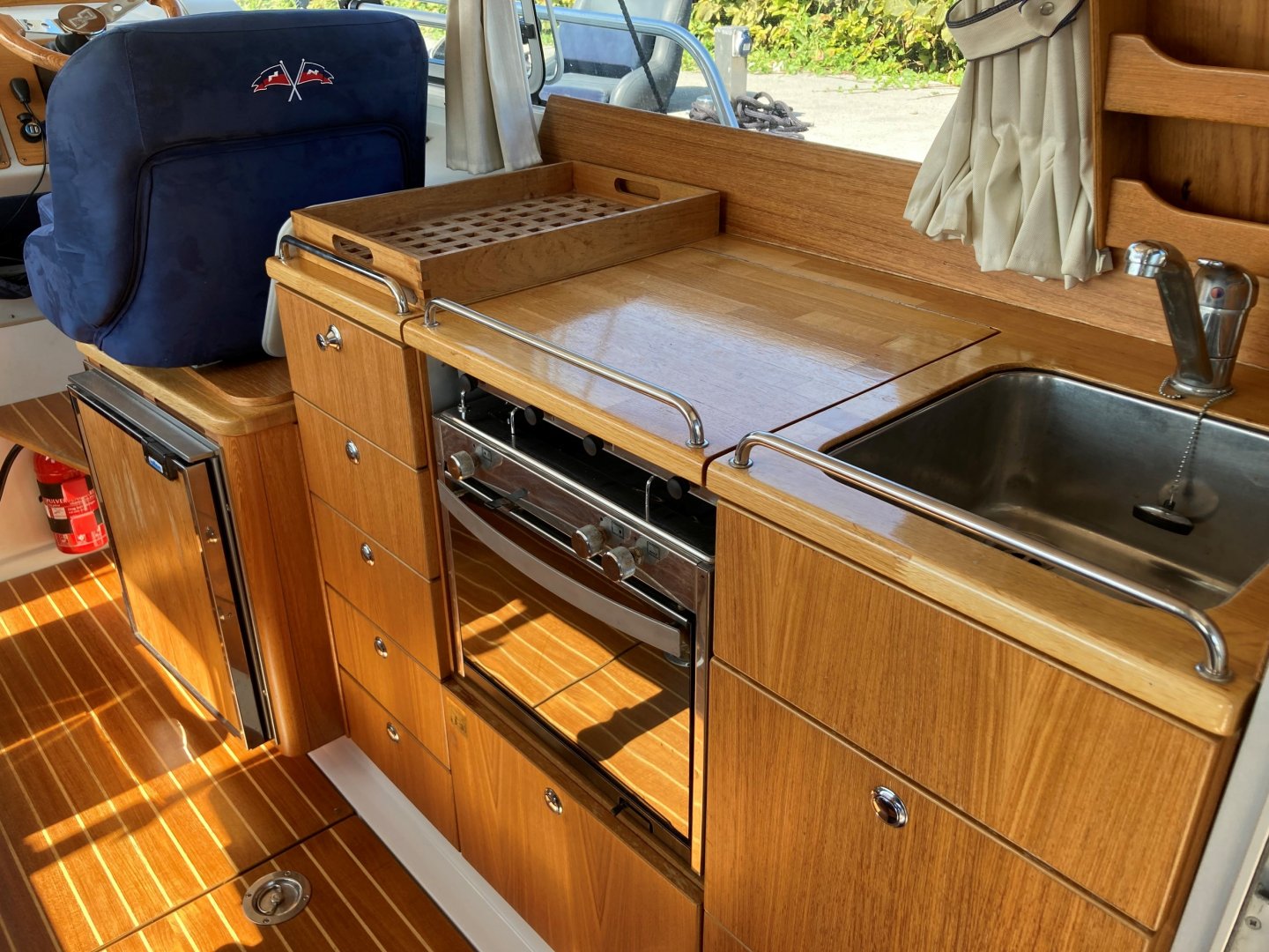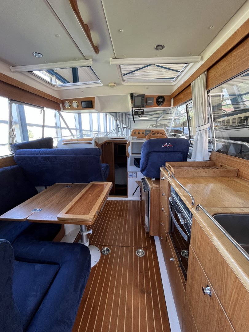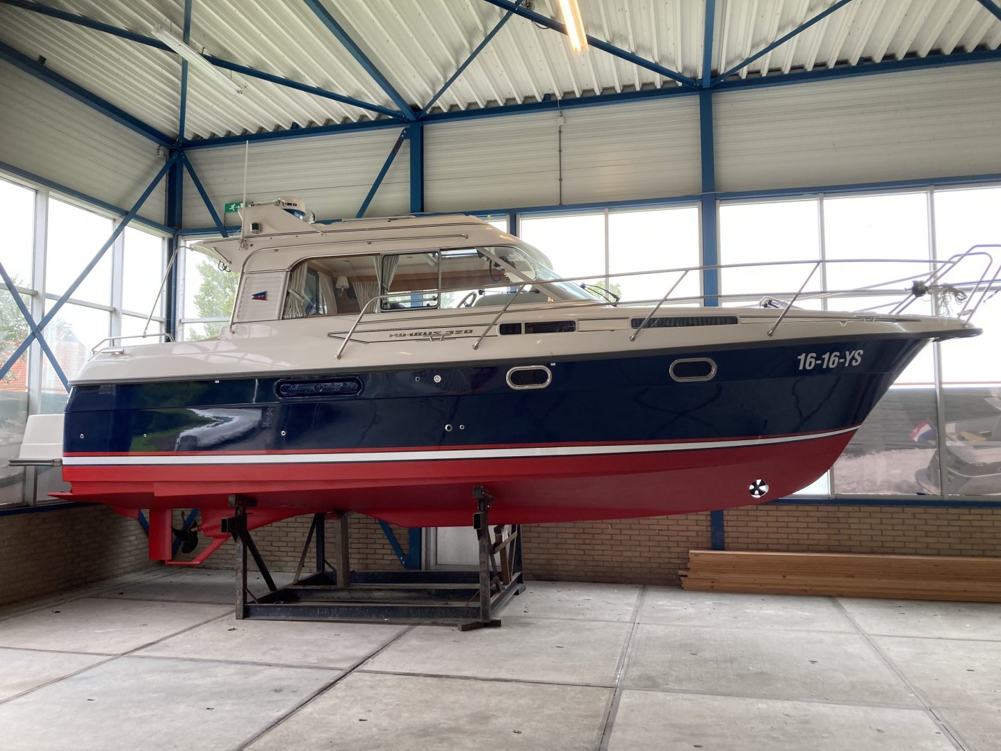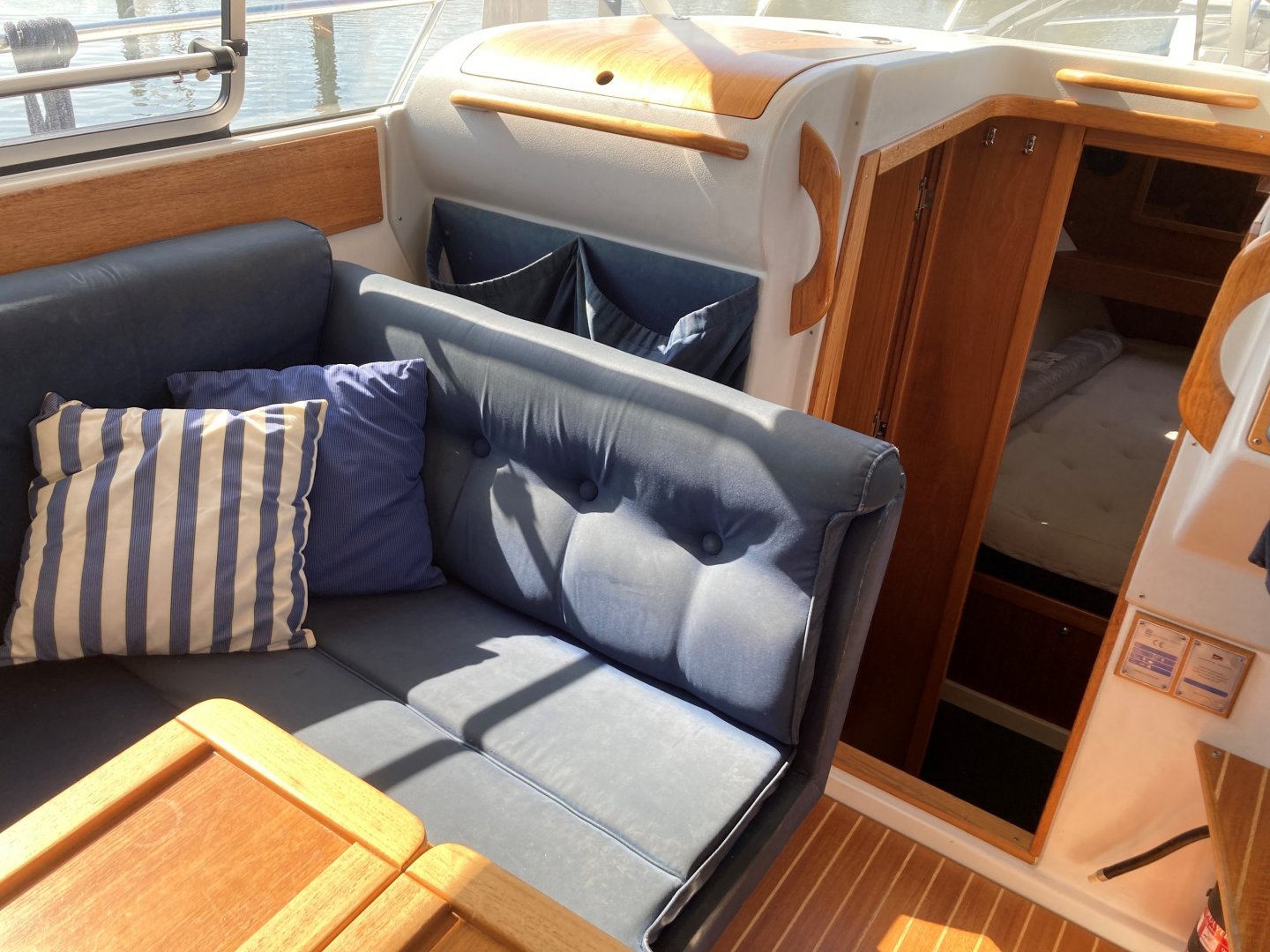 Keurig onderhouden Nimbus 320. Zojuist voorzien van nieuwe bekleding en verse antifouling. Het zeewaardig model is geschikt voor ieder vaarwater. Royale hutten en een ruime kuip met toegangsdeur naar het zwemplateau. Onder ander uitgerust met: fenderkorfen, dingyhouder, teak in kuip en op het zwemplateau, kuipdouche, elektrische ankerlier, ruitenwissers met sproeier, boegopstap, zoeklicht, autopiloot met afstandsbediening, radar, boegschroef, boiler, dubbele railing, recente kuiptent. Nieuwe verwarming 2022, nieuwe ankerlier 2021, nieuwe kuiptent 2021, nieuwe stuurstoel 2022, gepoetst 2022.
