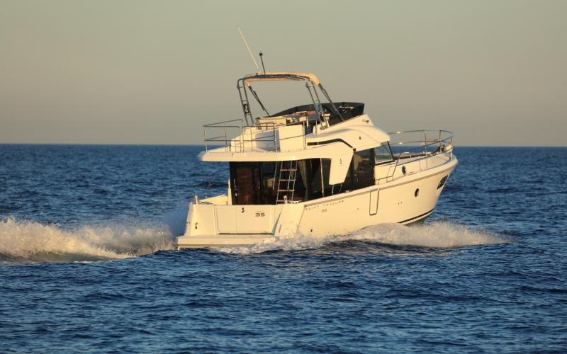 De Beneteau Swift Trawler 35 is ontworpen voor lange tochten, met een ruime actieradius en stabiele vaareigenschappen, ook bij ruwere omstandigheden. De semi-planerende romp biedt een comfortabele vaart, met een kruissnelheid van ca. 15 knopen en topsnelheid tot 20 knopen. Dankzij de complete uitrusting (boeg- en hekschroef) is manoeuvreren kinderspel, zelfs in drukke havens of bij harde wind.