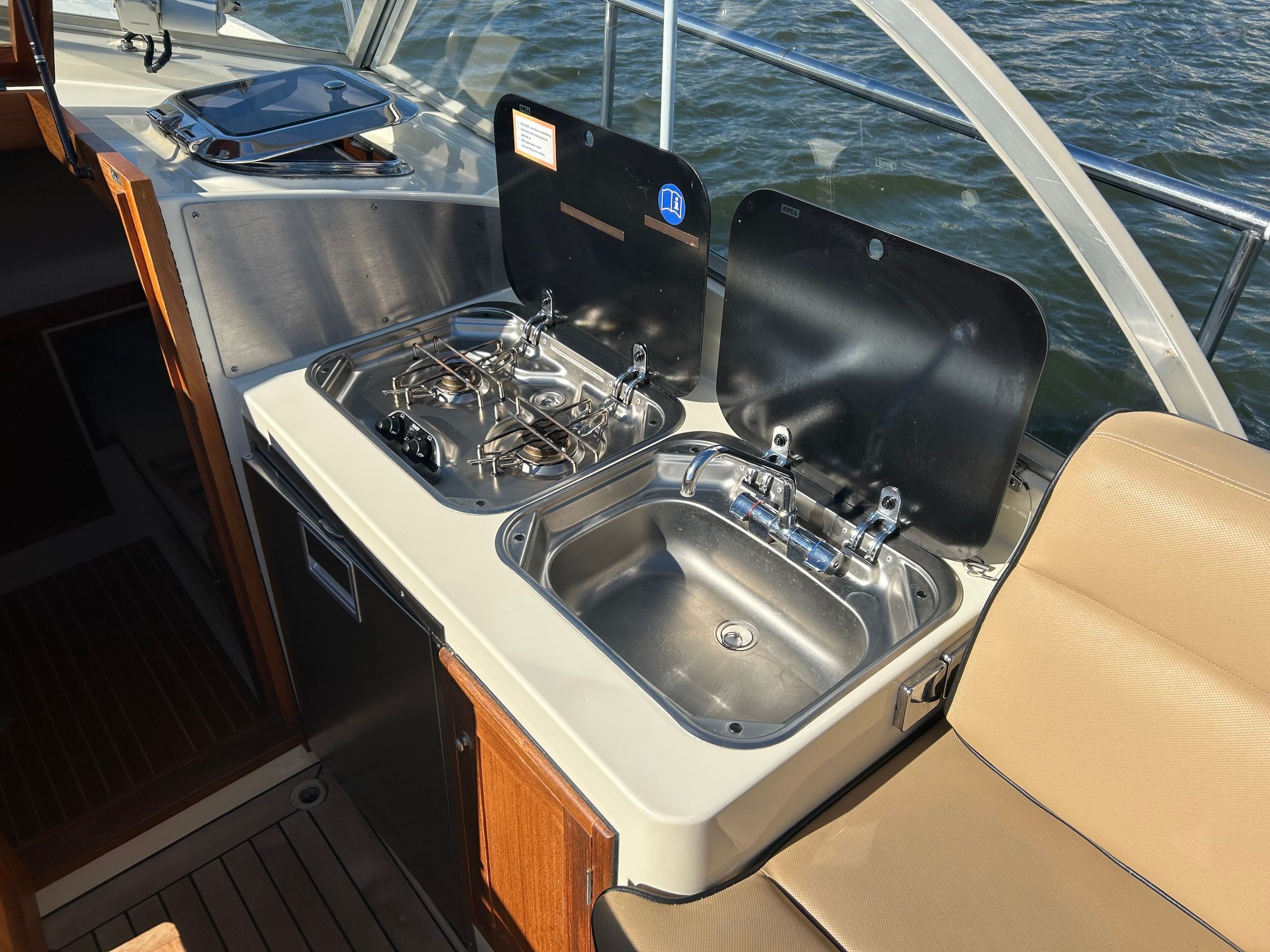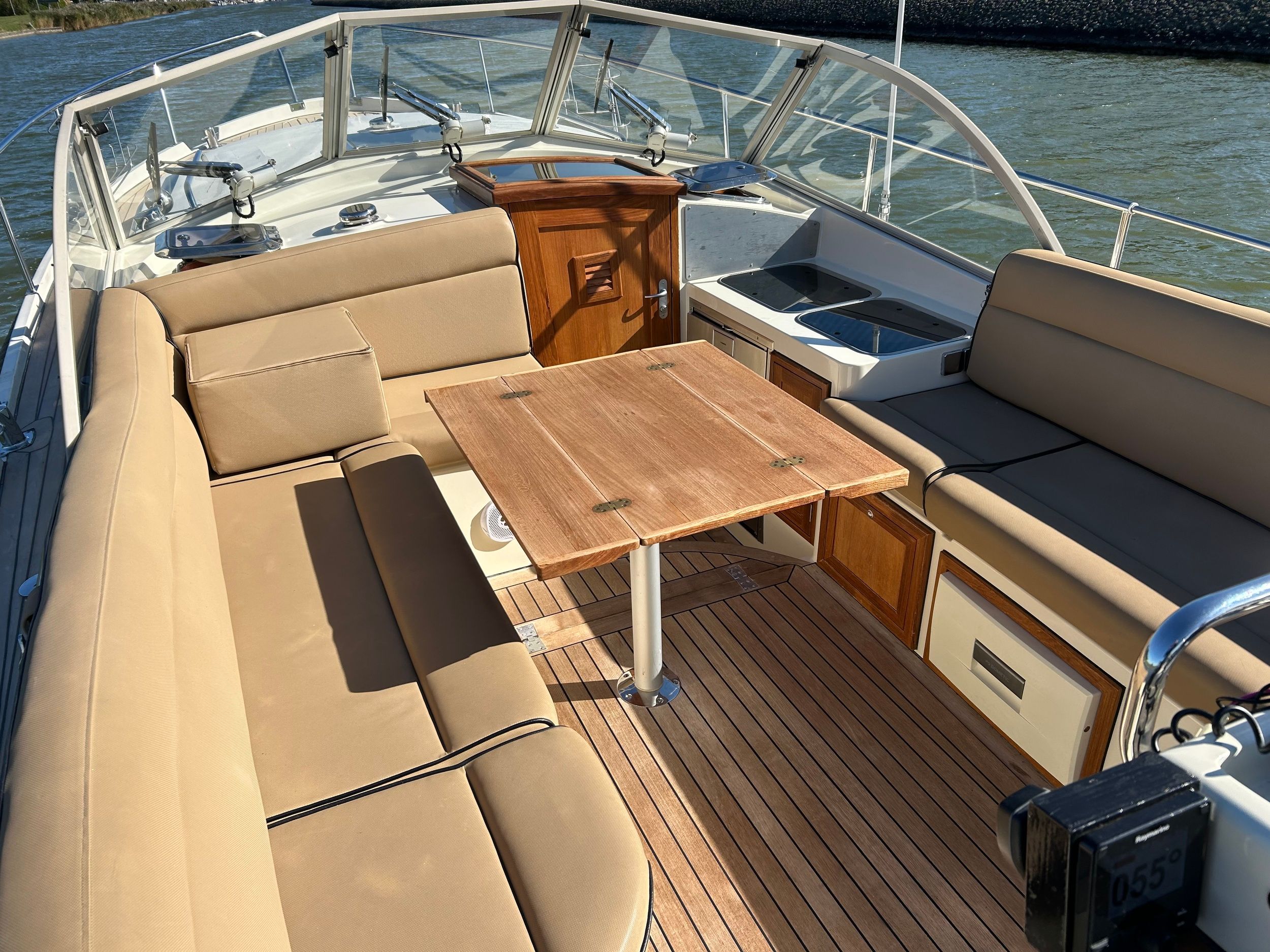Het jacht is van de eerste eigenaar. Door de inbouw van boeg- en hekschroef is het gemakkelijk aanmeren. Voorzien van vele opties waaronder: massief gelegd teakdek rondom in kuip en op zwemplatform, vaste rvs railing met fenderkorfen en zij-instap, kuipdouche, kuipverlichting, sfeerverlichting in kuip, wetbar met 2 pits kookstel en koelkast, vaste raampartij met ruitenwissers, kuipspeakers, teakhouten kuiptafel, ankerlier, Eberspächer heteluchtverwarming, elektrisch toilet, rvs sierstrip rondom, teaklijst rondom de kabelaring, omschakerbaar dubbele brandstoffilters, kuiptent met uitneembare delen (2020), bimini, extra klampen voor fenders, brandstoftanks prefentief gereiningd in 2021, de onderwaterschip coating is in 2021 geheel verwijderd en opnieuw aangebracht.