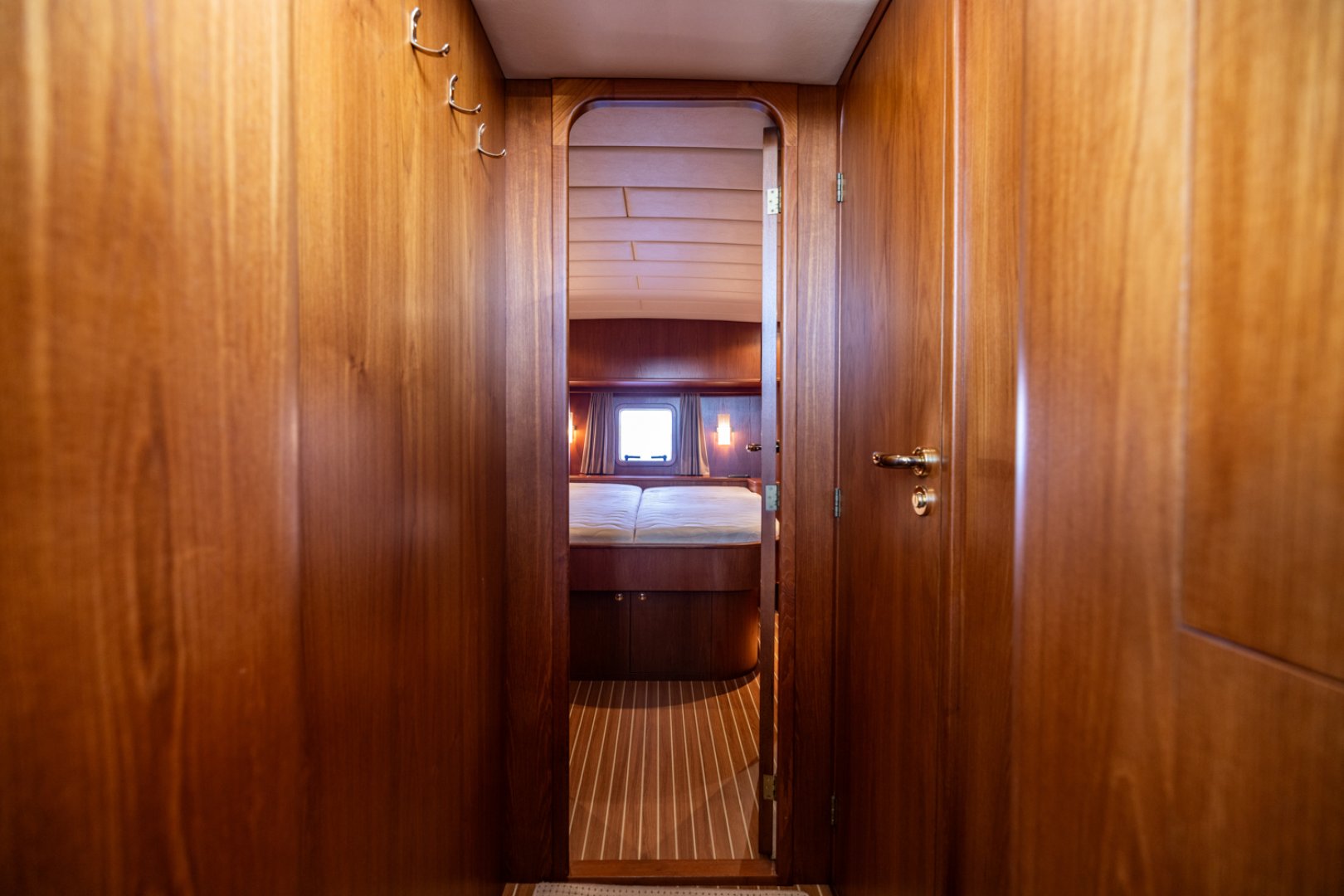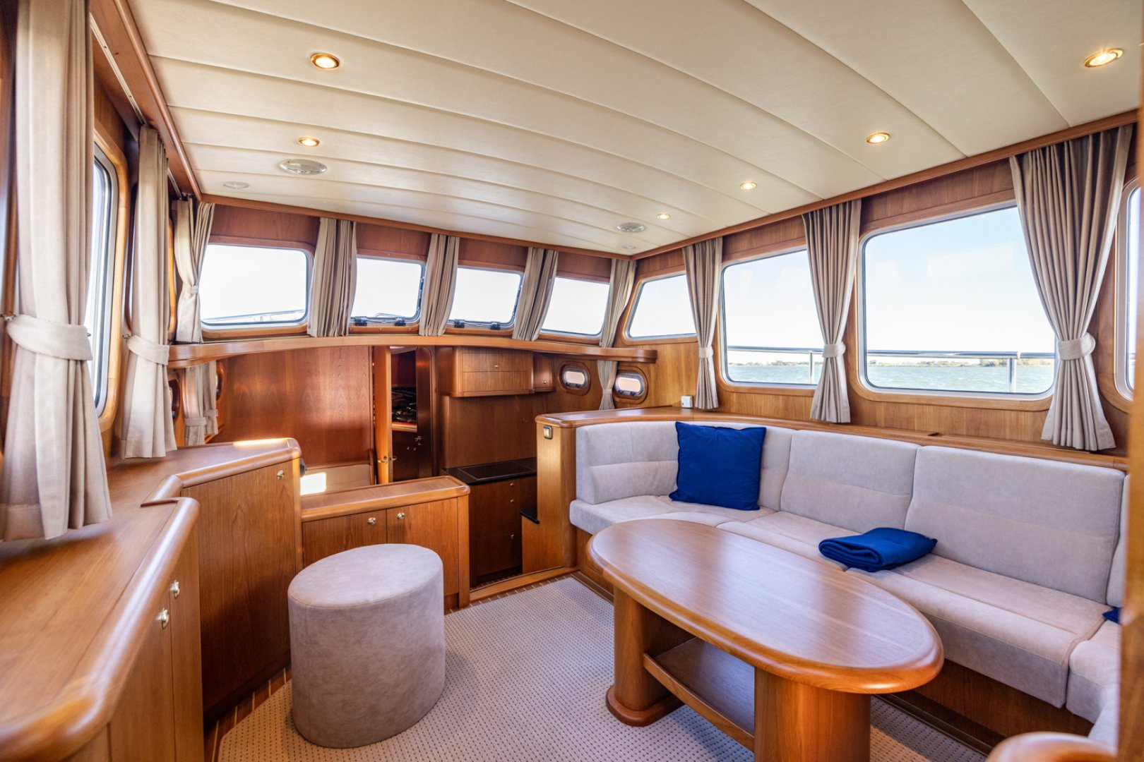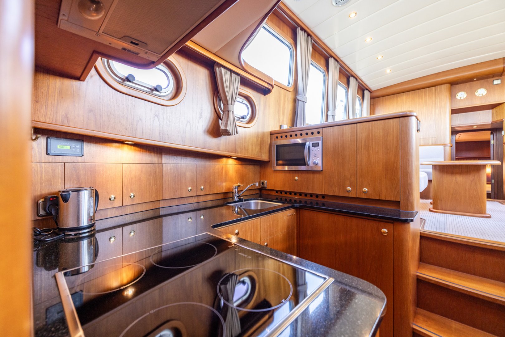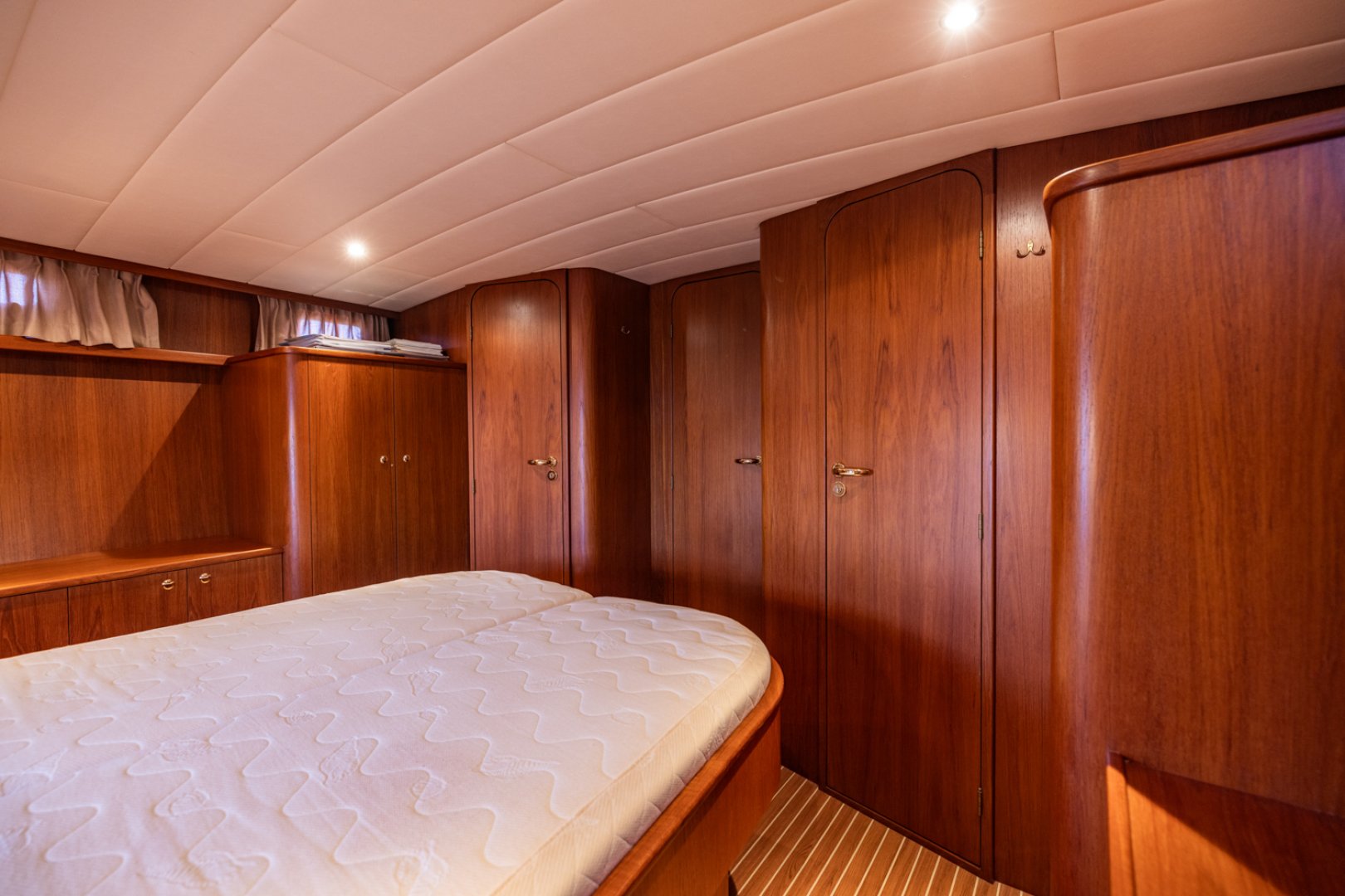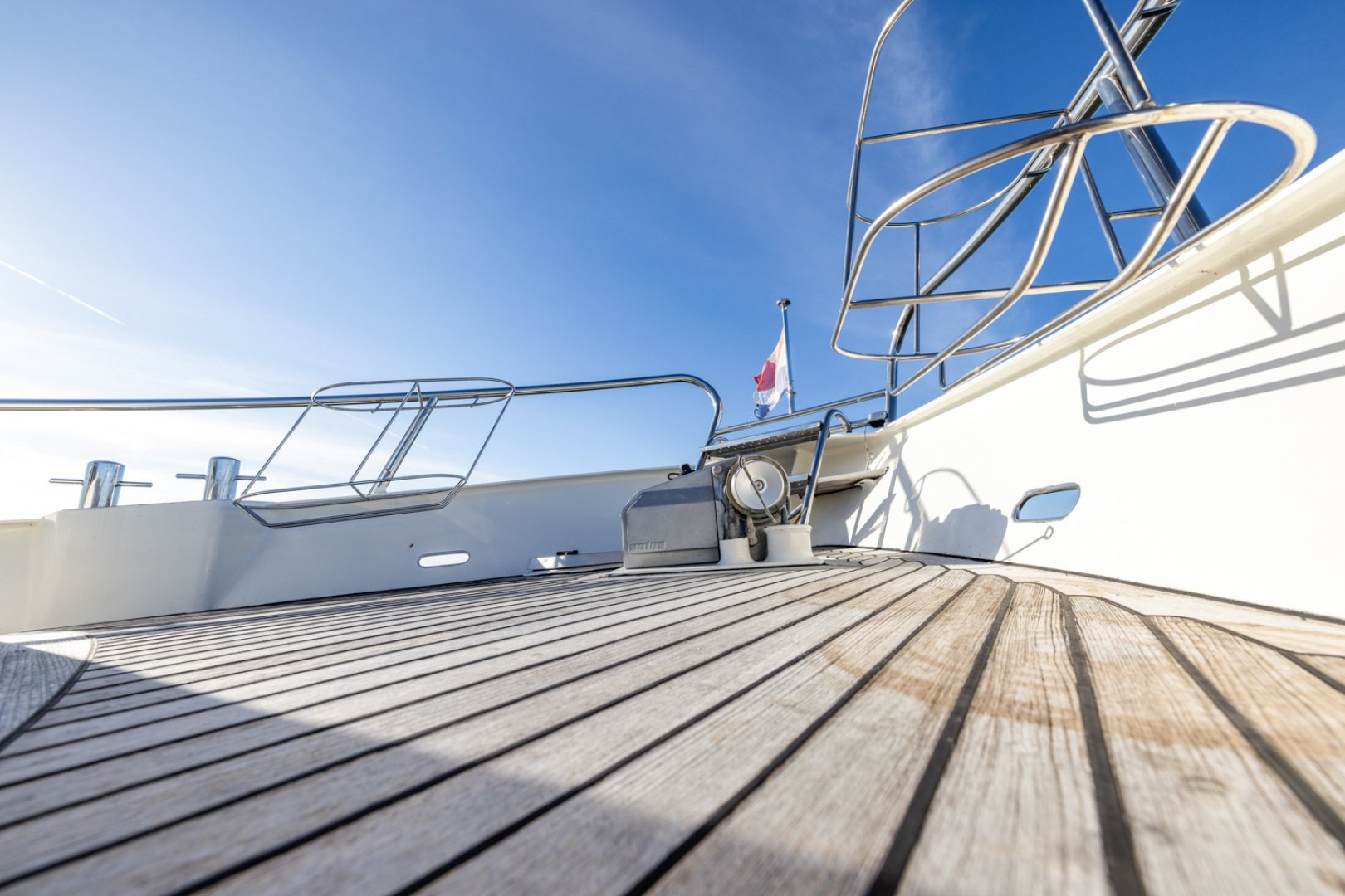 Het jacht is goed onderhouden en er zijn veel vernieuwingen aangebracht de laatste jaren. Aan de buitenzijde en het interieur ziet u veel fraaie details. Een teakhouten interieur met luxe lijstwerk en graniet bladen in keuken en natte cellen.