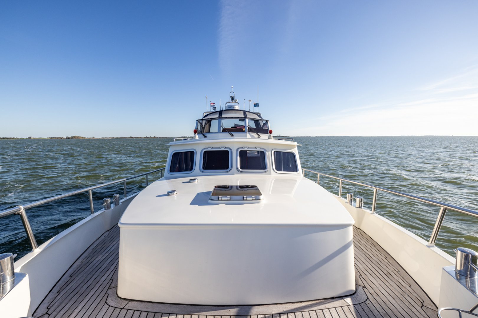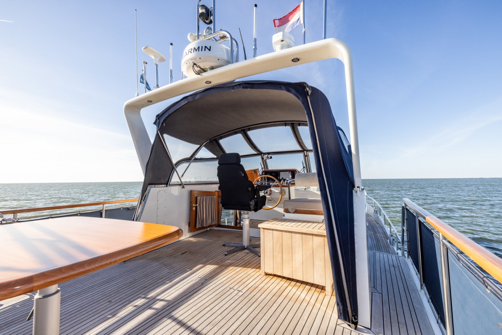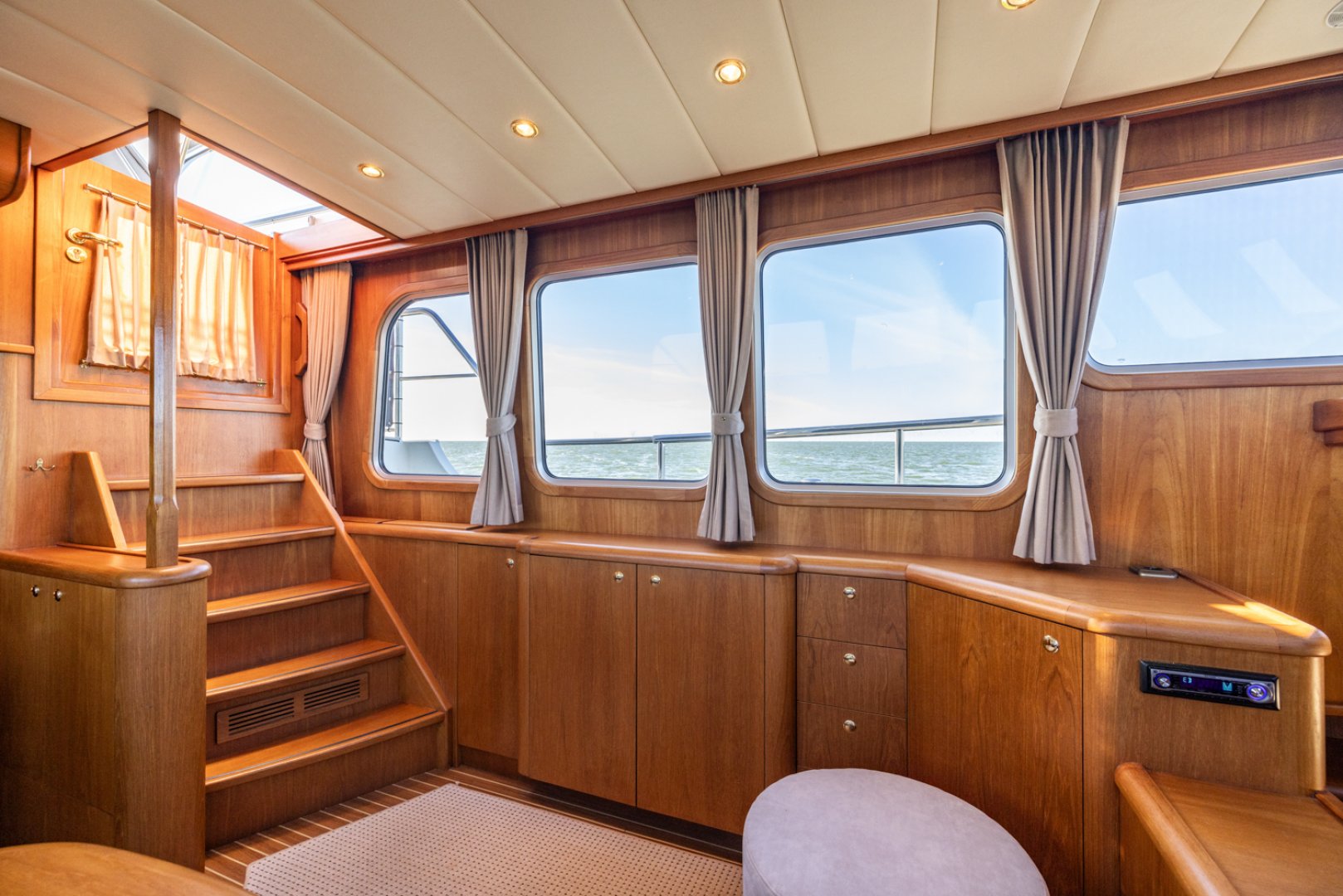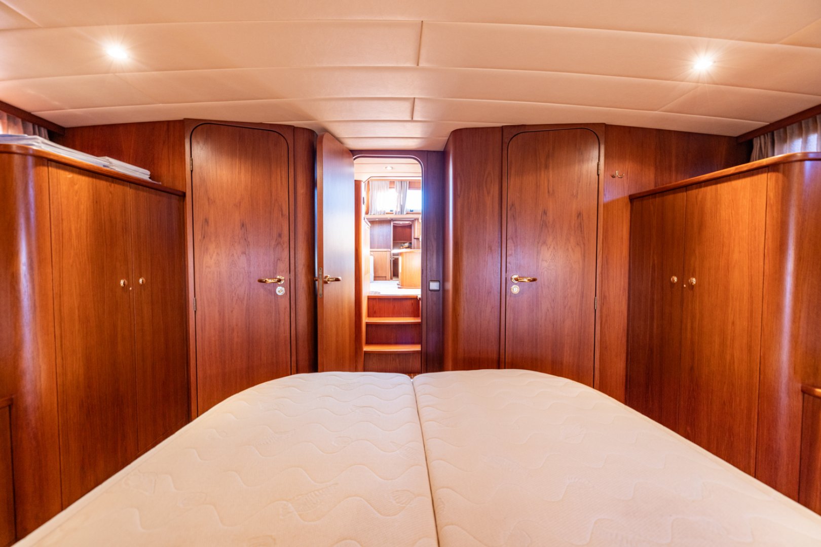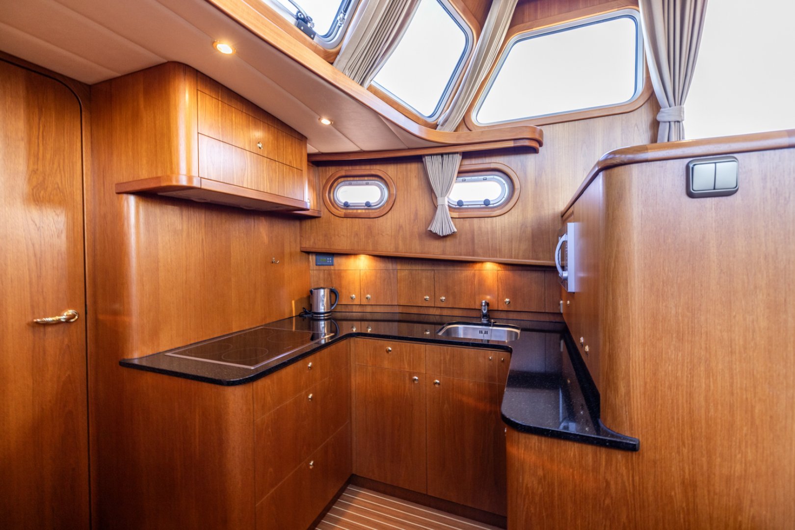 Het jacht is goed onderhouden en er zijn veel vernieuwingen aangebracht de laatste jaren. Aan de buitenzijde en het interieur ziet u veel fraaie details. Een teakhouten interieur met luxe lijstwerk en graniet bladen in keuken en natte cellen.