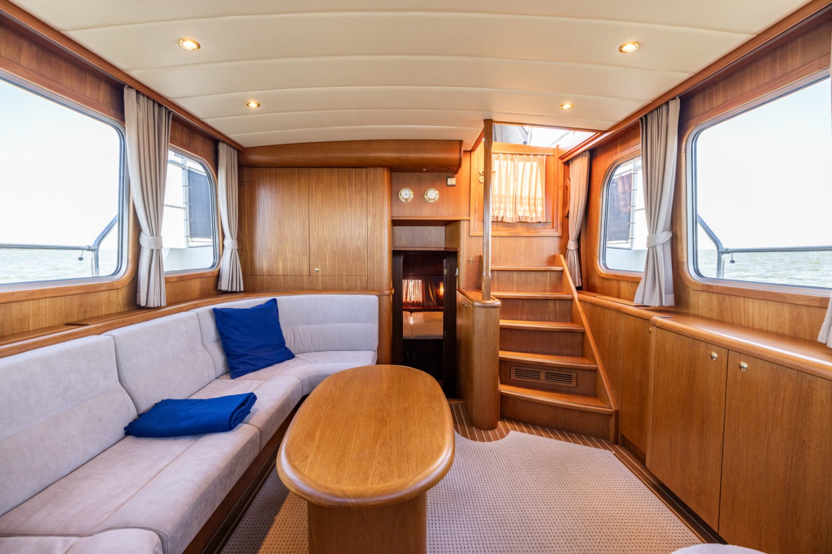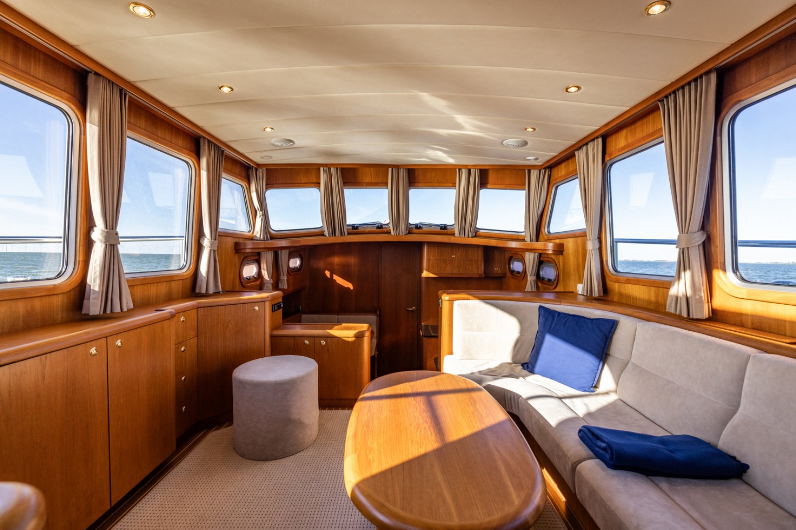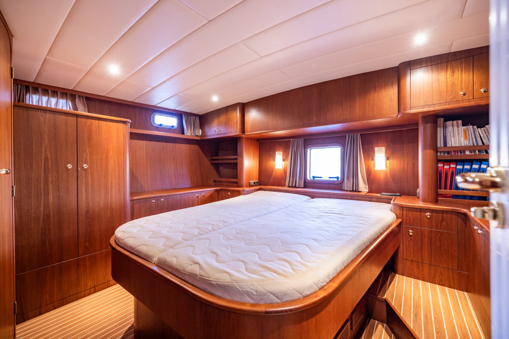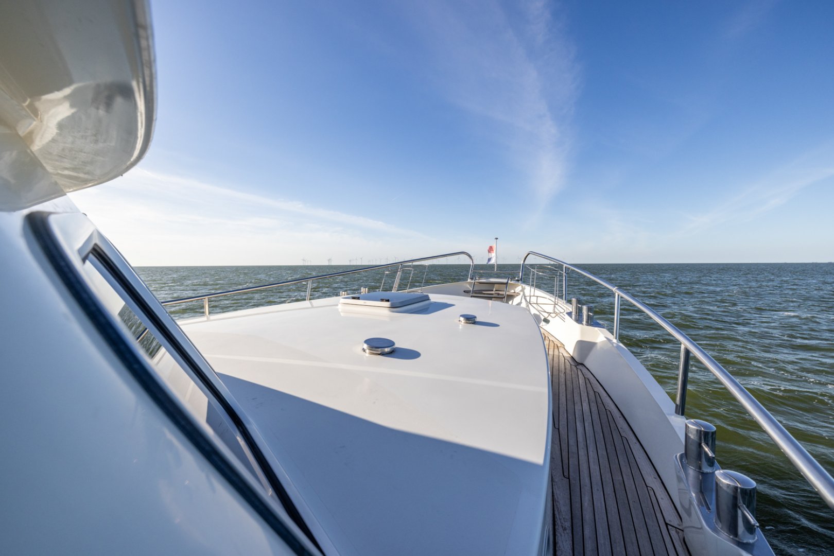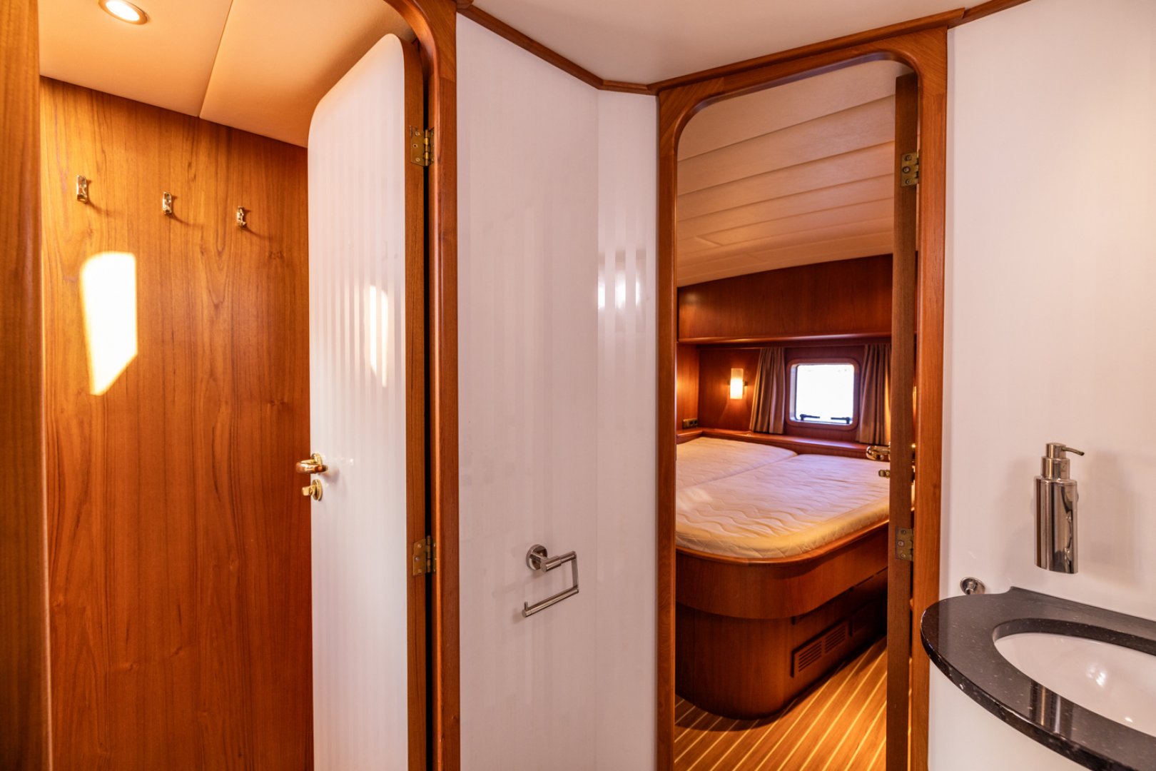 Het jacht is goed onderhouden en er zijn veel vernieuwingen aangebracht de laatste jaren. Aan de buitenzijde en het interieur ziet u veel fraaie details. Een teakhouten interieur met luxe lijstwerk en graniet bladen in keuken en natte cellen.