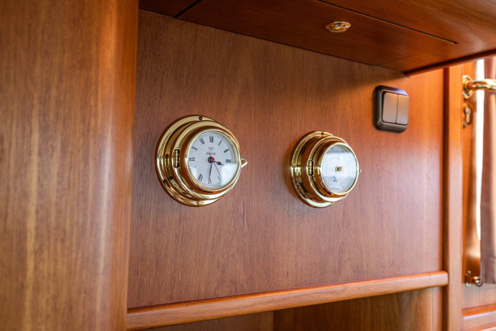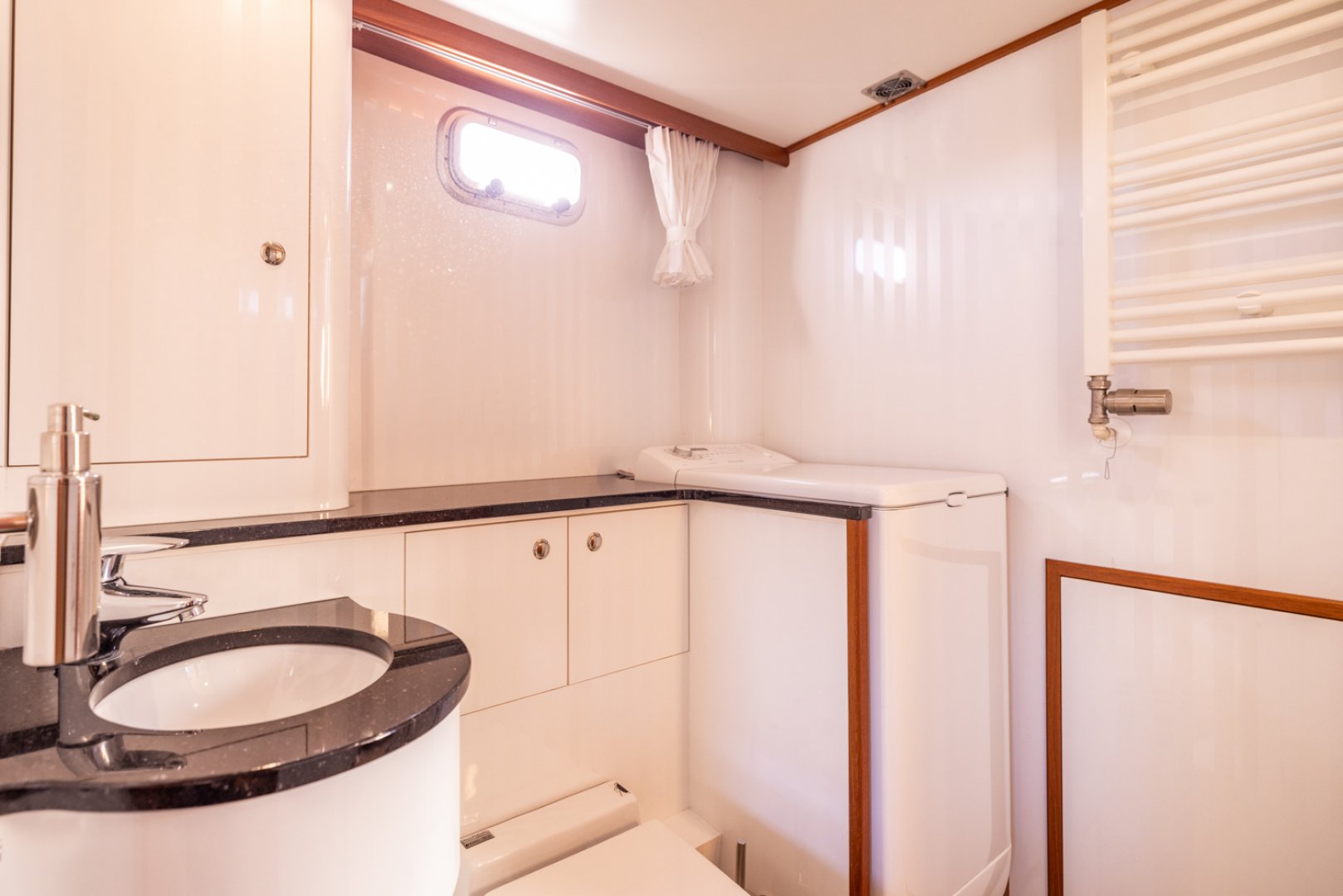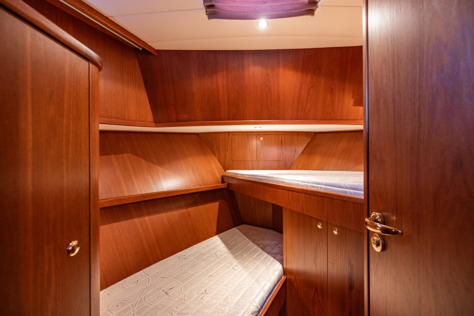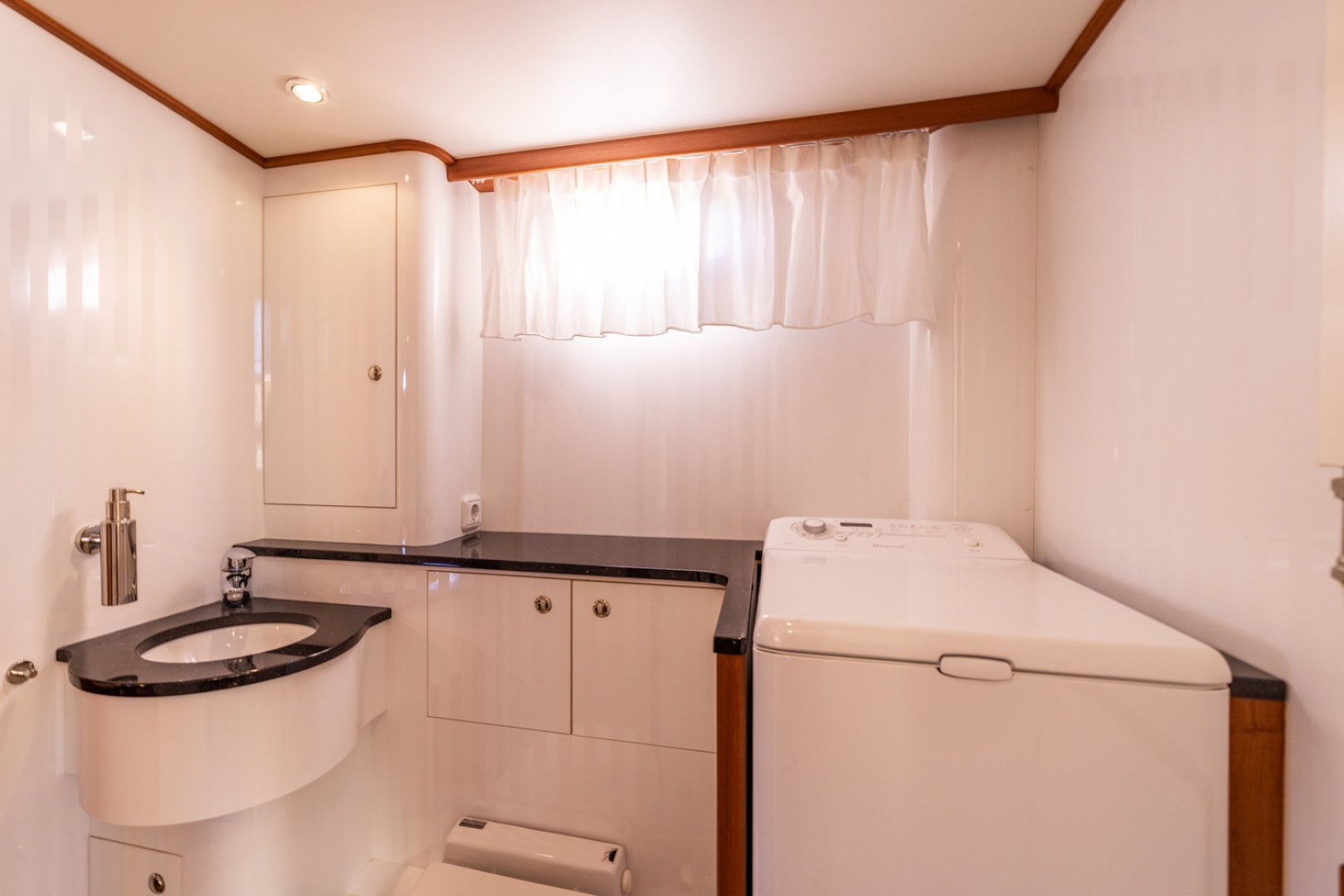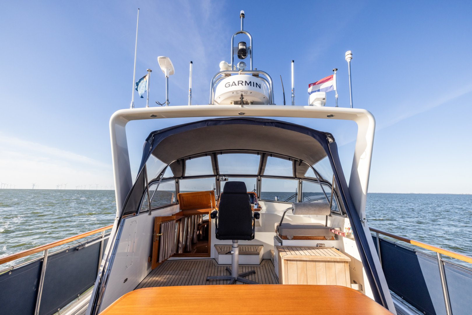 Het jacht is goed onderhouden en er zijn veel vernieuwingen aangebracht de laatste jaren. Aan de buitenzijde en het interieur ziet u veel fraaie details. Een teakhouten interieur met luxe lijstwerk en graniet bladen in keuken en natte cellen.