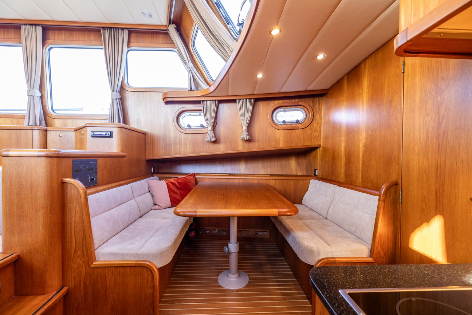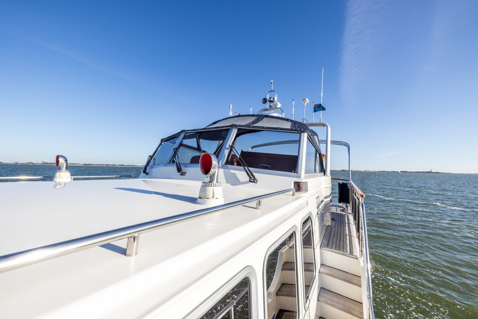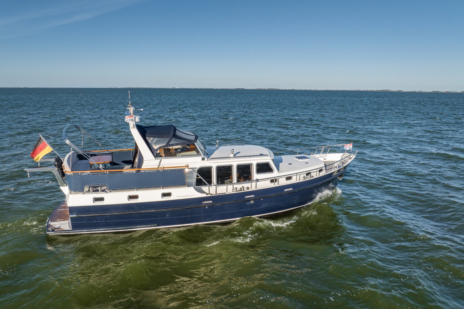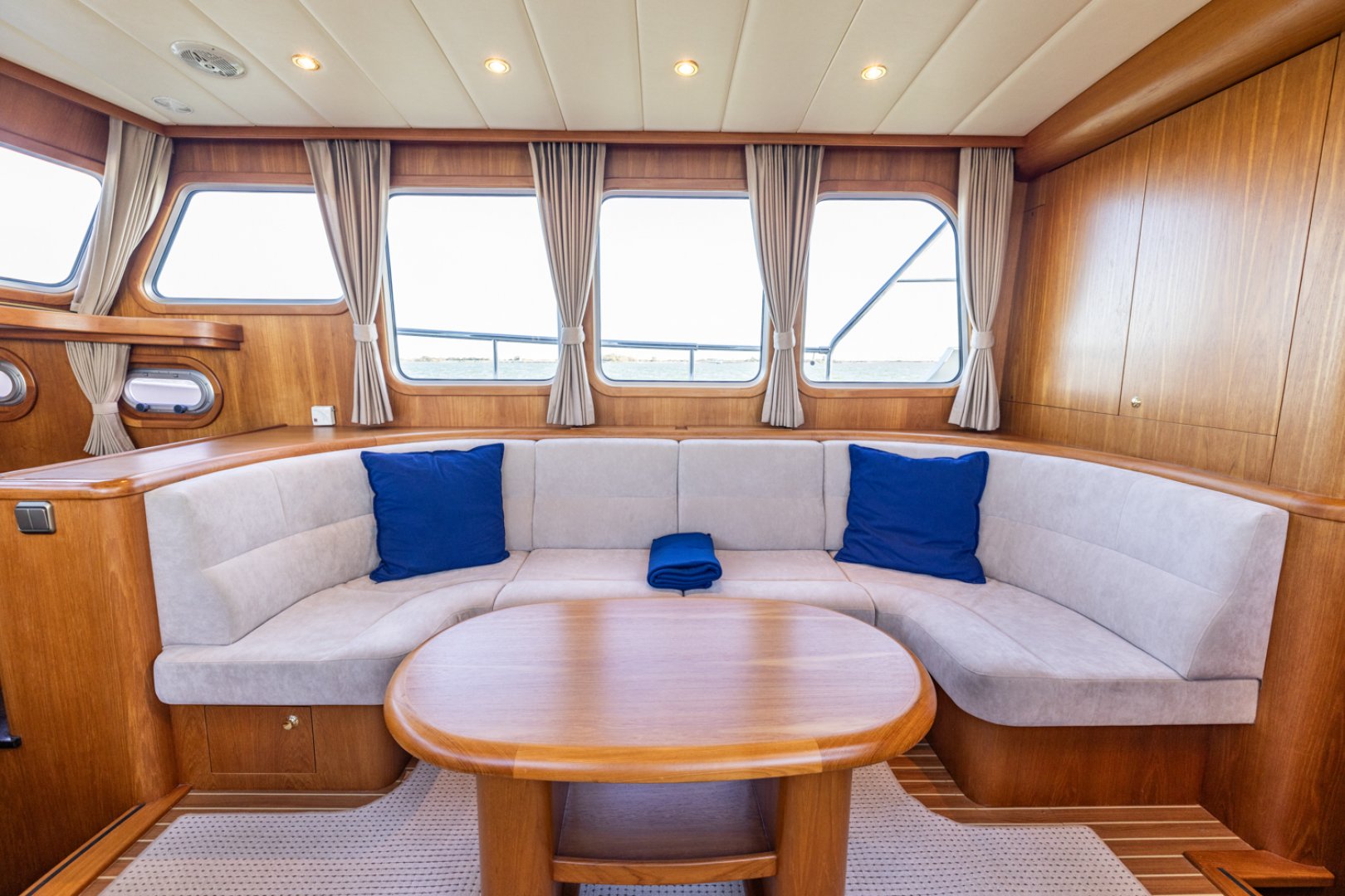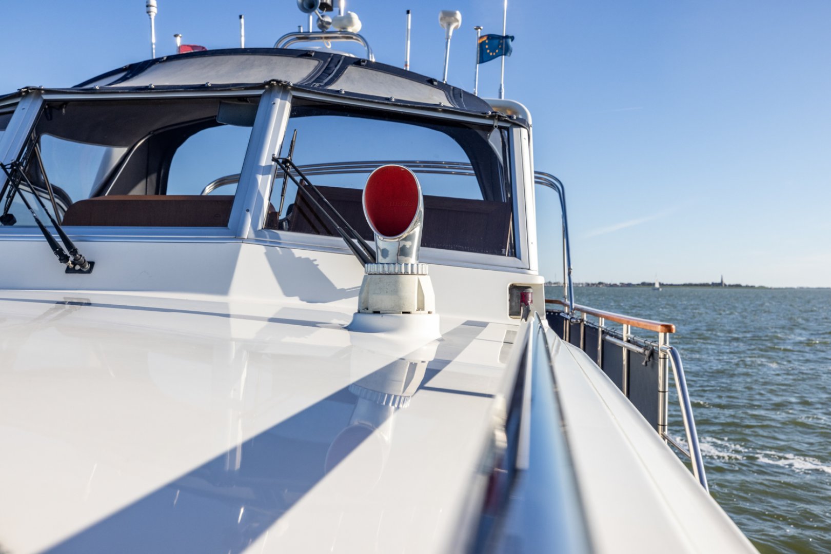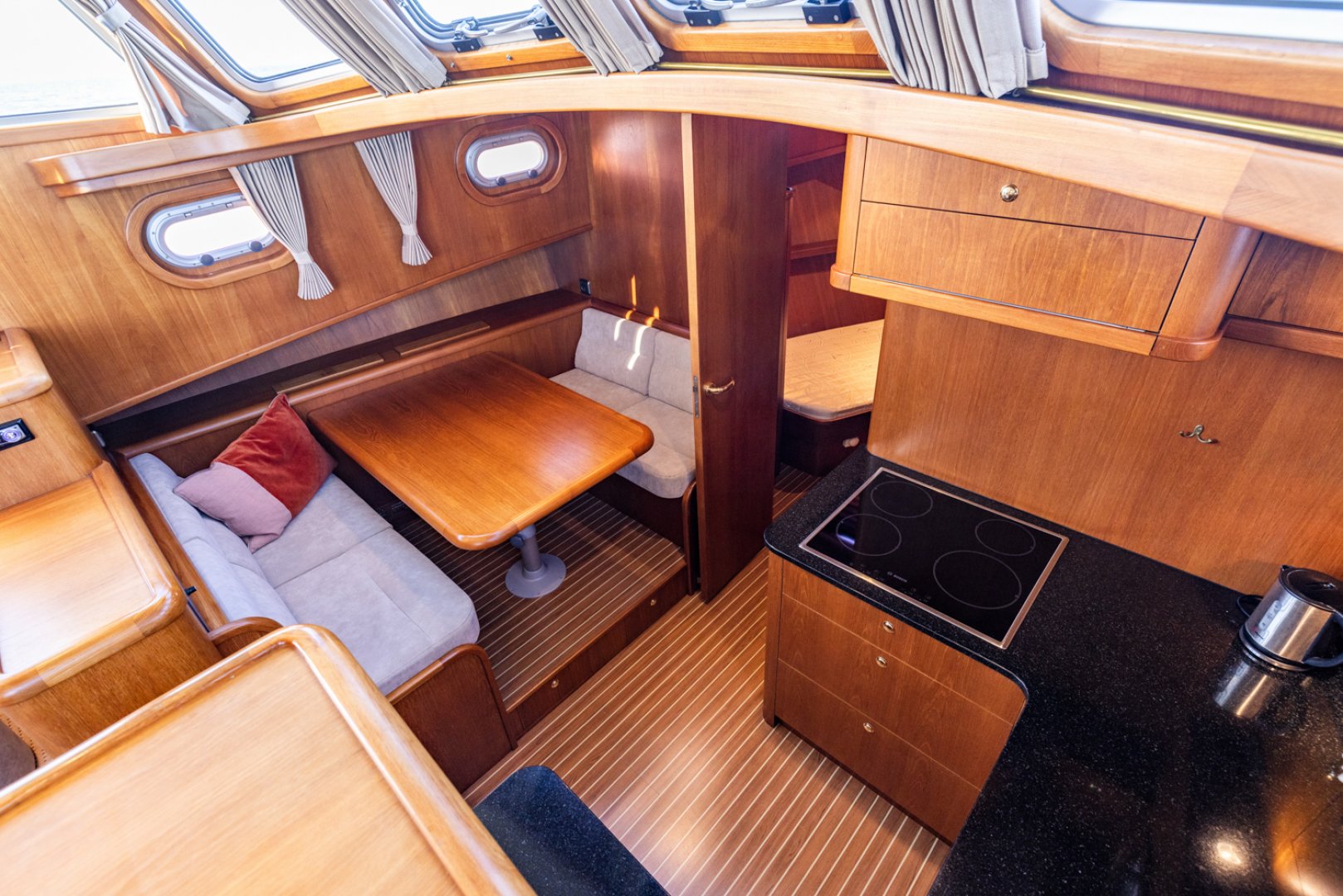 Het jacht is goed onderhouden en er zijn veel vernieuwingen aangebracht de laatste jaren. Aan de buitenzijde en het interieur ziet u veel fraaie details. Een teakhouten interieur met luxe lijstwerk en graniet bladen in keuken en natte cellen.