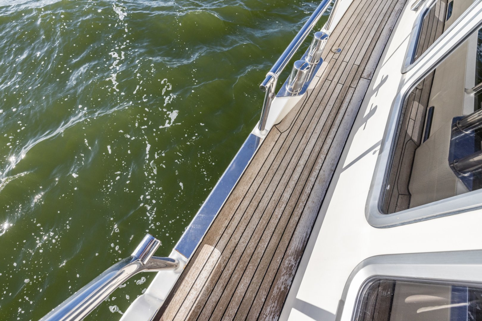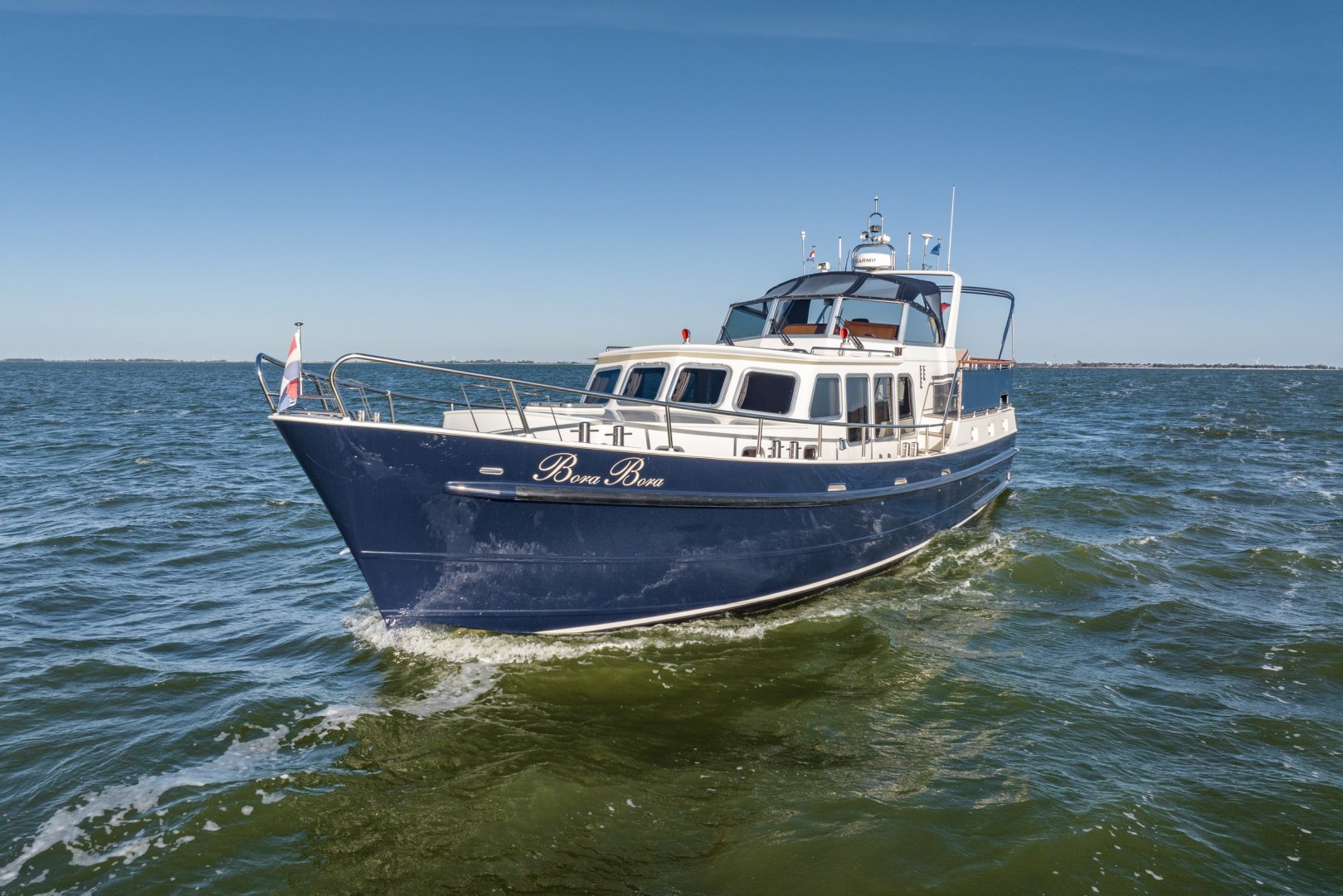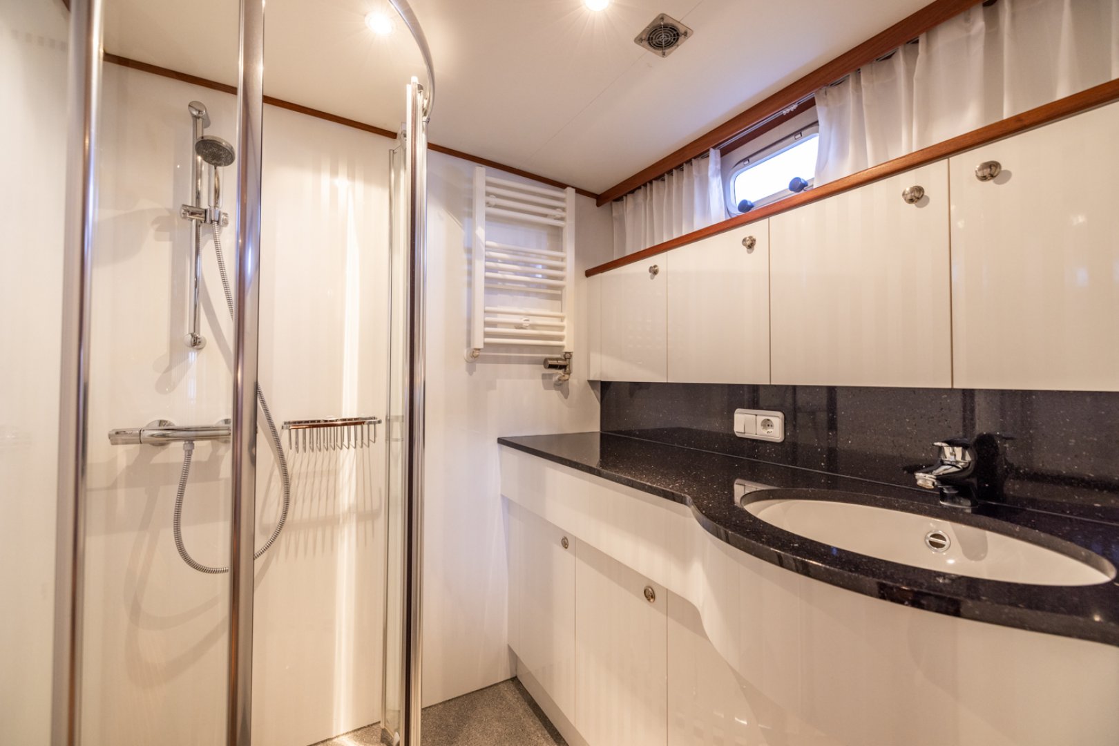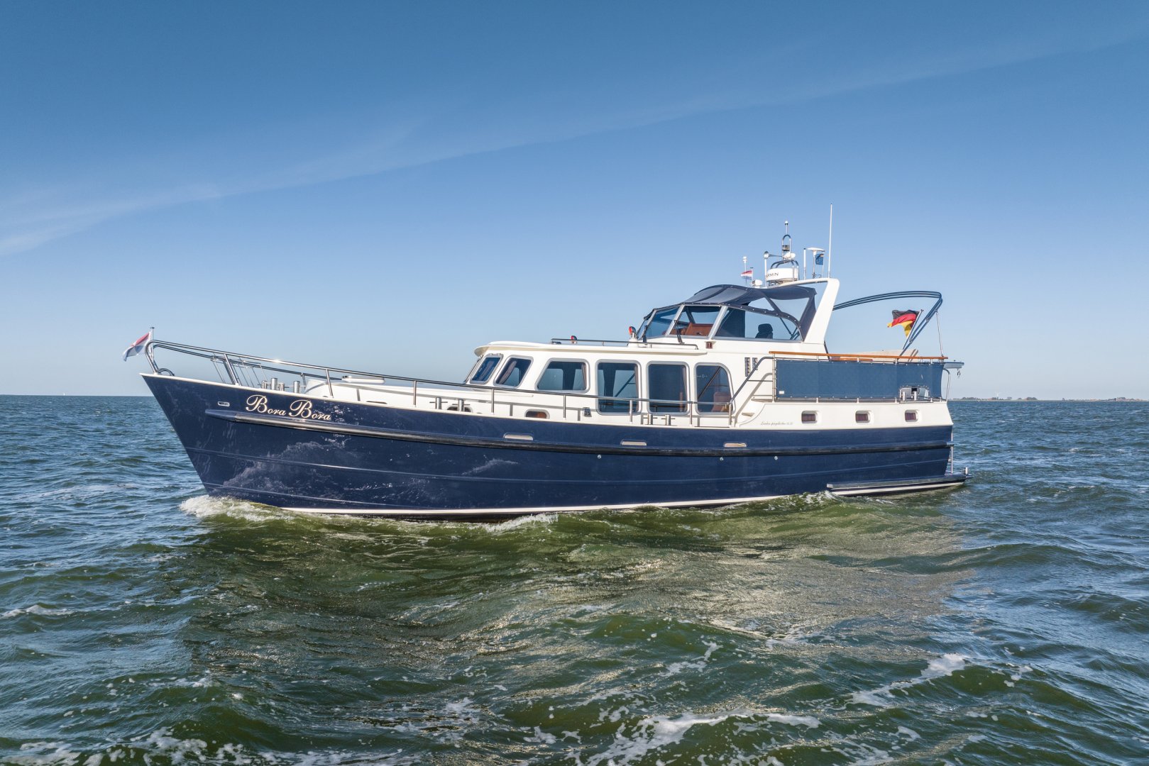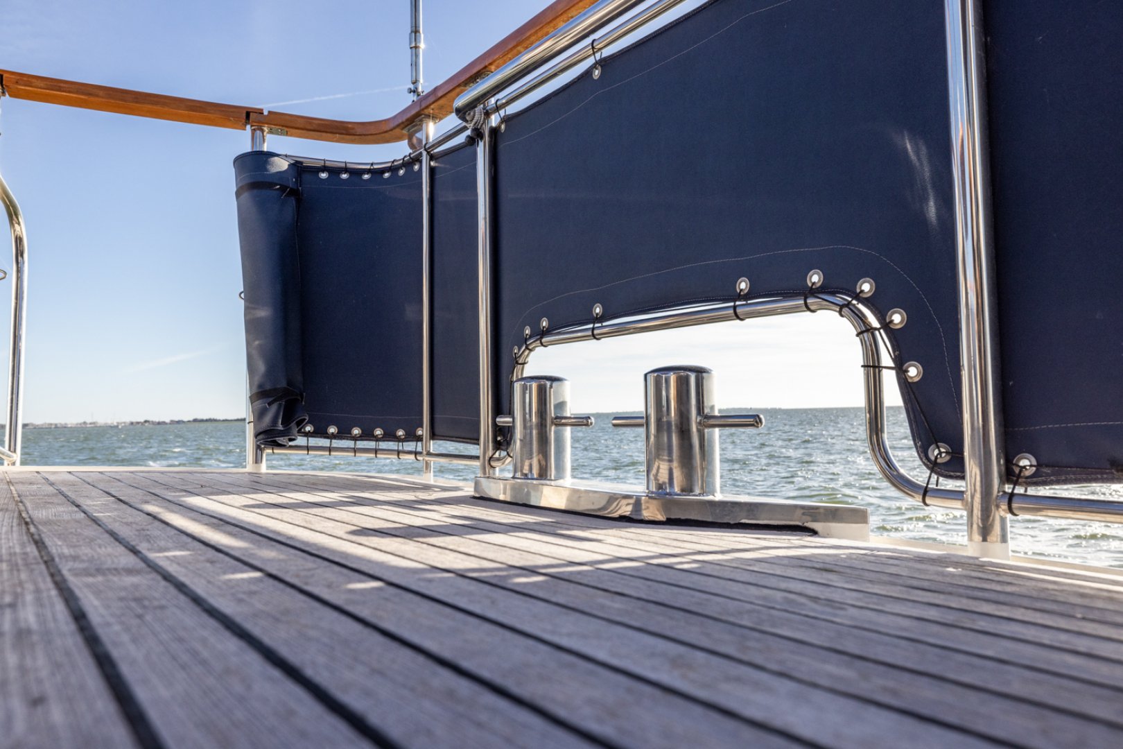 Het jacht is goed onderhouden en er zijn veel vernieuwingen aangebracht de laatste jaren. Aan de buitenzijde en het interieur ziet u veel fraaie details. Een teakhouten interieur met luxe lijstwerk en graniet bladen in keuken en natte cellen.