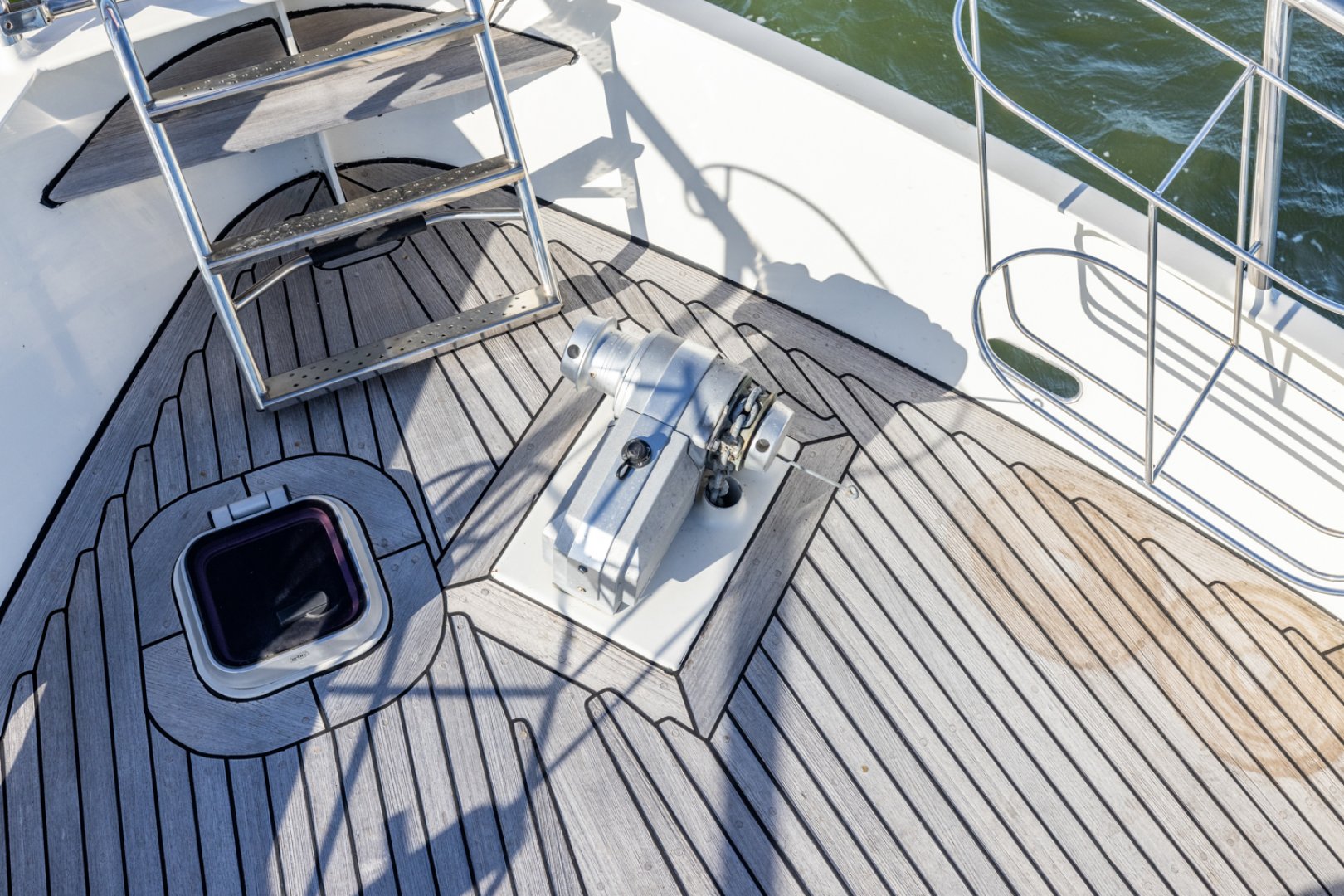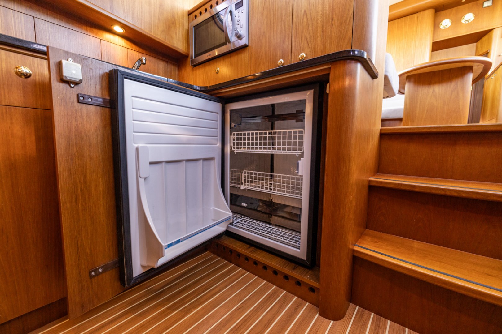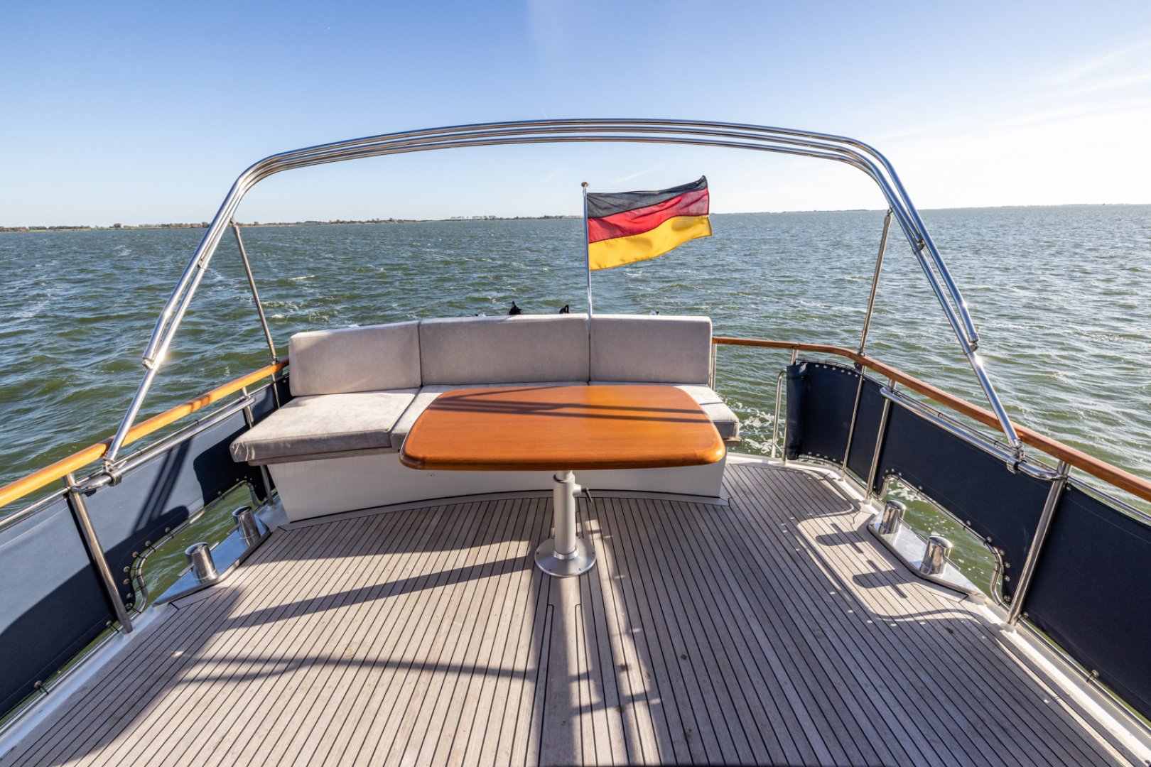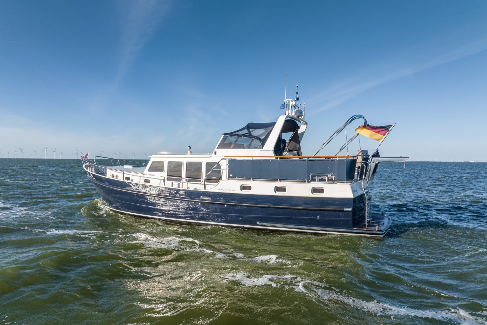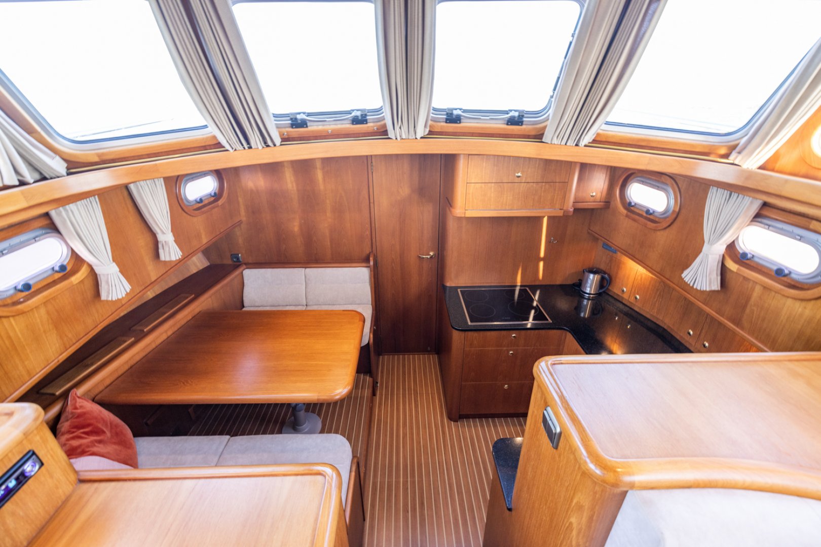 Het jacht is goed onderhouden en er zijn veel vernieuwingen aangebracht de laatste jaren. Aan de buitenzijde en het interieur ziet u veel fraaie details. Een teakhouten interieur met luxe lijstwerk en graniet bladen in keuken en natte cellen.