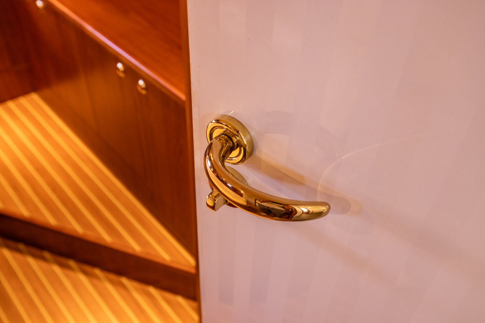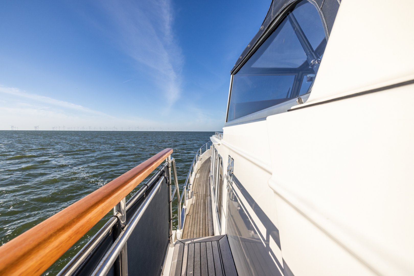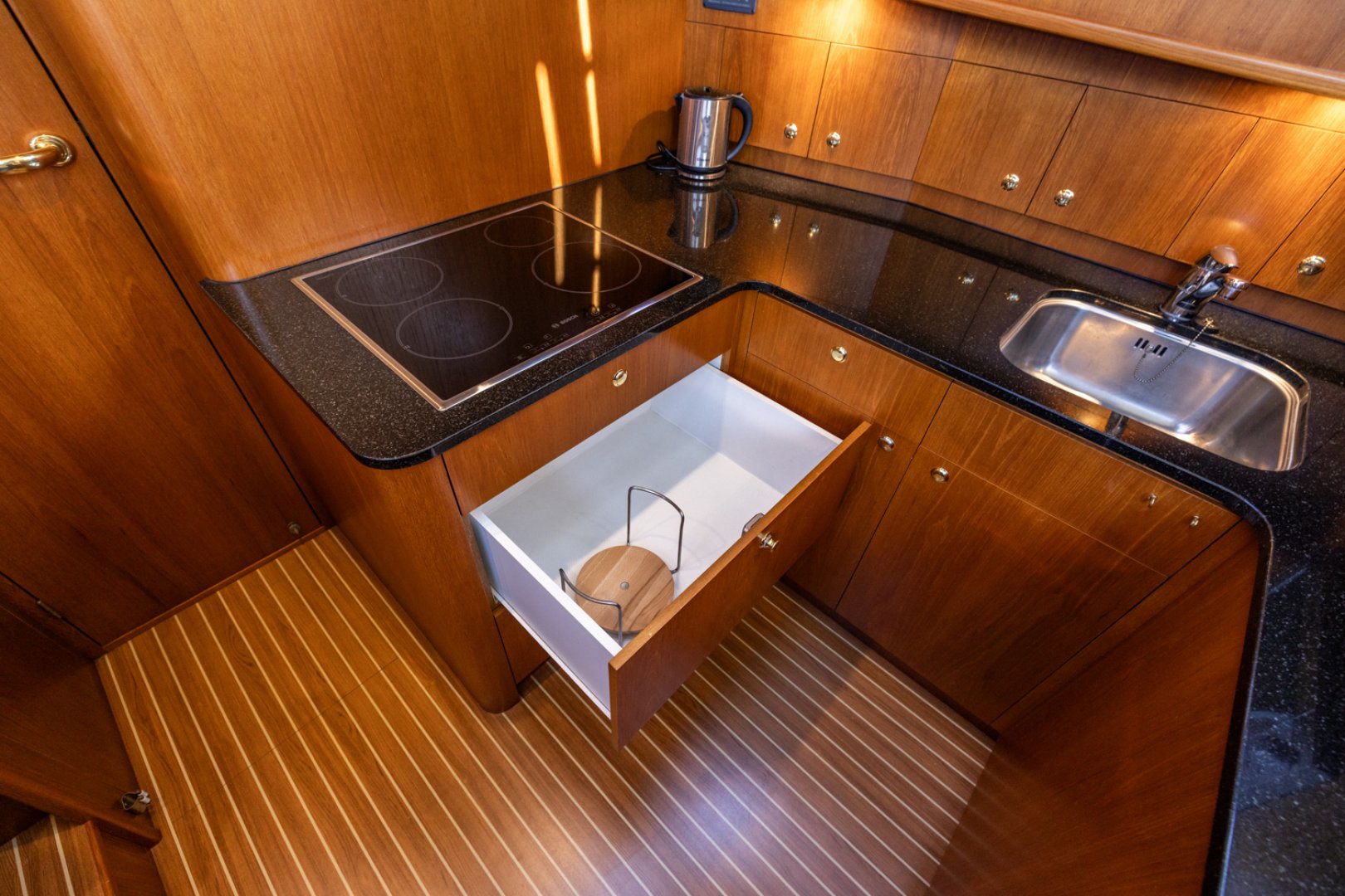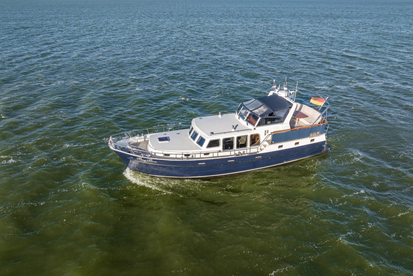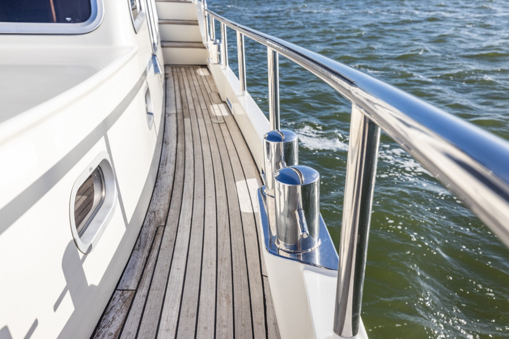 Het jacht is goed onderhouden en er zijn veel vernieuwingen aangebracht de laatste jaren. Aan de buitenzijde en het interieur ziet u veel fraaie details. Een teakhouten interieur met luxe lijstwerk en graniet bladen in keuken en natte cellen.