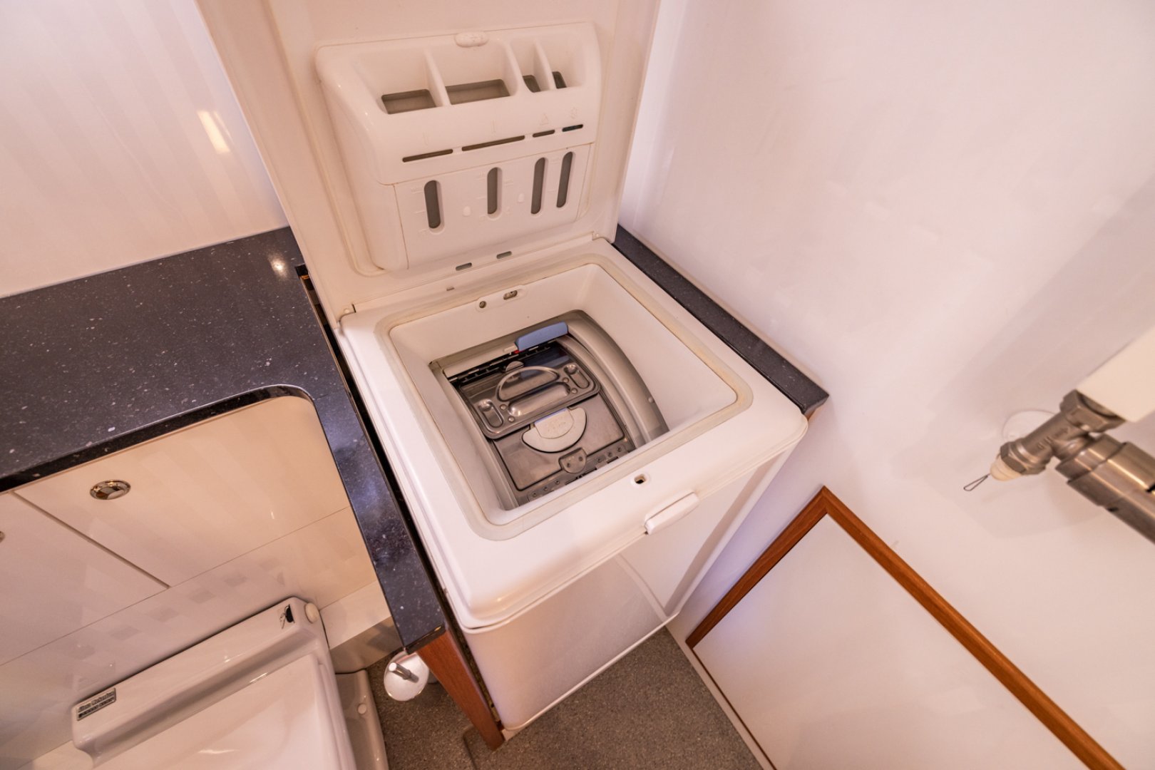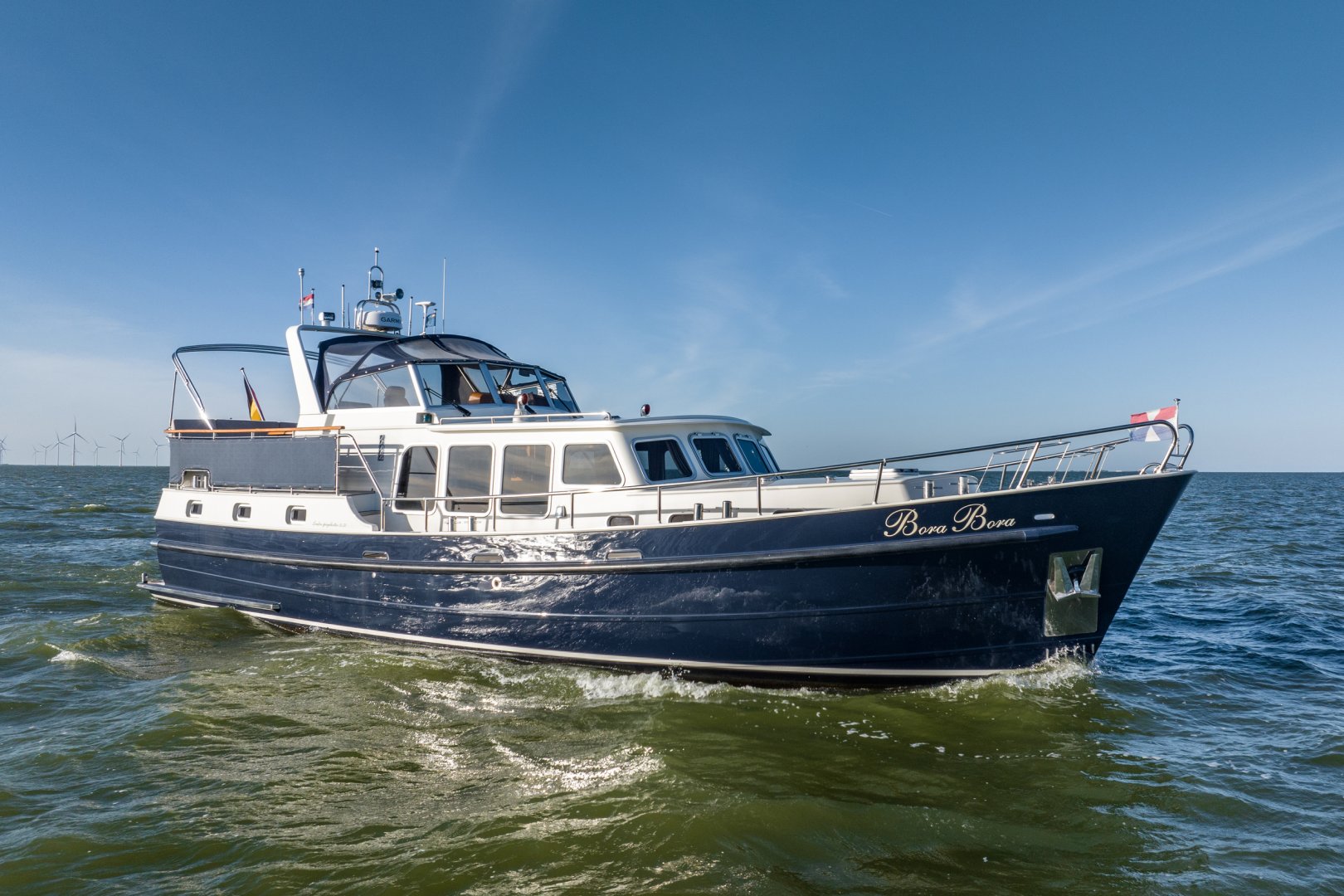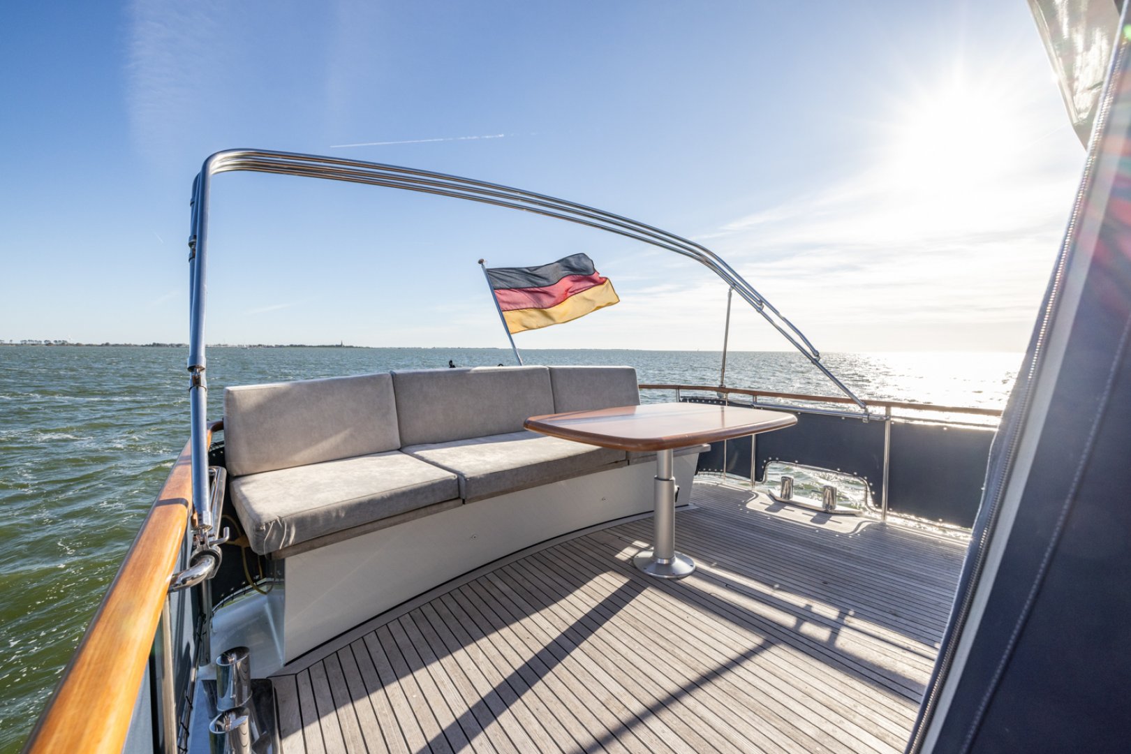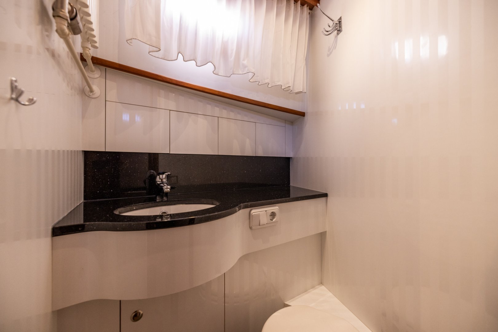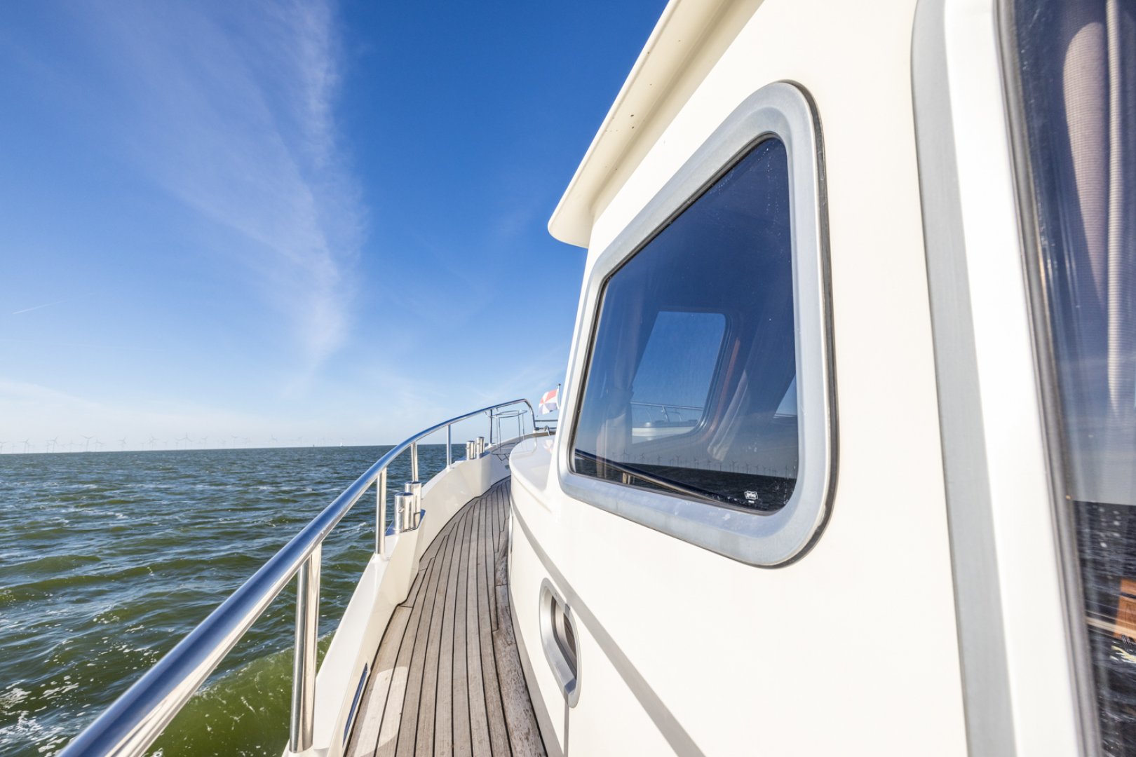 Het jacht is goed onderhouden en er zijn veel vernieuwingen aangebracht de laatste jaren. Aan de buitenzijde en het interieur ziet u veel fraaie details. Een teakhouten interieur met luxe lijstwerk en graniet bladen in keuken en natte cellen.