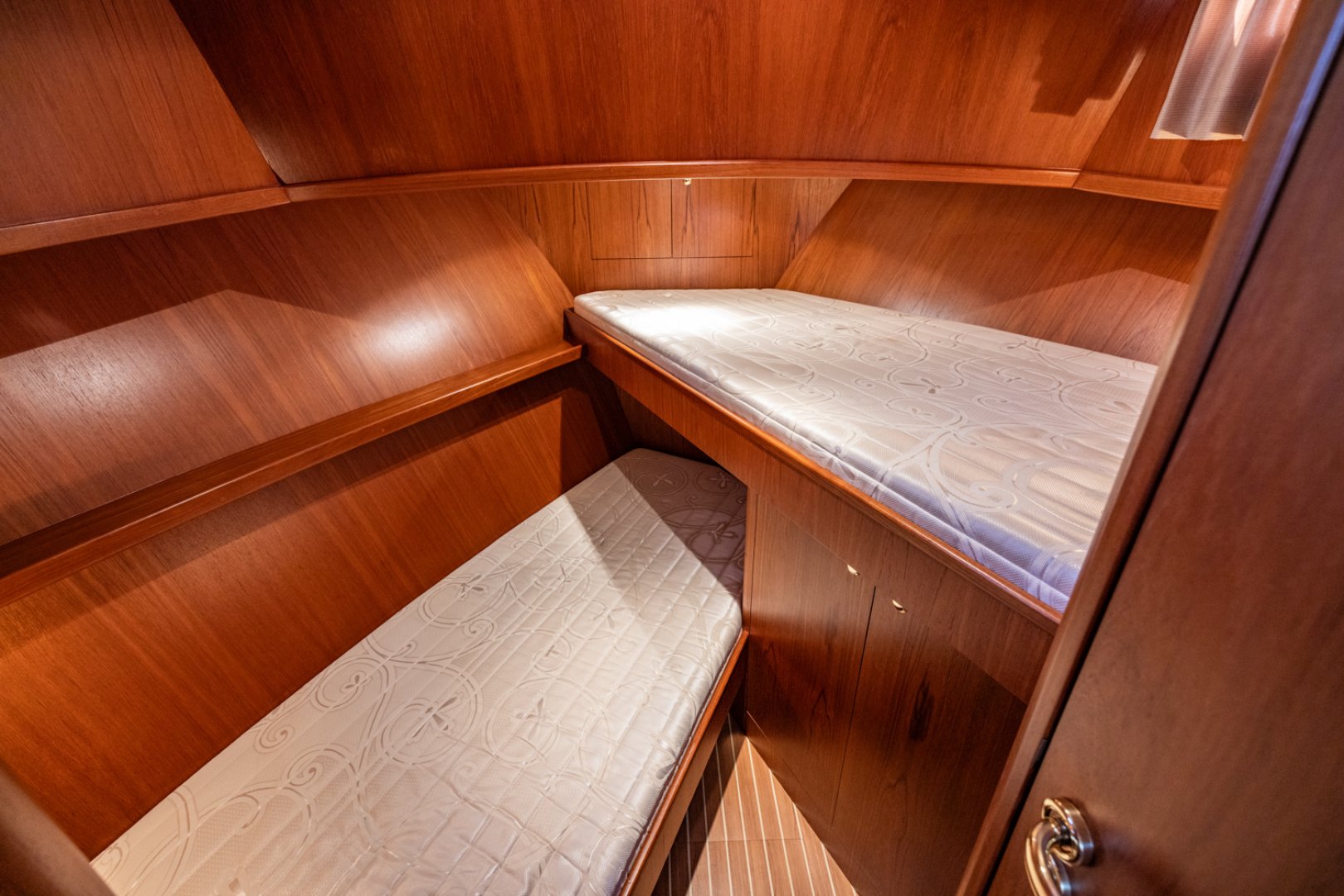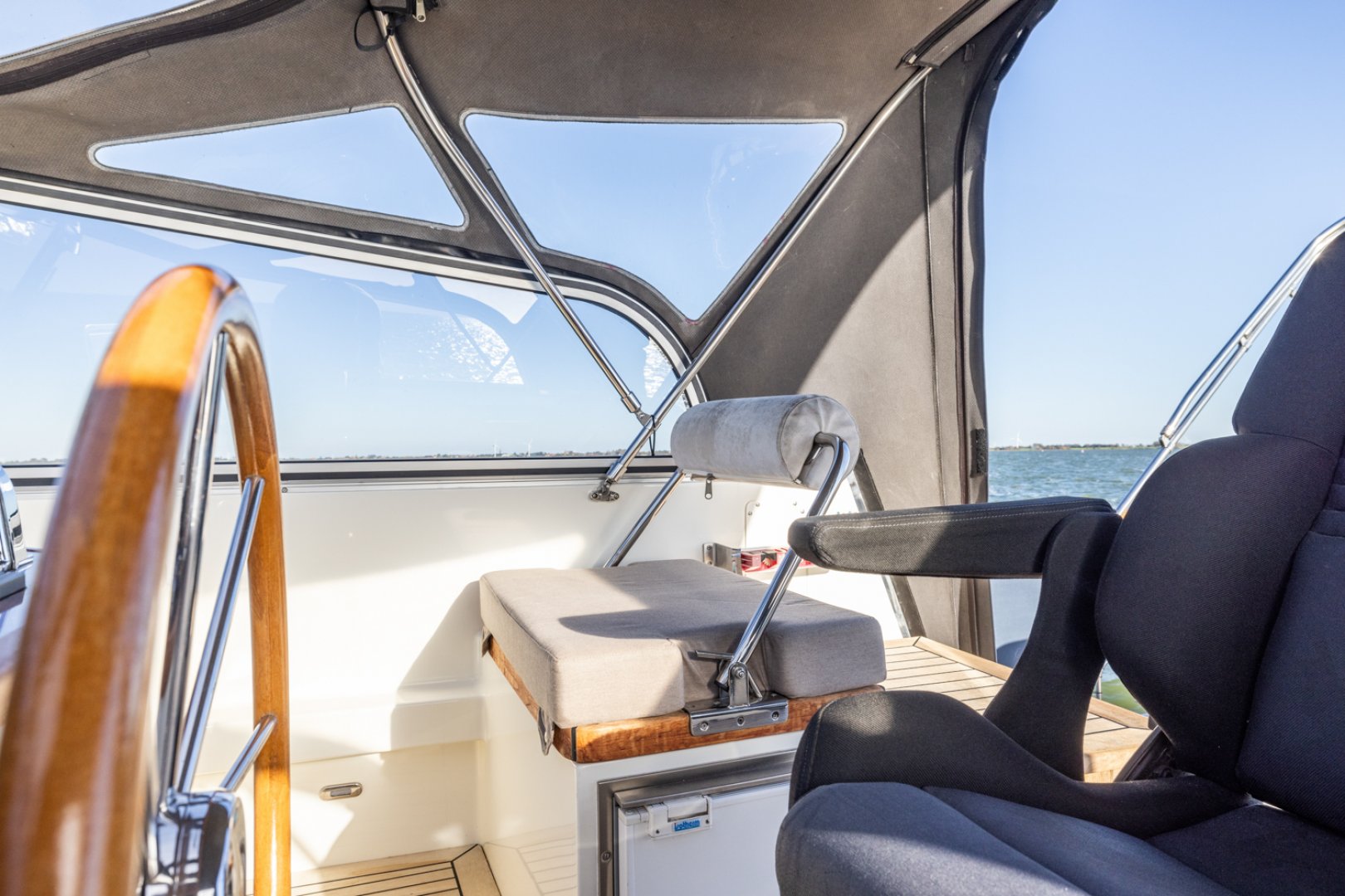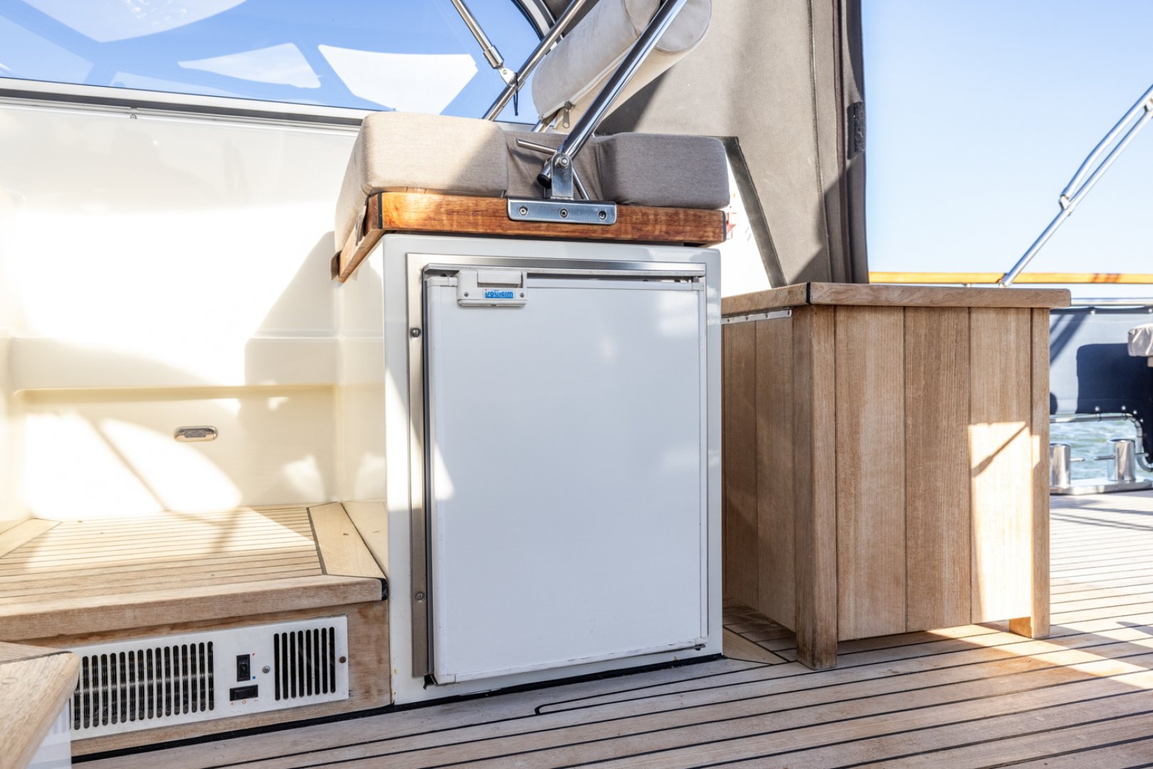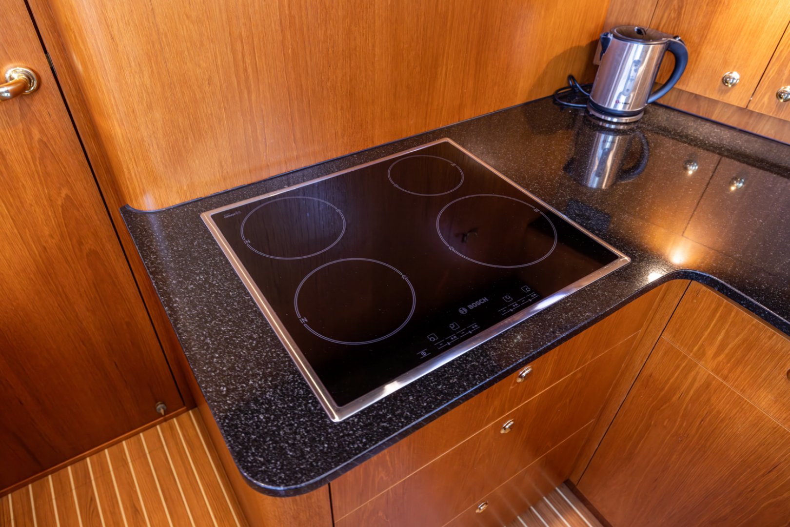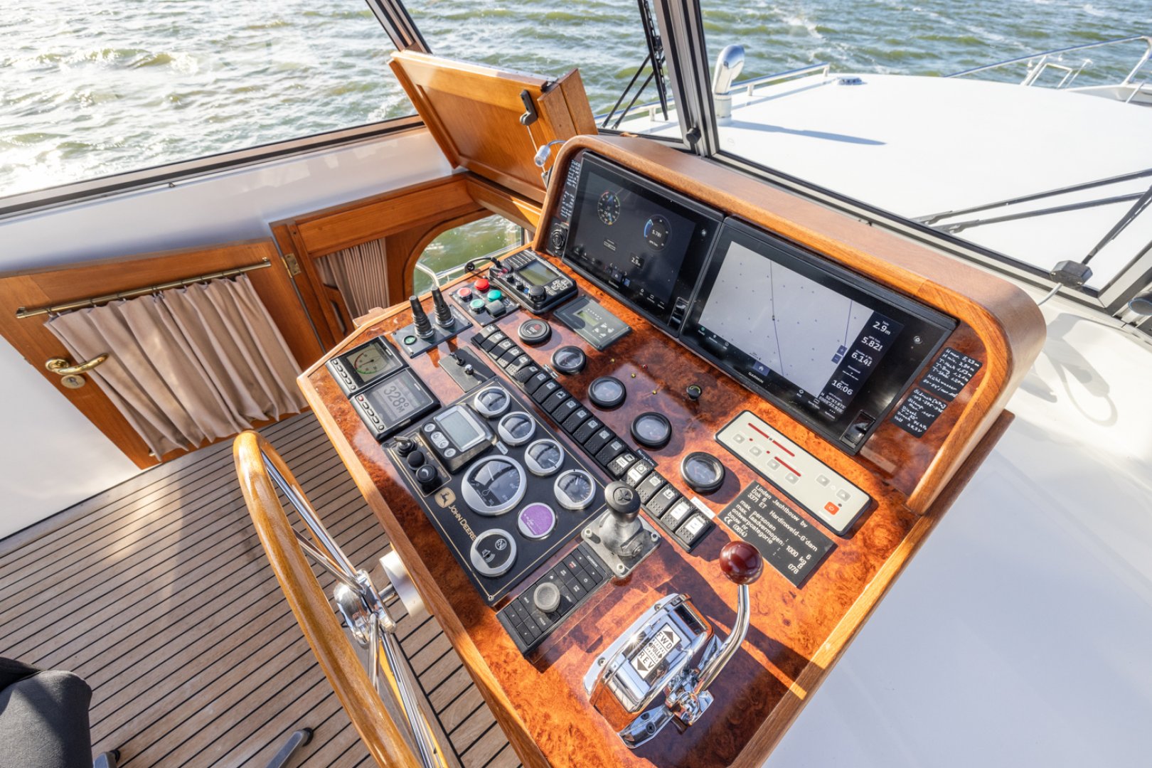 Het jacht is goed onderhouden en er zijn veel vernieuwingen aangebracht de laatste jaren. Aan de buitenzijde en het interieur ziet u veel fraaie details. Een teakhouten interieur met luxe lijstwerk en graniet bladen in keuken en natte cellen.